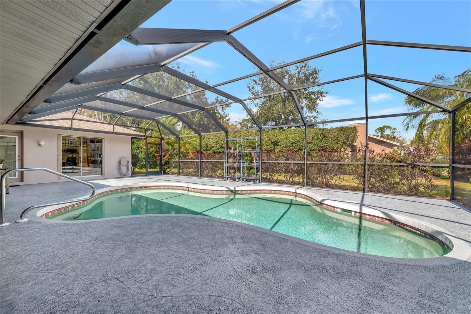 Don’t let the square footage fool you! This beautifully maintained home feels far more expansive the moment you step inside. Beautifully maintained and thoughtfully updated, this exceptional residence offers not only great bones — but true peace of mind — with nearly every major system already replaced. Perfectly positioned on a generous corner lot with only one neighboring home and a serene preserve bordering the other side, this property offers rare privacy and additional green space that enhances both architectural presence and curb appeal. Lush, mature tropical landscaping, a manicured lawn, and a welcoming double-door entry create an elegant first impression. Step inside and you’ll immediately notice how much larger the home feels than its square footage suggests. The bright, open split floor plan, soaring vaulted ceilings, and expansive pocket sliders create an airy, spacious ambiance that allows for indoor/outdoor living. The gracious living room flows effortlessly into a spacious formal dining area—ideal for entertaining. At the heart of the home, the open kitchen features granite countertops, abundant cabinetry, stainless-steel appliances, a brand-new dishwasher and microwave, recently replaced appliances throughout, and updated LED lighting. A charming breakfast nook overlooks the sparkling pool, creating a serene backdrop for everyday meals. Major mechanical updates include a NEW AC SYSTEM, NEW ROOF, NEW WATER HEATER, WHOLE HOUSE SURGE PROTECTION, wired carbon monoxide detectors, updated fixtures throughout, and enhanced LED lighting in the kitchen, laundry room, and garage — providing modern efficiency and confidence for years to come. Step outside to your private outdoor retreat where indoor and outdoor living truly unite. The expansive lanai surrounds a heated pool enhanced with a NEW POOL HEATER, NEW POOL PUMP, NEW POOL SKIMMER, NEW POOL DECKING, NEWER POOL CAGE (2019). Lanai lighting is professionally grounded for lightning protection, adding another thoughtful layer of security. Lush tropical landscaping surrounds the space for total privacy and year-round enjoyment. Safety and storm readiness are exceptional with NEW HURRICANE IMPACT WINDOWS, SLIDING IMPACT SHUTTERS for the pocket sliders, and a hurricane shield for the front entry. The oversized primary suite is a true sanctuary, offering private lanai access, dual walk-in closets, and a spa-inspired bath featuring dual vanities, a spacious walk-in shower, and an updated extra-deep garden tub. Two generously sized guest bedrooms are privately situated on the opposite side of the home—one offering direct pool access—alongside a well-appointed guest bath ideal for family or visitors. Additional highlights include an oversized three-car garage and a well-equipped laundry room with cabinetry, utility sink, drying rack, and ample storage. This home is located within Misty Oaks, an intimate enclave of just 63 homes, this residence offers low HOA fees and no CDD—delivering exceptional value within a peaceful, tucked-away setting. Enjoy privacy without sacrificing convenience, just minutes from Sarasota’s premier shopping, dining, golf, nature trails, and the pristine Gulf Coast beaches.