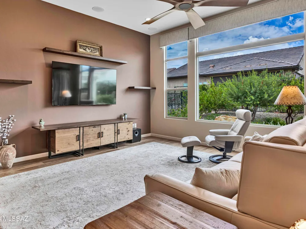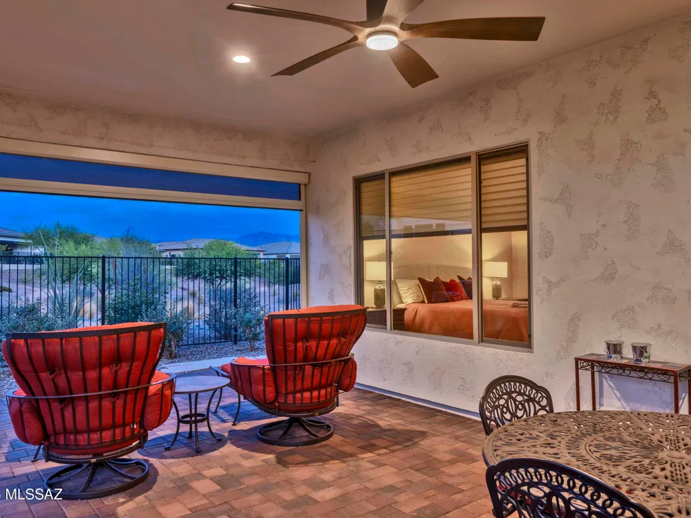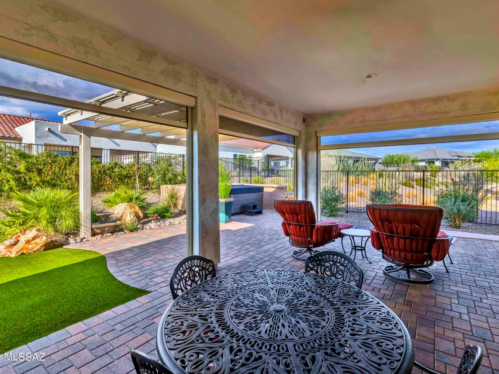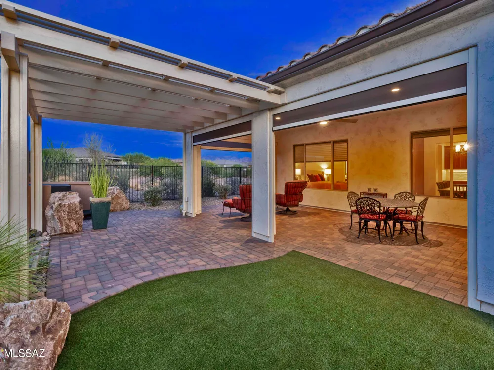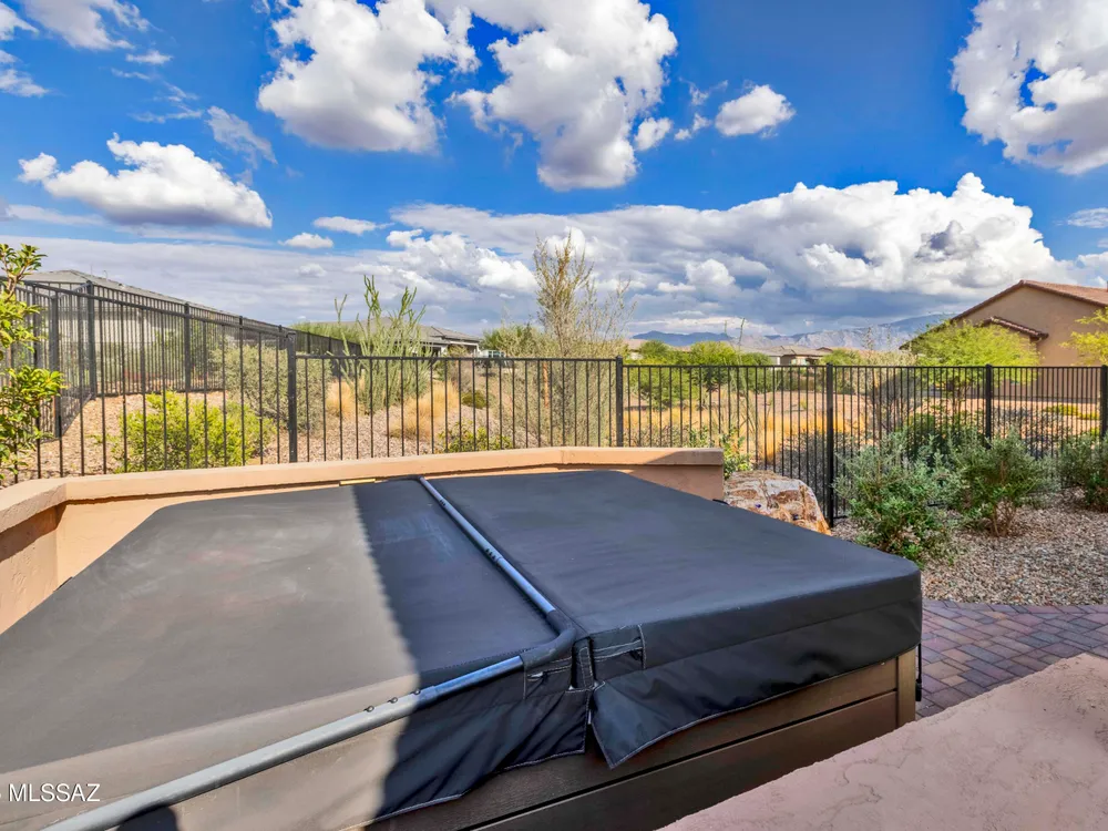 Highly upgraded 2022 Fresco model with 2,097 sq ft and over $160K in premium upgrades! Chef's kitchen with quartz countertops, upgraded soft-close cabinets & drawers, walk-in pantry, bar area w/ upper cabinets, and solid-core doors throughout. Custom den and Master Bathroom door, surround sound,Hunter Douglas electric blinds, a reverse osmosis system, beautiful appliances, and more! The garage features a Tesla Solar Powerwall, epoxy floor, upper storage shelves, a garage entry door, and an electric box inside the garage. The yard is beautifully landscaped with a pergola, hot tub, full snake fencing, and Tucson Electric Shades. This home has all the top-tier features buyers want. Why build when this home has it all! And it is move-in ready. Schedule your showing today!