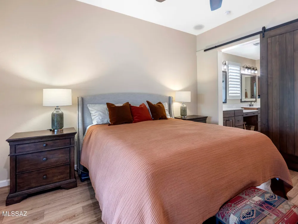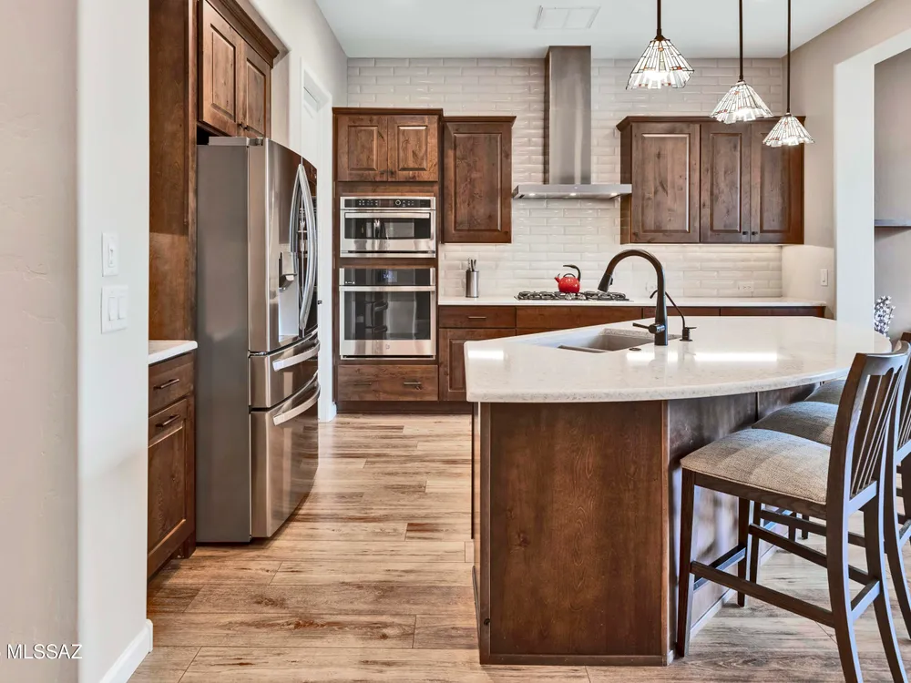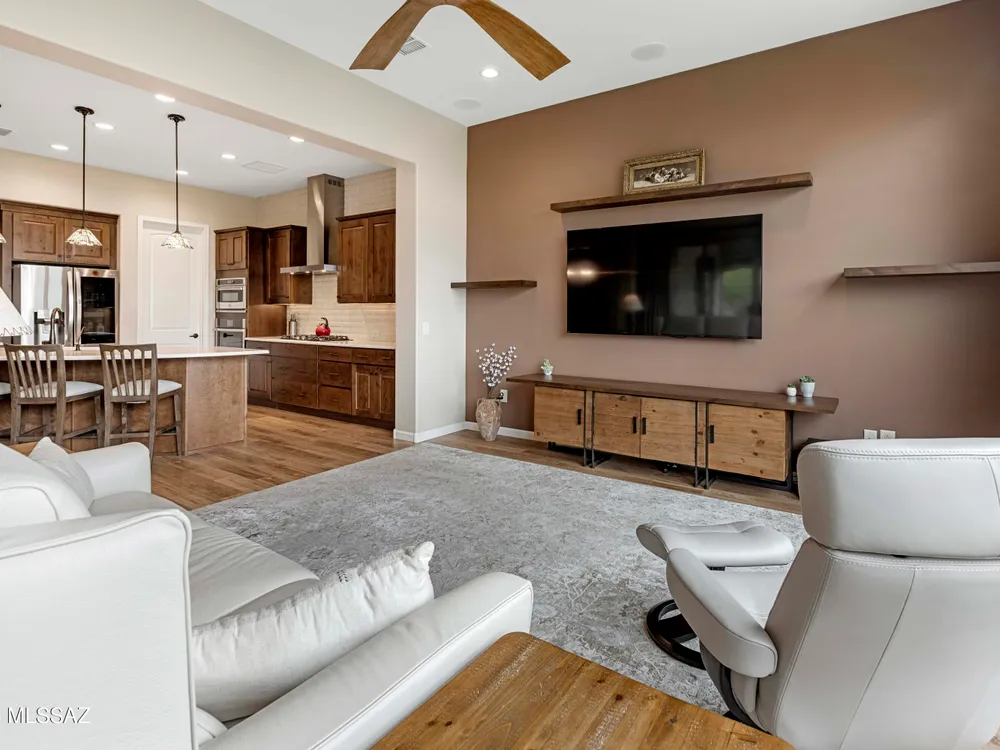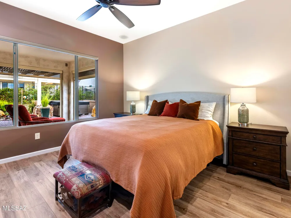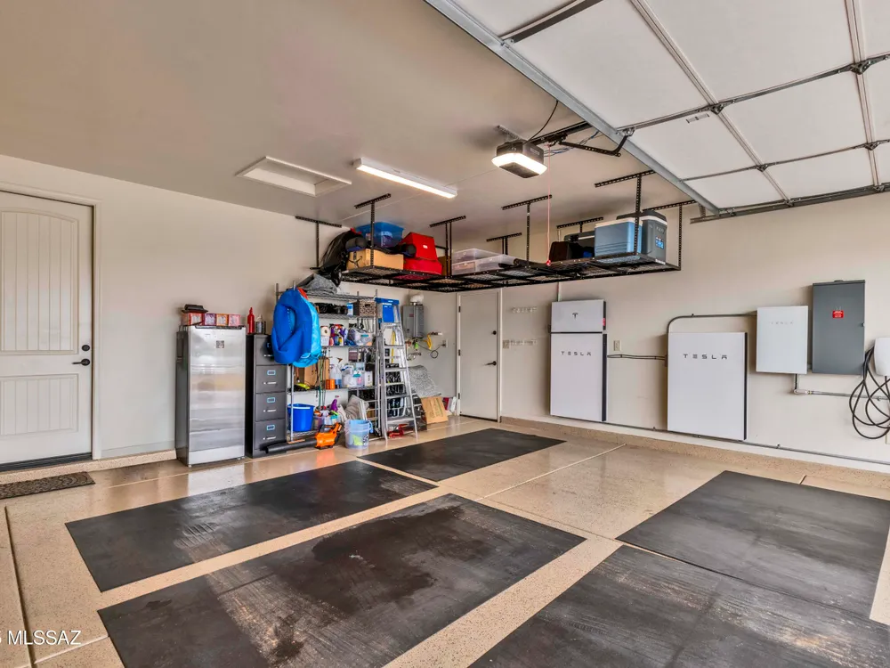 Highly upgraded 2022 Fresco model with 2,097 sq ft and over $160K in premium upgrades! Chef's kitchen with quartz countertops, upgraded soft-close cabinets & drawers, walk-in pantry, bar area w/ upper cabinets, and solid-core doors throughout. Custom den and Master Bathroom door, surround sound,Hunter Douglas electric blinds, a reverse osmosis system, beautiful appliances, and more! The garage features a Tesla Solar Powerwall, epoxy floor, upper storage shelves, a garage entry door, and an electric box inside the garage. The yard is beautifully landscaped with a pergola, hot tub, full snake fencing, and Tucson Electric Shades. This home has all the top-tier features buyers want. Why build when this home has it all! And it is move-in ready. Schedule your showing today!