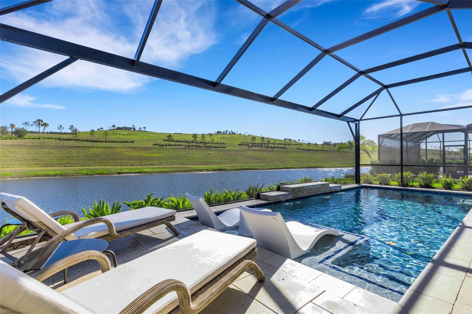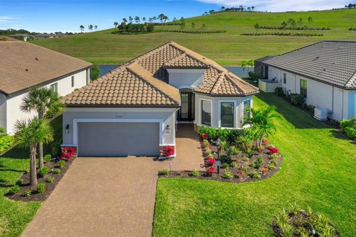 WHAT A GRAND VIEW IT IS!!! Welcome to 6186 Grandview Hill Ct. Stop scrolling...this is the ONE! Life is too short so it's time you "go for it" and indulge in that upscale, resort style, maintenance free living that you have always dreamed of and deserve. This show stopper offers you just that. Perfectly situated on one of the best lots in Esplanade with breathtaking views of Mt. Tumalo and coupled with peaceful, private, sparkling lake views. This quality built, highly sought after Lazio floor plan by Taylor Morrison Homes has 3Br, 3Ba, a Den and a 3 car tandem garage. The outdoor living space is truly spectacular featuring an oversized lanai with fully equipped outdoor kitchen and a gorgeous heated saltwater pool--ideal for entertaining or relaxing while soaking up those Florida rays. The original owners spared no expense with all the dreamy finishes and upgrades. It is absolutely pristine and will not dissapoint the most discriminating buyer. This fabulously light, bright and open floorplan showcases ceramic tile throughout the entire home. Beautiful crown molding, tray ceilings, wainscoting and decorative mirrors and wood trim wall accents add class and character. The owners replaced all the builder grade quartz counters in the kitchen and all baths with absolutely stunning, all natural quartzite. The heart of this home is the glorious kitchen with its oversized extended quartzite center island, 42" wood cabintes with crown molding, stainless steel appliances, gourmet natural gas range with hood, double oven, decorator glass backsplash and wine fridge. The spacious Primary suite enjoys fabulous views from your bay window, a heavenly sized walk-in closet, double vanities with lighted mirrors and additional cabinetry. Other upgraded features that grace the home include: plantation shutters, custom wood shelving in all the closets, additional cabinets in laundry room, designer light fixtures and ceiling fans, remote control shades on the lanai, gutters, spray foam insulation and upgraded landscaping. Esplanade offers top of the line amenities and vibrant social activities which include an on-site Lifestyle Manager, an elegant clubhouse, resort-style heated pool with cabanas, fitness center, tennis, pickelball, fire pits, bocce ball, a Bark Park, full service spa and concierge service! Residents enjoy picturesque views and access to Mt. Tumalo with its walking trails and workout stations. This gated, maintenance-free community is ideally located just minutes from UTC Mall, dining, Sarasota-Bradenton International Airport, I-75, Benderson Park, Lakewood Ranch, Waterside Place, downtown Sarasota, and St. Armands Circle and more— and only a short drive to the world-famous white sand beaches of Florida’s Gulf Coast. You simply can’t beat this location — or this relaxed luxury lifestyle.