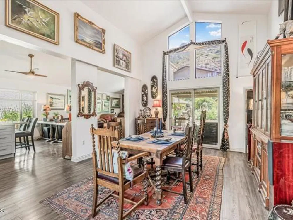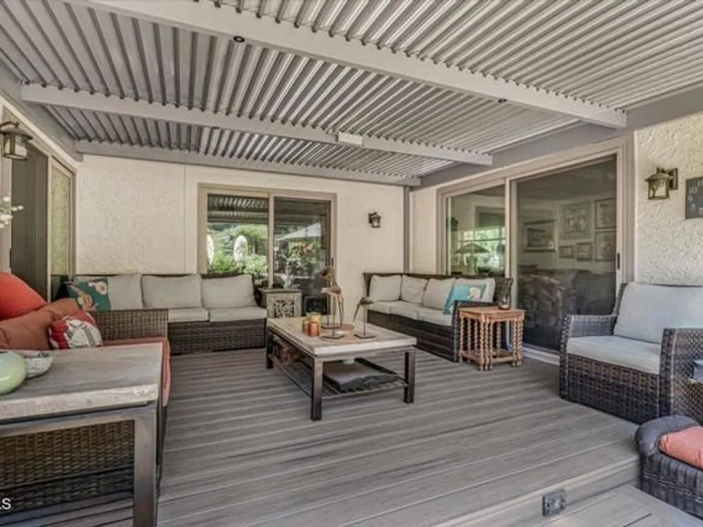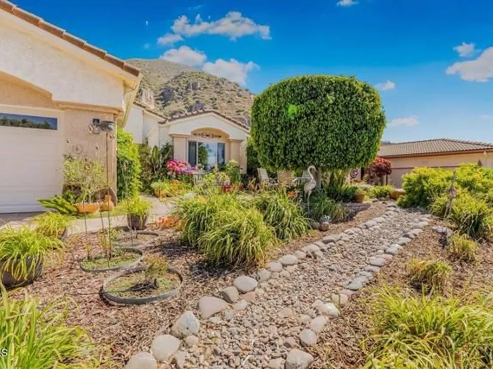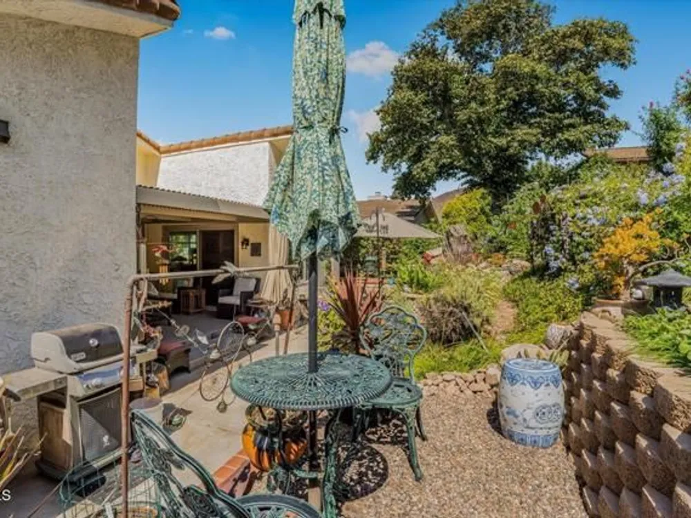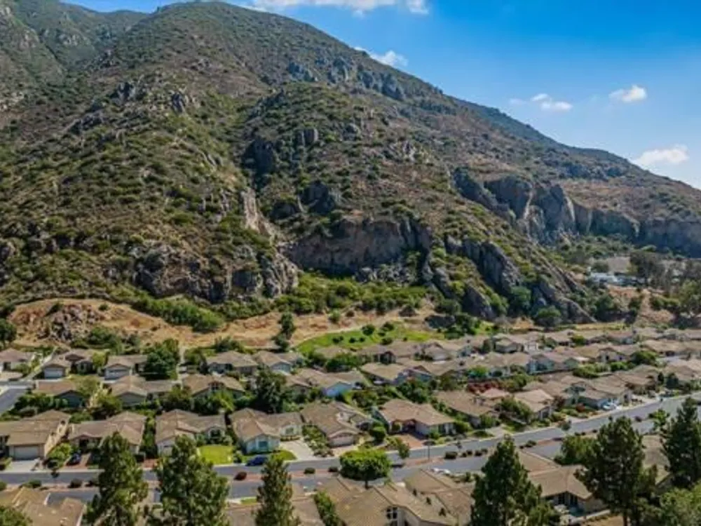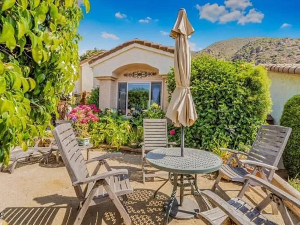 Welcome to this beautifully updated single-story home located in the highly sought-after 55+ community of The Springs. Enjoy peaceful mountain views as you enter this charming ranch-style residence, thoughtfully upgraded for comfort and convenience. Step inside to discover soaring vaulted ceilings and a bright, open-concept layout that creates a warm and inviting atmosphere.The heart of the home is the stunning kitchen--completely remodeled with an oversized island, deep drawers for easy access, and a full-height appliance pantry with pull-out shelves. Elegant, full-sized glazed pantry cabinets provide ample storage for both food and dishes, making this kitchen a dream for entertainers and home chefs alike.The expanded primary bathroom features a spacious shower and beautifully upgraded dual vessel sink cabinets, offering both style and function. The guest bathroom adds a touch of charm with a reimagined antique dresser vanity, complete with a vessel sink and antique mirror.Step outside to a unique backyard retreat, where a raised deck and rolled aluminum adjustable patio cover provide weather-proof outdoor living all year round. The beautifully maintained garden blooms from early spring to fall and includes a mature lemon tree--perfect for gardening enthusiasts or anyone who enjoys a tranquil outdoor setting.This move-in ready home offers low-maintenance living in a vibrant community and is just waiting for its next proud owner.Broker and agents do not guarantee the accuracy of square footage, lot size, or any information concerning the condition or features of the property provided by the seller or obtained from public records. Buyer is advised to independently verify all information through personal inspection and with appropriate professionals to their satisfaction.