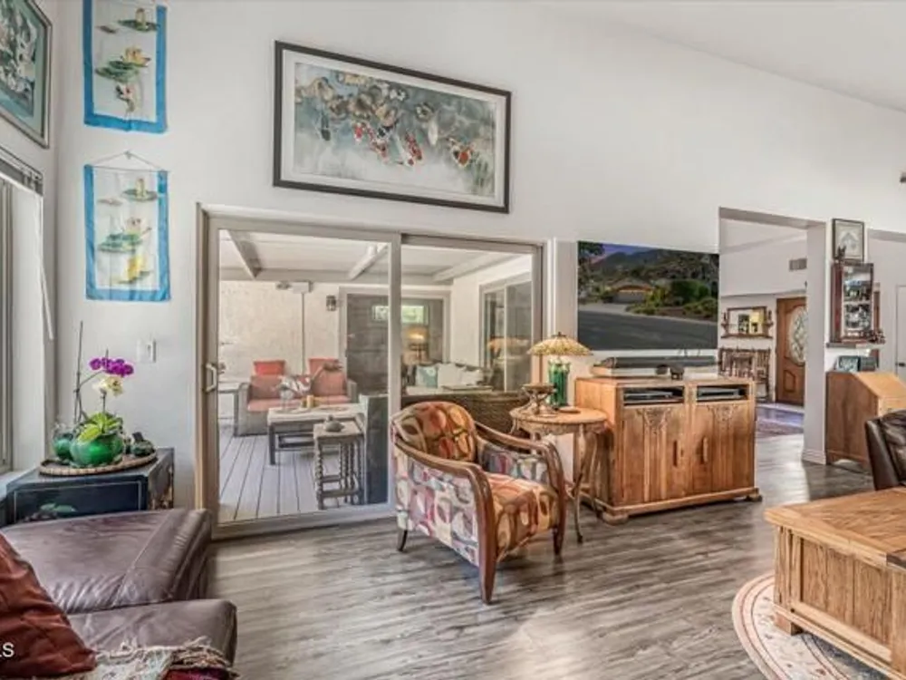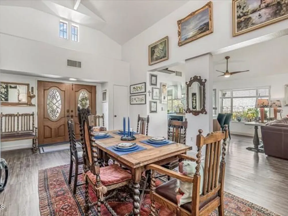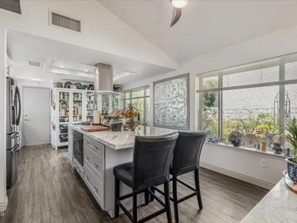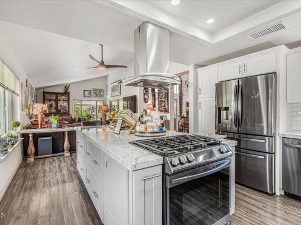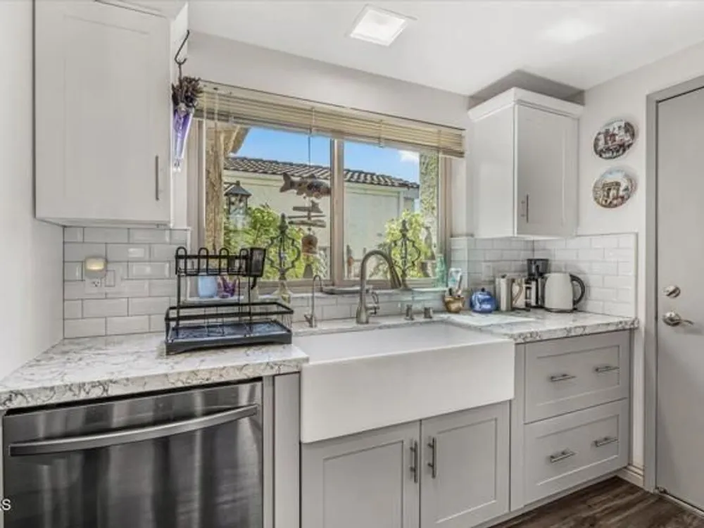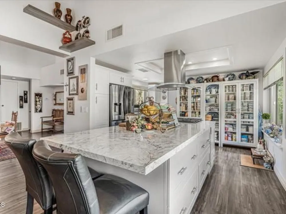 Welcome to this beautifully updated single-story home located in the highly sought-after 55+ community of The Springs. Enjoy peaceful mountain views as you enter this charming ranch-style residence, thoughtfully upgraded for comfort and convenience. Step inside to discover soaring vaulted ceilings and a bright, open-concept layout that creates a warm and inviting atmosphere.The heart of the home is the stunning kitchen--completely remodeled with an oversized island, deep drawers for easy access, and a full-height appliance pantry with pull-out shelves. Elegant, full-sized glazed pantry cabinets provide ample storage for both food and dishes, making this kitchen a dream for entertainers and home chefs alike.The expanded primary bathroom features a spacious shower and beautifully upgraded dual vessel sink cabinets, offering both style and function. The guest bathroom adds a touch of charm with a reimagined antique dresser vanity, complete with a vessel sink and antique mirror.Step outside to a unique backyard retreat, where a raised deck and rolled aluminum adjustable patio cover provide weather-proof outdoor living all year round. The beautifully maintained garden blooms from early spring to fall and includes a mature lemon tree--perfect for gardening enthusiasts or anyone who enjoys a tranquil outdoor setting.This move-in ready home offers low-maintenance living in a vibrant community and is just waiting for its next proud owner.Broker and agents do not guarantee the accuracy of square footage, lot size, or any information concerning the condition or features of the property provided by the seller or obtained from public records. Buyer is advised to independently verify all information through personal inspection and with appropriate professionals to their satisfaction.
