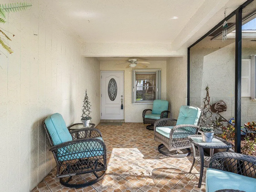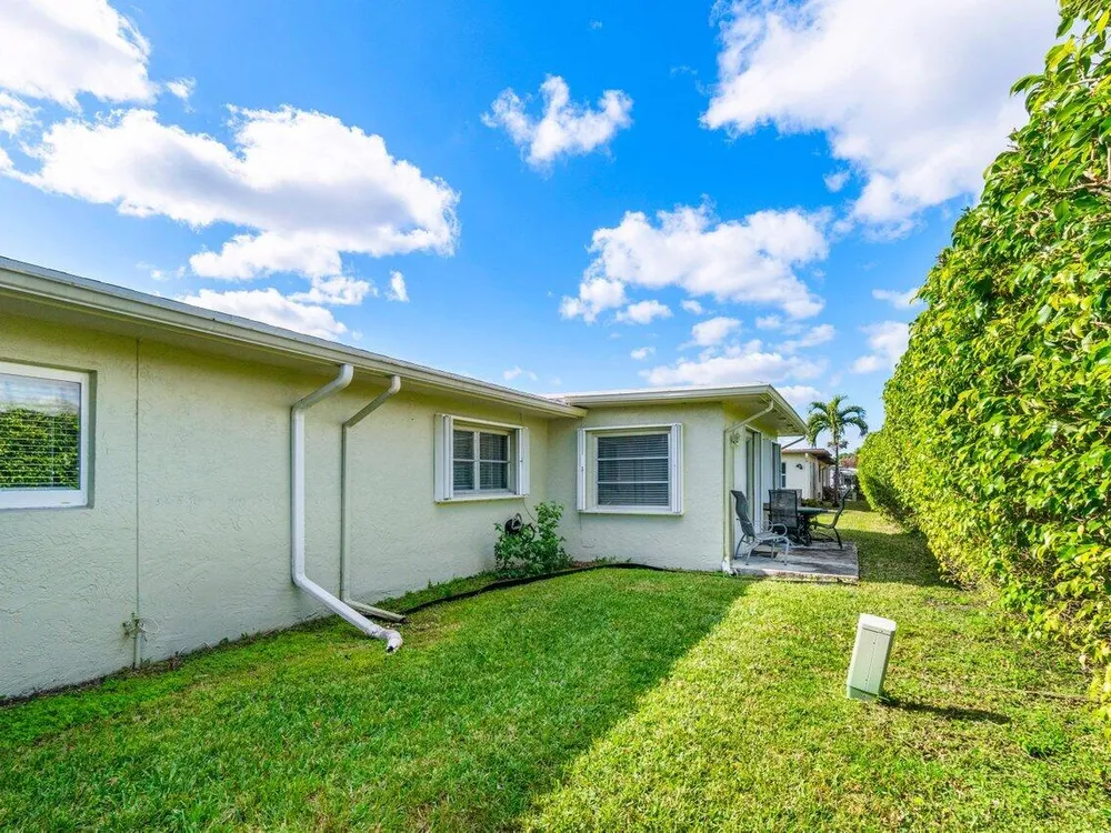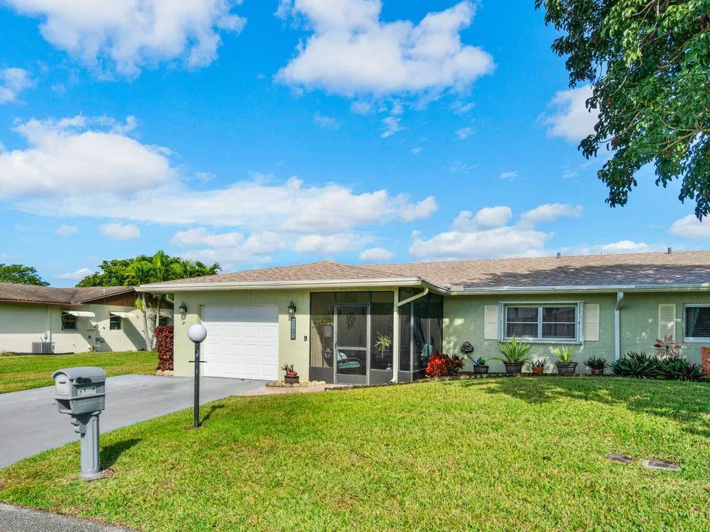 Discover your dream home at 6187 Overland Place in Delray Villas, a vibrant 55+ community in Delray Beach, FL! This 2 bedroom, 2 bath residence features an open floor plan, updated kitchen and baths, a NEW ROOF(2024) and NEW AC(2024), no carpet, and no rear neighbors. The enclosed patio serves as a den/office, adding versatile space to your home. Oversized 1-car garage with a washer and dryer and a double pad driveway. The cozy front patio is perfect for morning coffee or evening relaxation. Hurricane accordion shutters offer peace of mind. This pet-friendly community features a low HOA fee which includes cable, internet, lawn, pool, gym, card room, billiards, pickleball, tennis, and more! There is something for everyone. Don't miss this opportunity-schedule a viewing today!