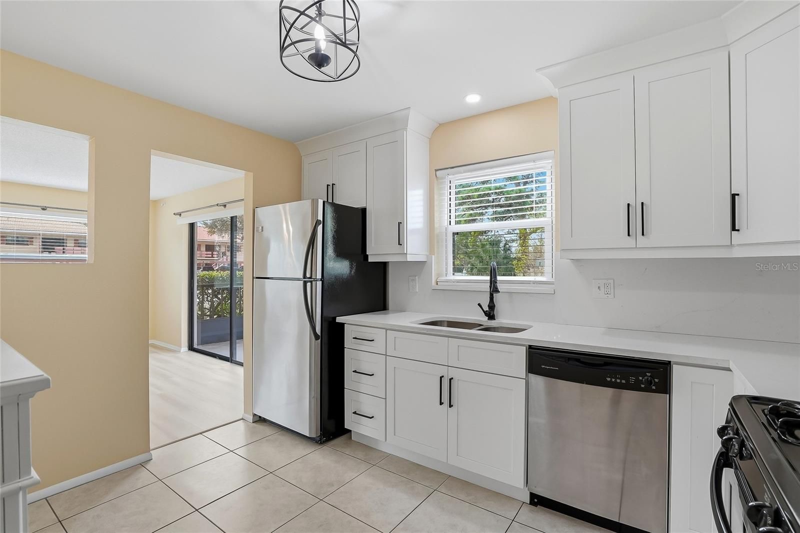 One or more photo(s) has been virtually staged. Move-in ready, water-view condo in Terrace Park of Five Towns, a 55+ community! Enjoy carefree Florida living in this beautifully updated first-floor END/CORNER unit in the pet-friendly Princeton building, filled with natural light and peaceful pond views. With 2 bedrooms, 2 baths and 1,360 SF, the layout offers generous living space plus an oversized interior laundry room with full washer & dryer hookups, plus great storage options! The renovated kitchen shines with quartz countertops, soft-close cabinetry, pantry pull-outs, stainless appliances, and a gas range—perfect for anyone who loves to cook, and the white buffet cabinet in the kitchen conveys with the sale. Relax in the spacious living area, then step out to the screened porch to take in the tranquil water view. The primary suite includes a walk-in closet and an updated bath with an easy step-in shower; the guest bath offers a full tub. Big-ticket updates include hurricane-impact windows (2020), HVAC (2021) with a blue light filter system, freshly painted interior (2026) and a brand-new roof (2025). The unit includes an assigned parking space and guest parking for your visitors. The Princeton building’s milestone inspection report & structural integrity reserve study have both been completed. Enjoy Five Towns’ resort-style amenities, including 6 pools, fitness center, tennis, pickleball, walking paths, bocce, billiards and a variety of social clubs. Convenient to the Gulf beaches and positioned for easy trips into Downtown St. Petersburg, Terrace Park of Five Towns grants you access to everything Tampa Bay has to offer. Schedule your private showing today and come see why this bright, corner, water-view home is the perfect place to enjoy the Florida lifestyle!