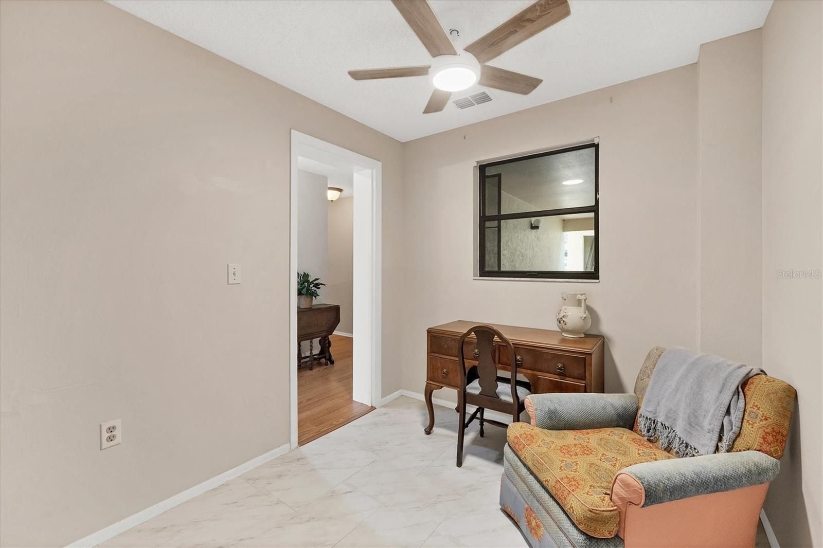 - Ceiling Fan(s), Eat-in Kitchen, Living/Dining Room, Open Floorplan, Main Level Primary, Solid-Wood Cabinets, Stone Counters, Thermostat, Walk-In Closet(s), Window Treatments