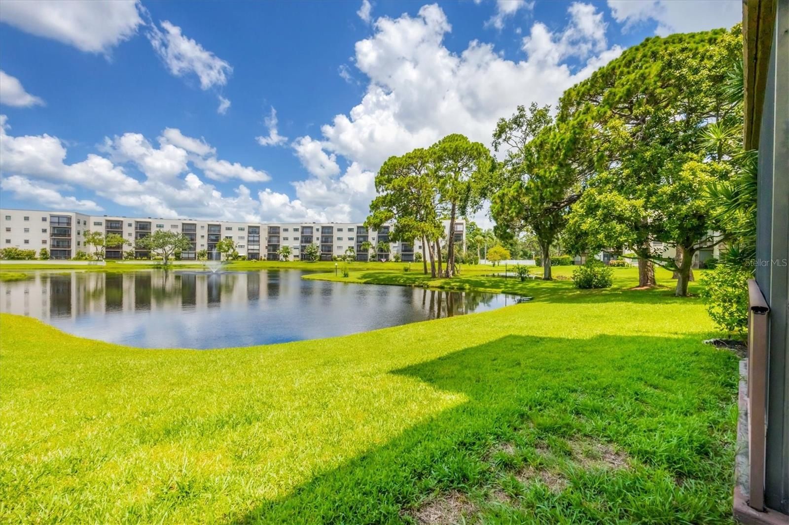 PRICE IMPROVEMENT! WARM WEATHER, WATER VIEWS & WORRY-FREE LIVING AWAIT! Escape the cold and enjoy the Florida lifestyle year-round in this beautifully updated 1,345 SF first-floor condo in the sought-after 55+ community of Terrace Park at Five Towns. This light-filled, oversized inside corner unit feels more like a home than a condo, with extra windows, wonderful privacy, and peaceful pond views from your living room, kitchen, and screened patio. Move in with confidence—this condo includes a 13-month home warranty, and the building has a new roof (2025) with both the Milestone Inspection and SIRS already completed. Step inside to an inviting open layout perfect for relaxing or entertaining visiting family. The updated kitchen features shaker cabinets, granite countertops, and brand-new stainless appliances—your first Florida meals will be made with brand-new everything. The primary suite features a private bath and a large walk-in closet, while the second bedroom provides a perfect space for guests, hobbies, or a home office. Extra conveniences include: Assigned covered carport, Spacious indoor laundry room with washer/dryer, sink, and room for storage plus durable flooring T/O and freshly cleaned carpets in bedrooms. Terrace Park at Five Towns is known for its friendly, active community—ideal for those looking to build new connections. Enjoy 5 swimming pools, 2 clubhouses, fitness centers (with a new one coming), walking paths, shuffleboard, billiards, grilling areas, and a full calendar of social events and clubs. A new RV/boat/vehicle storage lot is nearly complete, with spaces available for lease. Whether you're seeking a warm winter retreat or a full-time Florida home, this condo offers comfort, community, and a maintenance-free lifestyle close to beaches, shopping, and all that St. Petersburg has to offer. Must see this condo! Schedule your private showing today and start living the sunny, relaxed lifestyle you’ve been dreaming of.