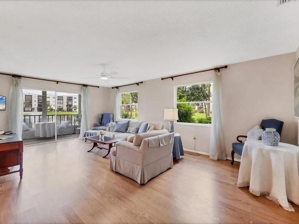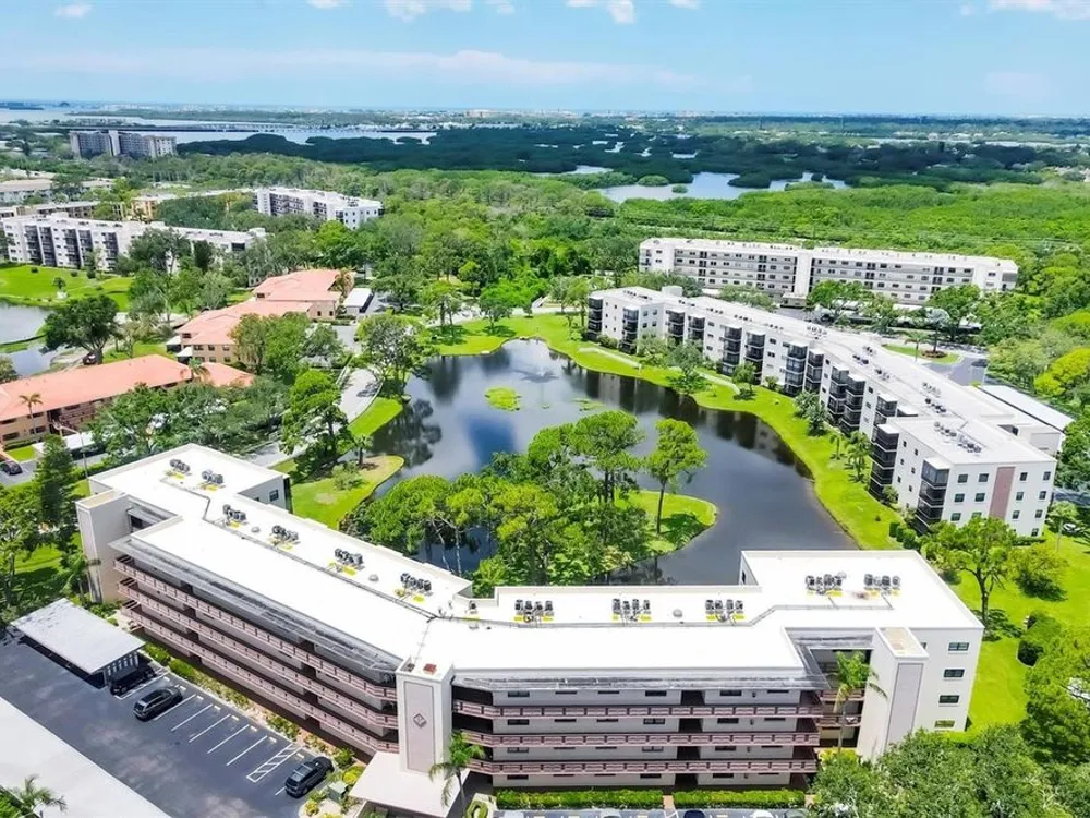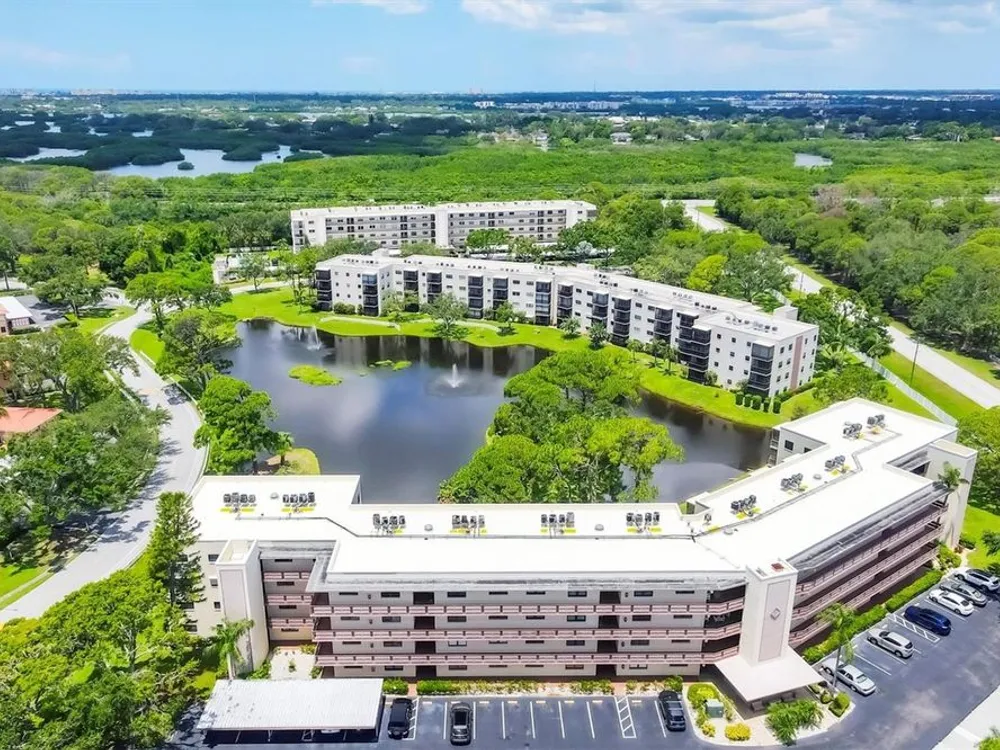 Welcome to easy Florida living in this beautifully updated 2-bedroom, 2-bath first-floor condo located in the highly desirable 55+ community of Terrace Park at Five Towns in St. Petersburg! This condo comes with a 13 MONTH HOME WARRANTY for buyer's Peace of Mind and to help make transitioning easier! Located in the popular Princeton building, this light-filled home offers a spacious open floor plan with serene pond views—enjoy the peaceful scenery from your screened-in patio or even while doing dishes through the perfectly placed kitchen window. This is a rare inside corner unit that is oversized at 1345 SF providing privacy, light and extra windows making it feel more like a home. Enjoy the modernized kitchen with shaker-style cabinets, granite countertops, and brand-new stainless steel appliances—you'll be the very first to use them! The main living area features durable laminate flooring, while the kitchen and baths are finished in easy-care tile. Freshly cleaned carpet adds comfort to both bedrooms. The primary suite includes a private en-suite bathroom and a spacious walk-in closet. This condo includes an assigned covered carport which is a real bonus as not all units have them. Another bonus is the oversized laundry room with full washer, dryer and laundry sink with cabinets above the laundry equipment. Spacious enough to add additional storage cabinets or shelves. Terrace Park offers a vibrant lifestyle with five swimming pools, two clubhouses, a gym (with a second on the way), walking paths, shuffleboard courts, a billiards room, outdoor grilling areas, and a calendar full of activities and special interest clubs. New RV, boat and vehicle parking lot is almost complete in Five Towns and spaces can be reserved for lease. See details in the attachments. Whether you're seeking a sunny seasonal escape or a year-round residence, this condo offers the perfect blend of comfort, community, and convenience. New roof on entire building completed in January 2025. The Milestone Inspection and Structural Integrity Reserve Study have been completed. Schedule your private showing today and discover why so many love calling Terrace Park home!