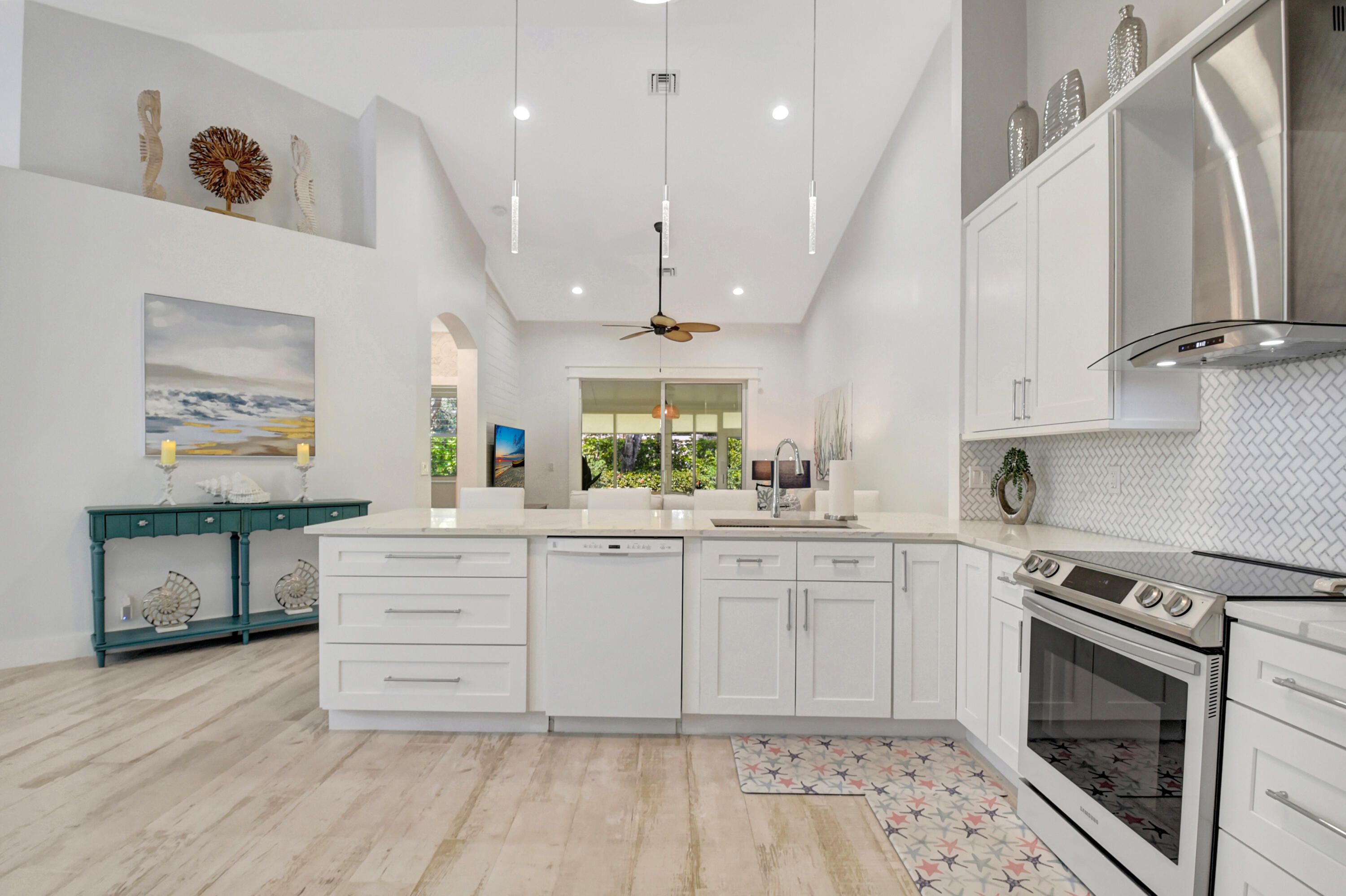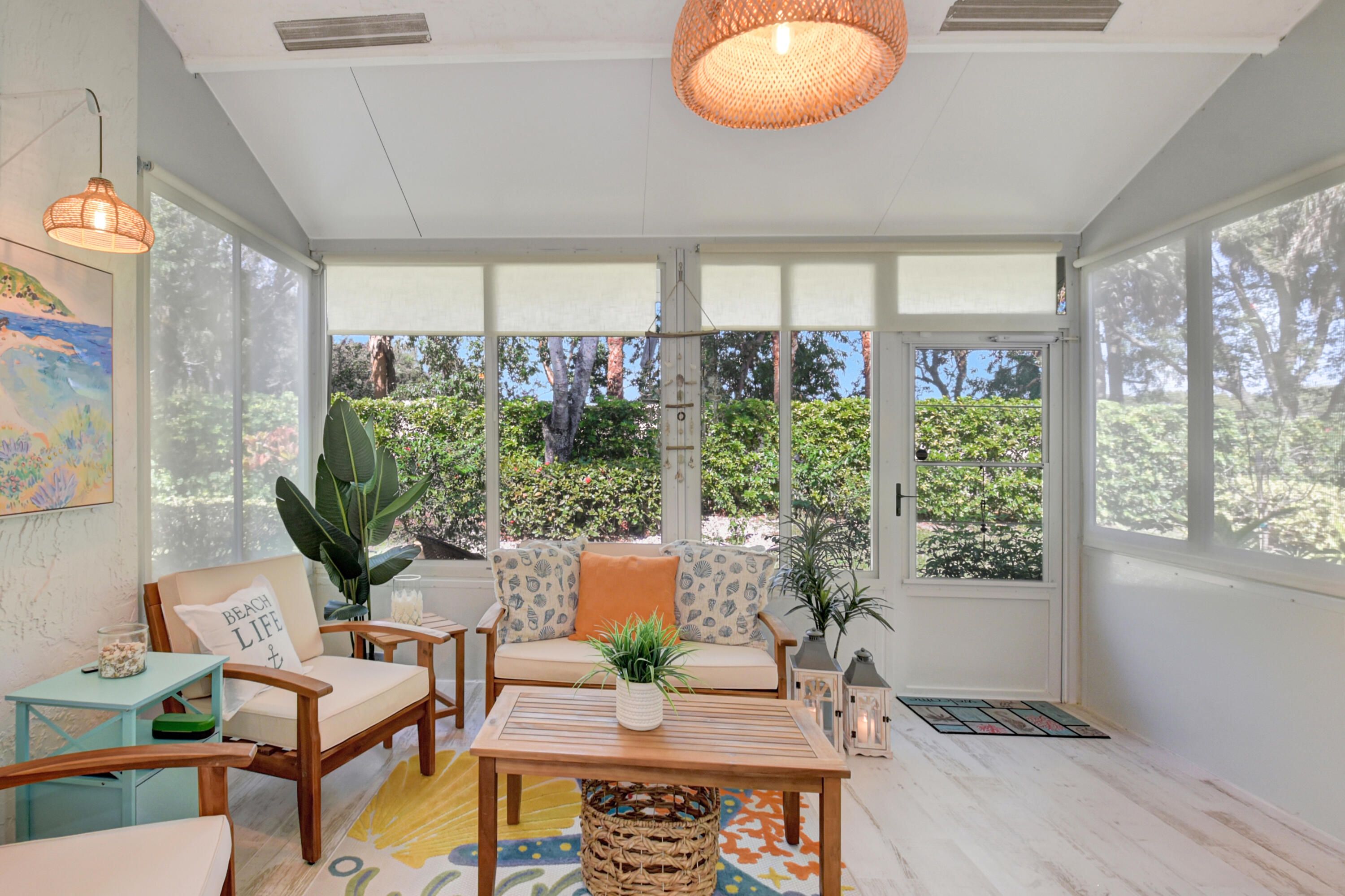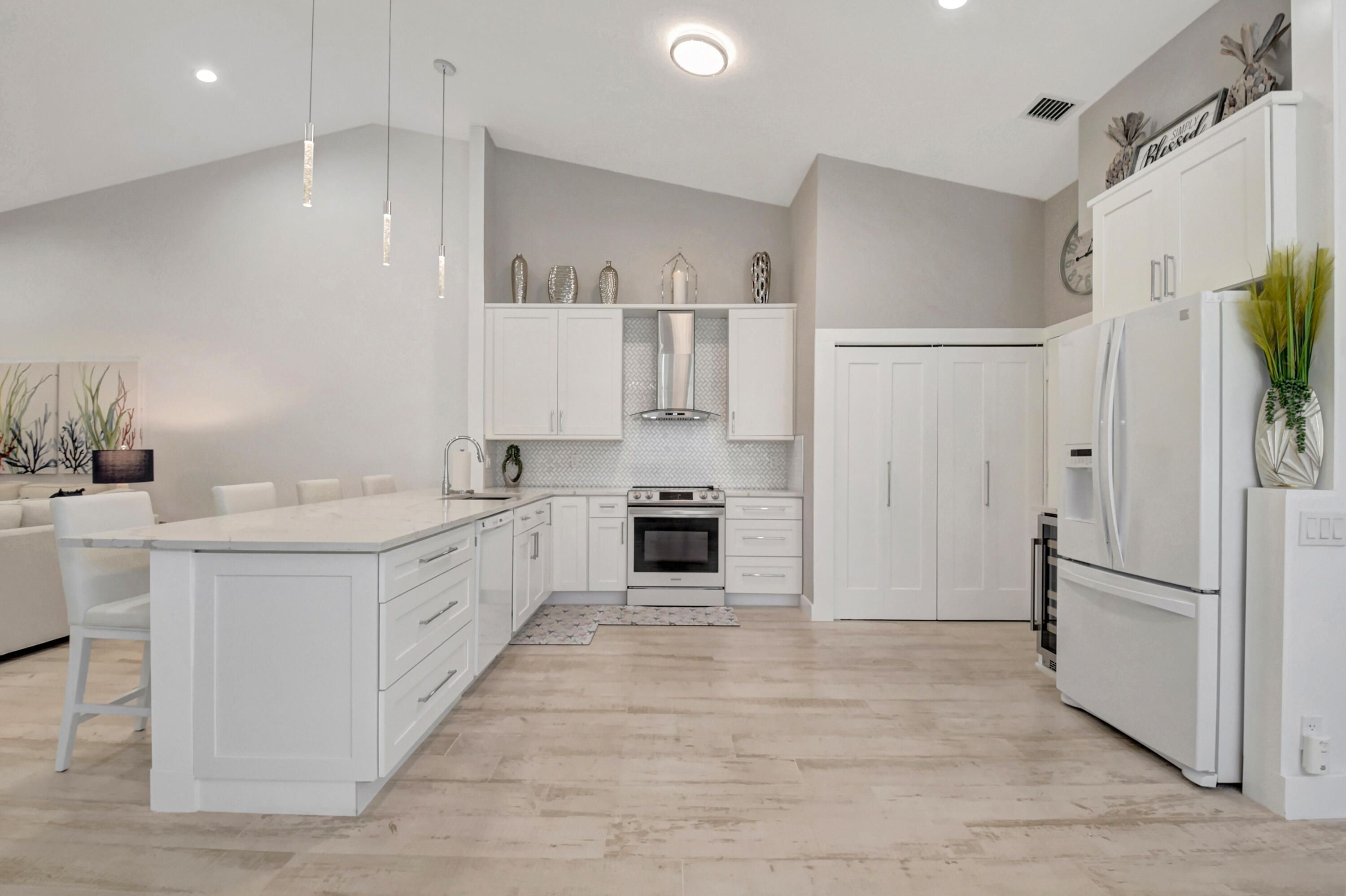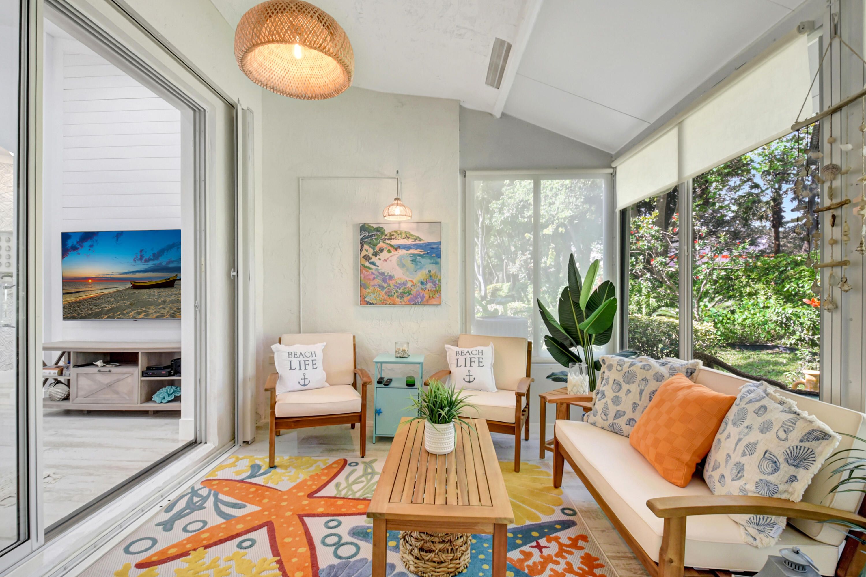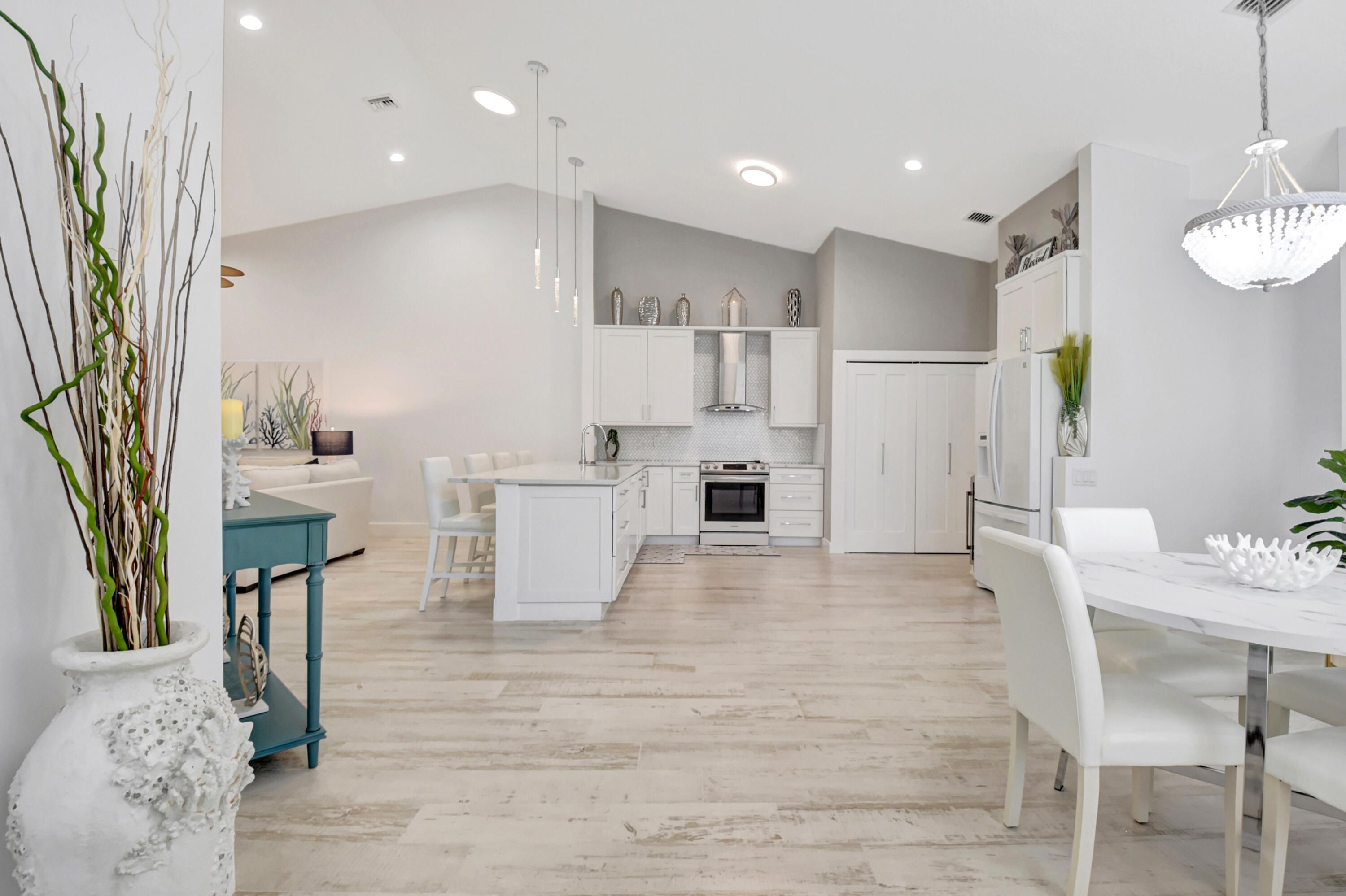 This is, without question, one of the nicest villas ever offered in Floral Lakes. Thoughtfully and extensively renovated, this 3-bedroom, 2-bath residence was redesigned for long-term enjoyment, not resale—and it shows in every detail. Furniture can be included. The home opens to a proper foyer and a bright, open-concept layout with smooth ceilings, recessed lighting, custom trim work, and porcelain flooring throughout. The kitchen is a standout: solid wood custom cabinetry, top-of-the-line Samsung appliances, a hooded range, single-basin sink, wine cooler, and additional built-in storage—all designed for both function and style. Every upgrade was done right: plantation shutters, custom solid interior doors, upgraded hardware, new lighting and fans, and custom closet systems. The enclosed, air-conditioned porch adds valuable flex space that integrates seamlessly with the home. Major systems have already been addressed, including a new roof (2025) and A/C (2023). The washer and dryer are premium LG, the landscaping is all new, and the widened driveway has been completely redone to accommodate two full-size vehiclesnot a single brick out of place. Out back, enjoy a quiet, private setting with no rear neighbors, a rare and peaceful feature. Furniture is negotiable, making this a truly move-in-ready opportunity. Simply put, this is a rare offeringcarefully curated, beautifully maintained, and available only because plans changed. ;
