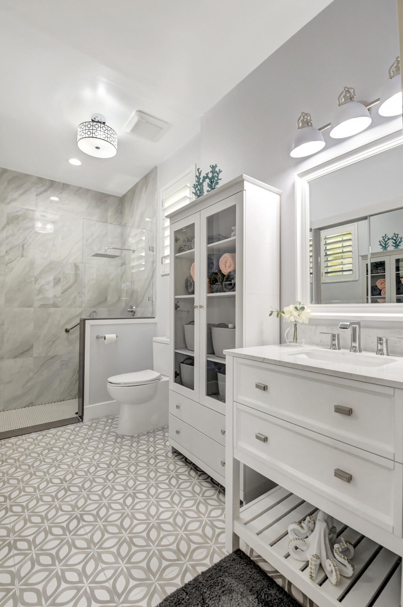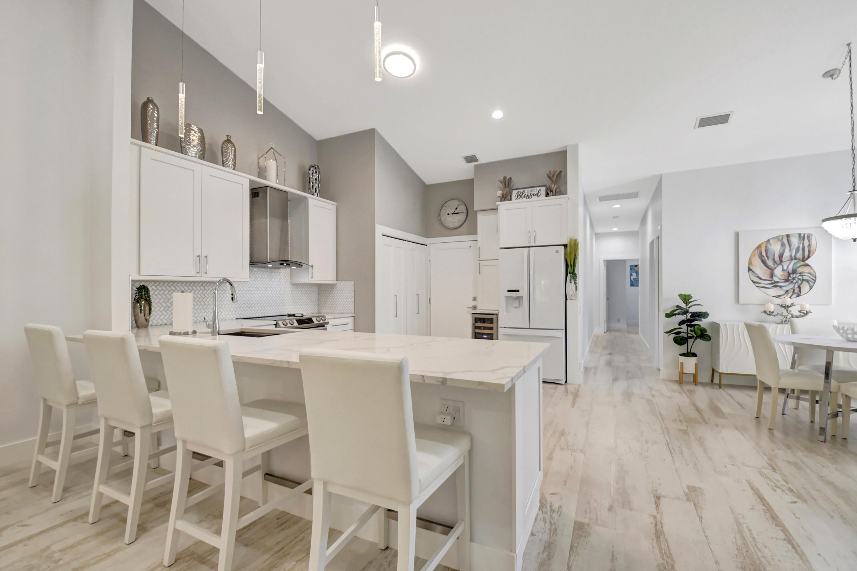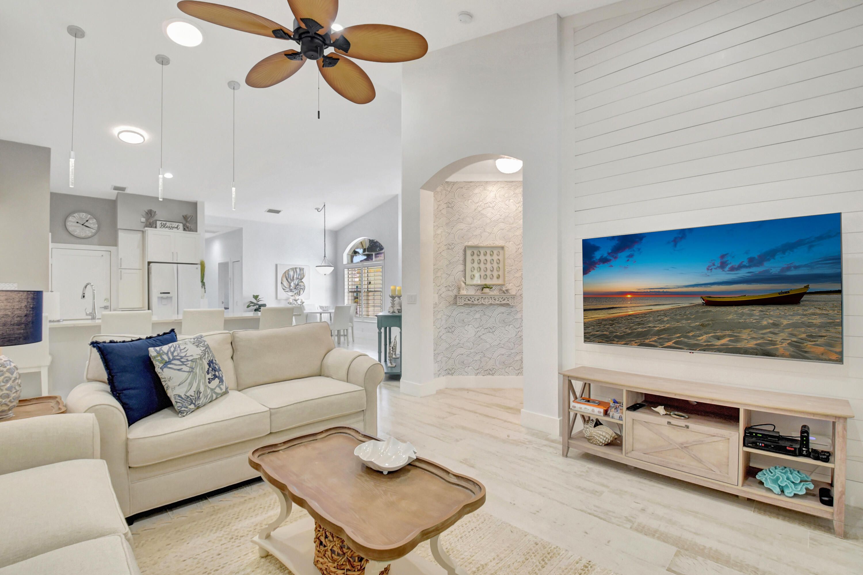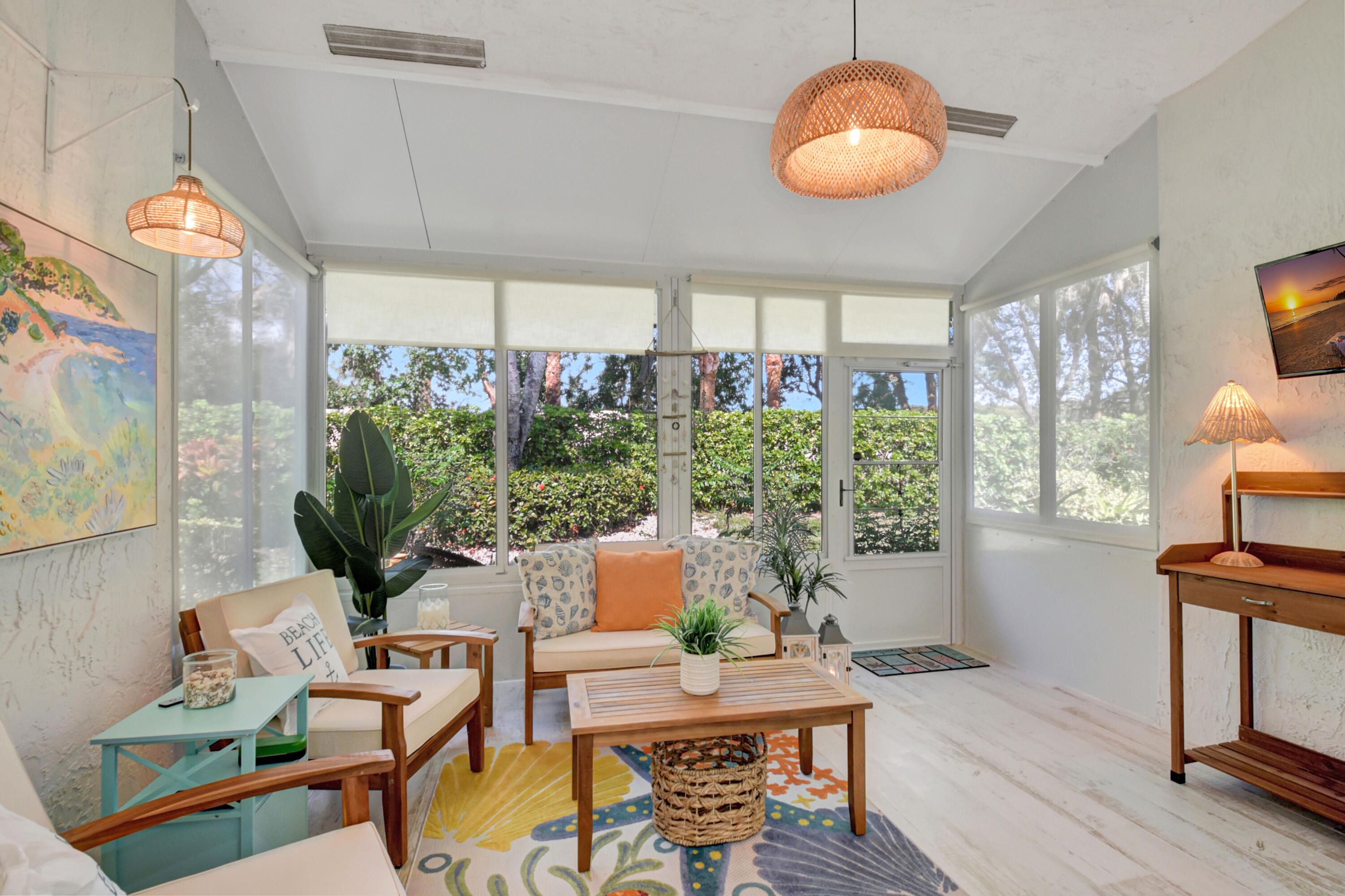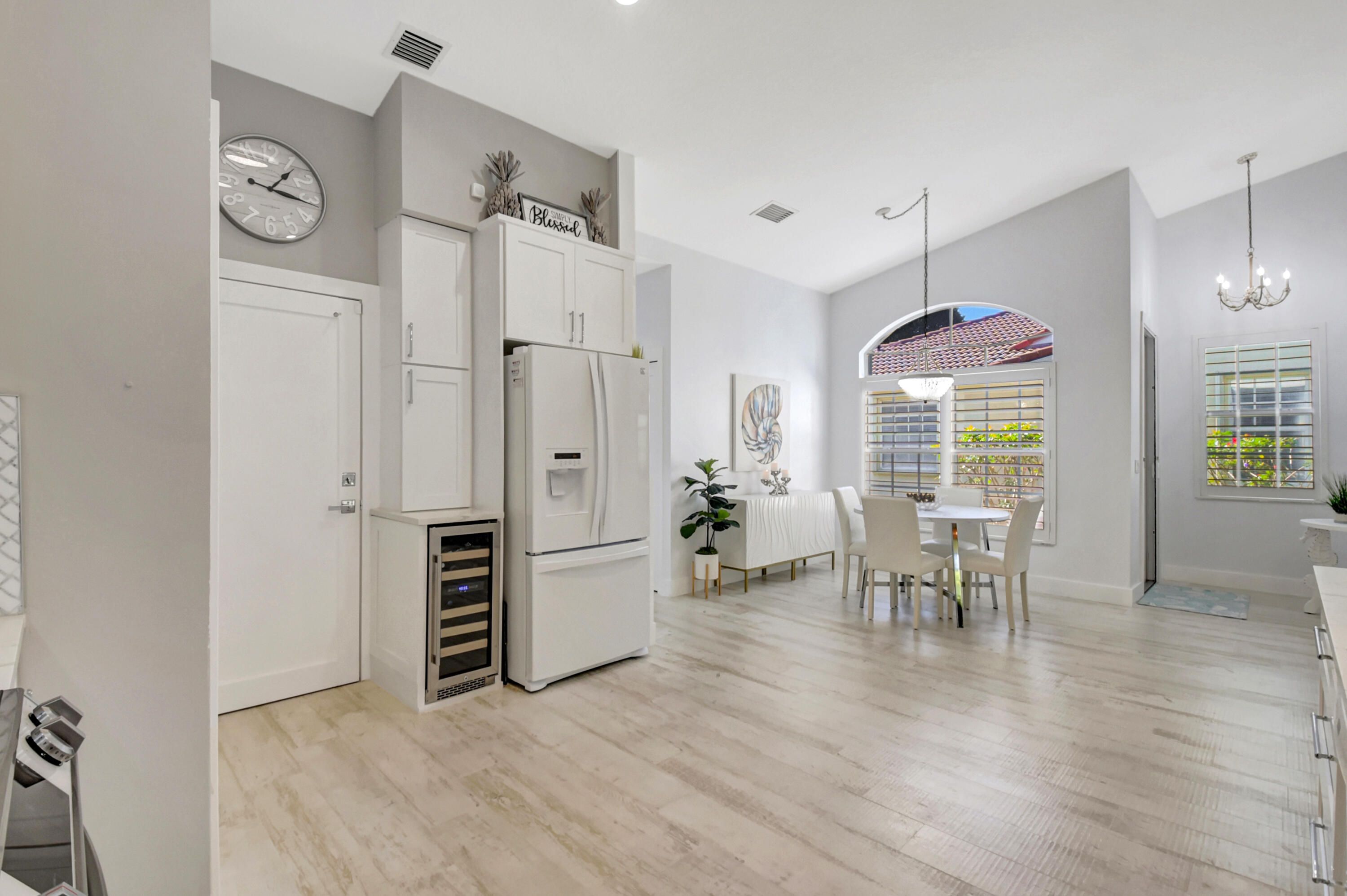 This is, without question, one of the nicest villas ever offered in Floral Lakes. Thoughtfully and extensively renovated, this 3-bedroom, 2-bath residence was redesigned for long-term enjoyment, not resale—and it shows in every detail. Furniture can be included. The home opens to a proper foyer and a bright, open-concept layout with smooth ceilings, recessed lighting, custom trim work, and porcelain flooring throughout. The kitchen is a standout: solid wood custom cabinetry, top-of-the-line Samsung appliances, a hooded range, single-basin sink, wine cooler, and additional built-in storage—all designed for both function and style. Every upgrade was done right: plantation shutters, custom solid interior doors, upgraded hardware, new lighting and fans, and custom closet systems. The enclosed, air-conditioned porch adds valuable flex space that integrates seamlessly with the home. Major systems have already been addressed, including a new roof (2025) and A/C (2023). The washer and dryer are premium LG, the landscaping is all new, and the widened driveway has been completely redone to accommodate two full-size vehiclesnot a single brick out of place. Out back, enjoy a quiet, private setting with no rear neighbors, a rare and peaceful feature. Furniture is negotiable, making this a truly move-in-ready opportunity. Simply put, this is a rare offeringcarefully curated, beautifully maintained, and available only because plans changed. ;