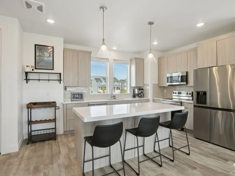 Experience Daybreak living at its finest in this spectacular, single-owner corner unit. Just three years old and impeccably cared for, the thoughtful design offers the spacious feel of a 2-story detached home. Relax on your porch with unobstructed views across the street. With its prime location and access to Daybreak's rich array of amenities, this home delivers an unbeatable lifestyle without the premium price tag.
