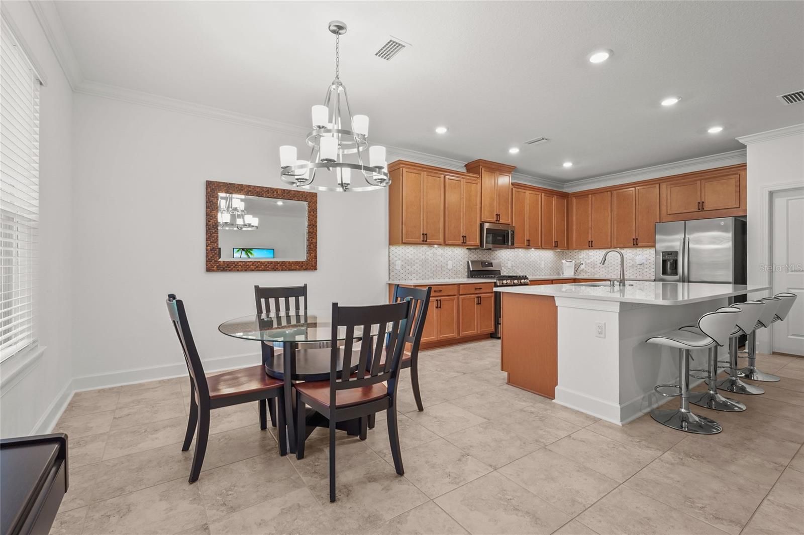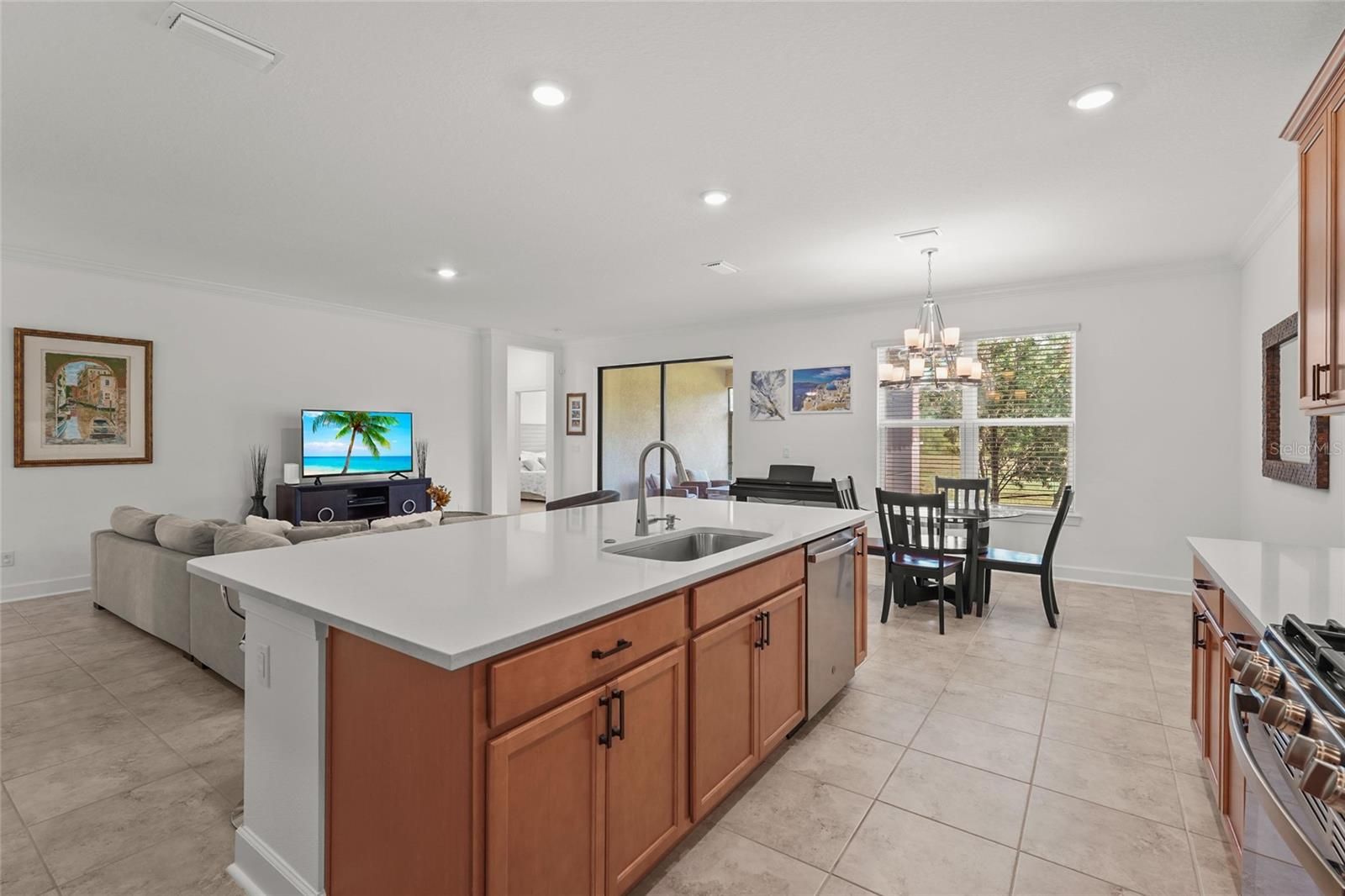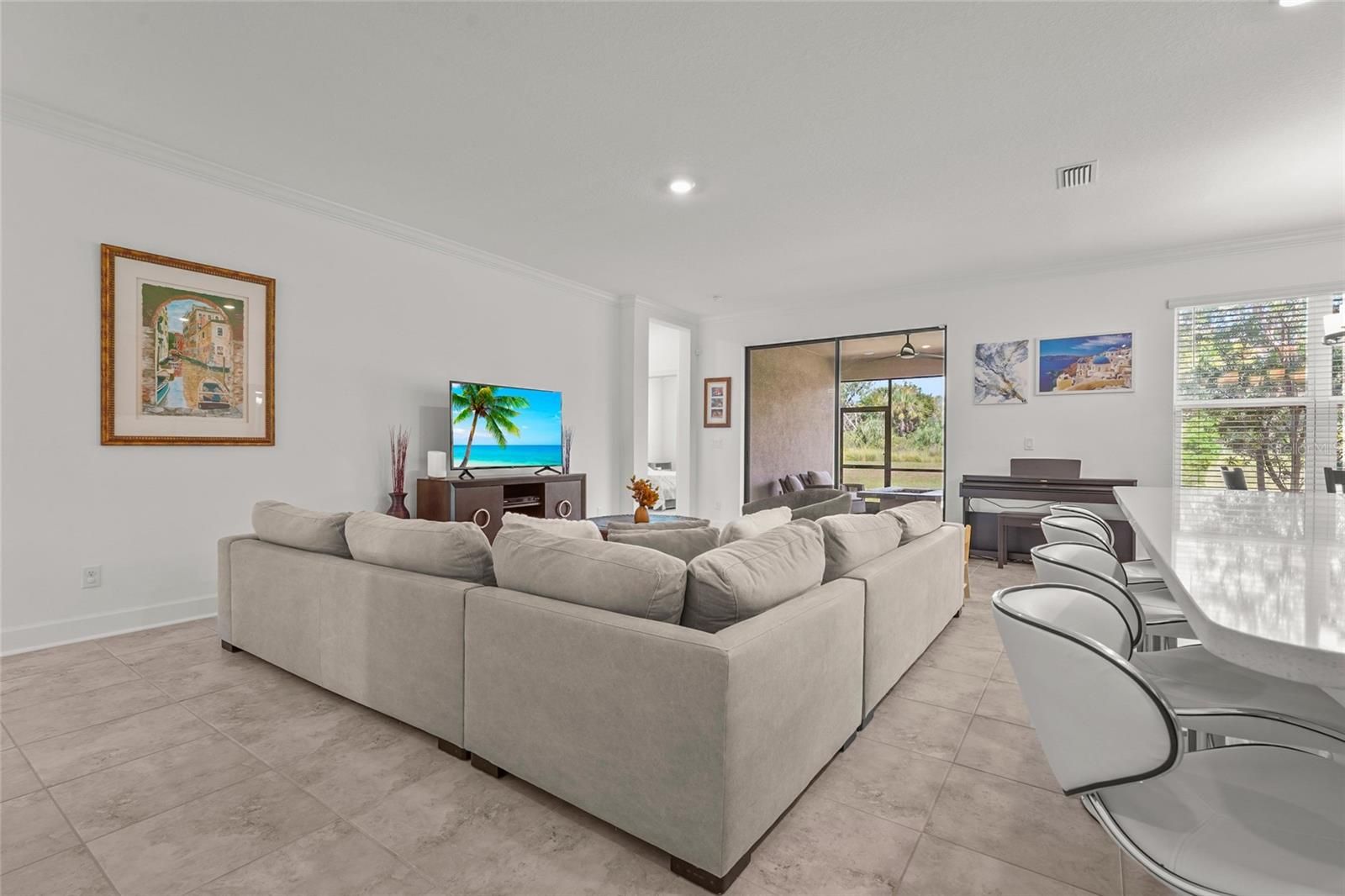 Welcome to your dream home in the highly desirable, gated community of Esplanade at The Heights! This beautifully upgraded Azzurro floor plan offers nearly 1,900 square feet of thoughtfully designed living space. With 2 bedrooms, 2 bathrooms, and a versatile den that could easily be a 3rd bedroom, this home effortlessly blends style, comfort, and modern functionality. Step inside to discover an elegant interior adorned with crown molding and a spacious, open-concept layout. The chef-inspired kitchen is the heart of the home, featuring GE stainless steel appliances, a gas stove, gleaming quartz countertops paired with a tile backsplash, a generous island, and a large walk-in pantry—perfect for entertaining or everyday living. The split-bedroom layout ensures privacy, while the luxurious primary suite offers a tranquil retreat with a walk-in shower, dual vanities, a linen closet, and a shared walk-in closet. The den provides flexible space ideal for a home office, hobby room, or potential third bedroom. This home has been thoughtfully enhanced with new landscaping, a screened lanai overlooking a private preserve, and a sealed paver driveway. Additional features include garage overhead storage racks, a large laundry room with a new washer and dryer, and a modern 2023 build that supports today’s lifestyle. Step outside and enjoy the tranquility of your backyard or embrace the resort-style living that Esplanade is known for. Community amenities include a sparkling pool and spa, cabana area, firepit, state-of-the-art fitness center, and lighted tennis, pickleball, and bocce courts. A dedicated Lifestyle Manager curates engaging events and social gatherings year-round. For those who enjoy the outdoors, the community also features a pet-friendly park, scenic hiking trails, and wide-open green spaces—providing the perfect backdrop for fitness, recreation, or simply soaking in Florida’s natural beauty. Perfectly situated near State Road 70 and University Parkway, you’re just minutes from premier shopping, dining, outdoor recreation, and the stunning beaches of Florida’s west coast. Don’t miss this incredible opportunity to own a piece of paradise in Esplanade and make this exceptional home yours.
