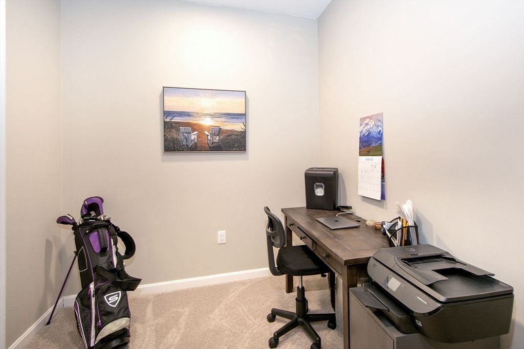 Welcome to Sawyer's Reach! This beautiful sun-filled 1-bedroom, includes a bonus room/office, 1 full bath with tiled shower enclosure. Sawyer's Reach is an active 55+ community. Built in 2020 by Thorndike, it features high ceilings, hardwood floors, a luxurious main bath with tile flooring, and a spacious walk-in closet with custom designed shelving. All appliances, including a washer and dryer, are included. Enjoy the convenience of a detached garage space. There is an elevator for ease of bringing groceries and packages to your top floor unit. With close proximity to downtown Plymouth, and easy access to community amenities. The community offers a variety of activities, including gardening and a rooftop grill space, swimming pool and club room, exercise room, library, and planned activities. Explore miles of walking trails and nearby shopping. The furnace has recently been serviced and water filtration system was installed 12.12. This condo is a must see and ready for you to move in.