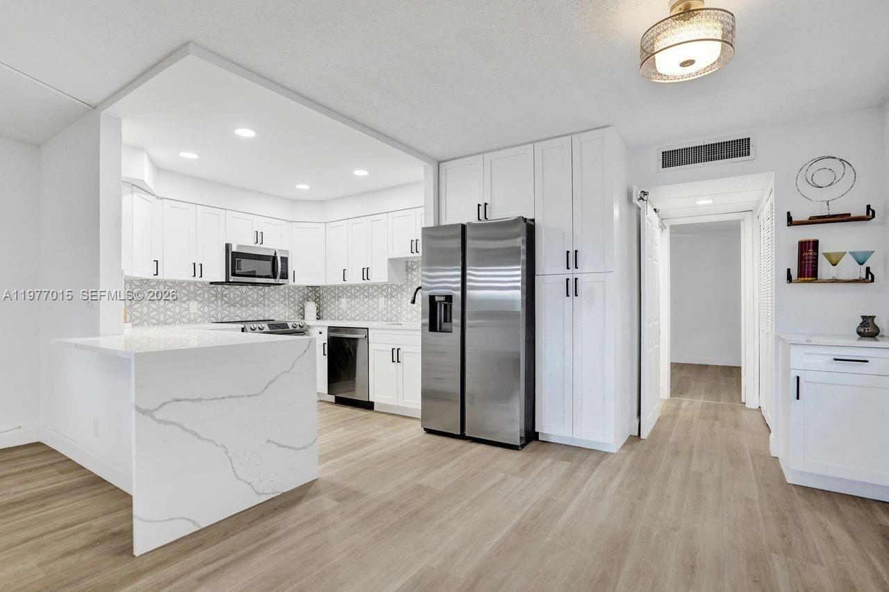 COMPLETELY REMODELED WITH IMPACT WINDOWS AND DOOR! Move-in ready 1-bedroom, 1.5-bath first-floor corner unit in the desirable Monaco section of Kings Point Golf and Country Club, a premier 55+ lifestyle community. Ideally located within walking distance to the clubhouse, this light and bright residence features impact windows and modern finishes throughout. The updated kitchen offers white soft-close cabinetry, quartz countertops and all new appliances. Additional upgrades include a new water heater, electrical panel and full-size washer and dryer located in the covered rear patio area. Enjoy the convenience of assigned parking space #22 located directly outside the back door. Residents of Kings Point enjoy an exceptional resort-style lifestyle with two 18-hole golf courses, three clubhouses, a state-of-the-art theater, library, five swimming pools, hot tub, tennis, pickleball, shuffleboard, fitness facilities, and countless social activities. Community courtesy buses provide transportation throughout the community and to nearby shopping, restaurants, and hospitals, with Downtown Delray and beaches just minutes away. No leasing permitted for the first two years of ownership. Estate sale, superbly priced and ready for immediate enjoyment of the Kings Point lifestyle.