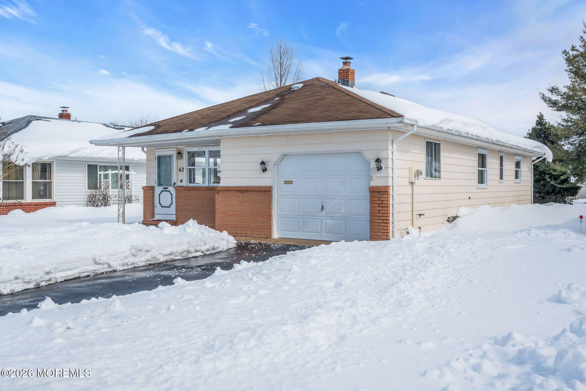 COMING SOON - Showings begin Friday, 02/27. Clean, functional, and priced with updates in mind, this 2-bedroom, 1-bath ranch home in Holiday City Berkeley offers 1,124 sq. ft. of easy one-level living. Inside, you'll find a large open living/dining area, a functional kitchen, and a large covered patio for extra everyday space. The home also includes a 1-car garage with additional storage, a brick front, and an irrigation system. Important maintenance items include 2015 windows, central AC, gas furnace, and new gas water heater. Interior finishes are older, including carpet/vinyl flooring and a dated bathroom, giving buyers room to update over time. A solid value in this 55+ community, with low HOA fees plus pools, clubhouses, gyms, tennis, pickleball, and a wide range of activities.