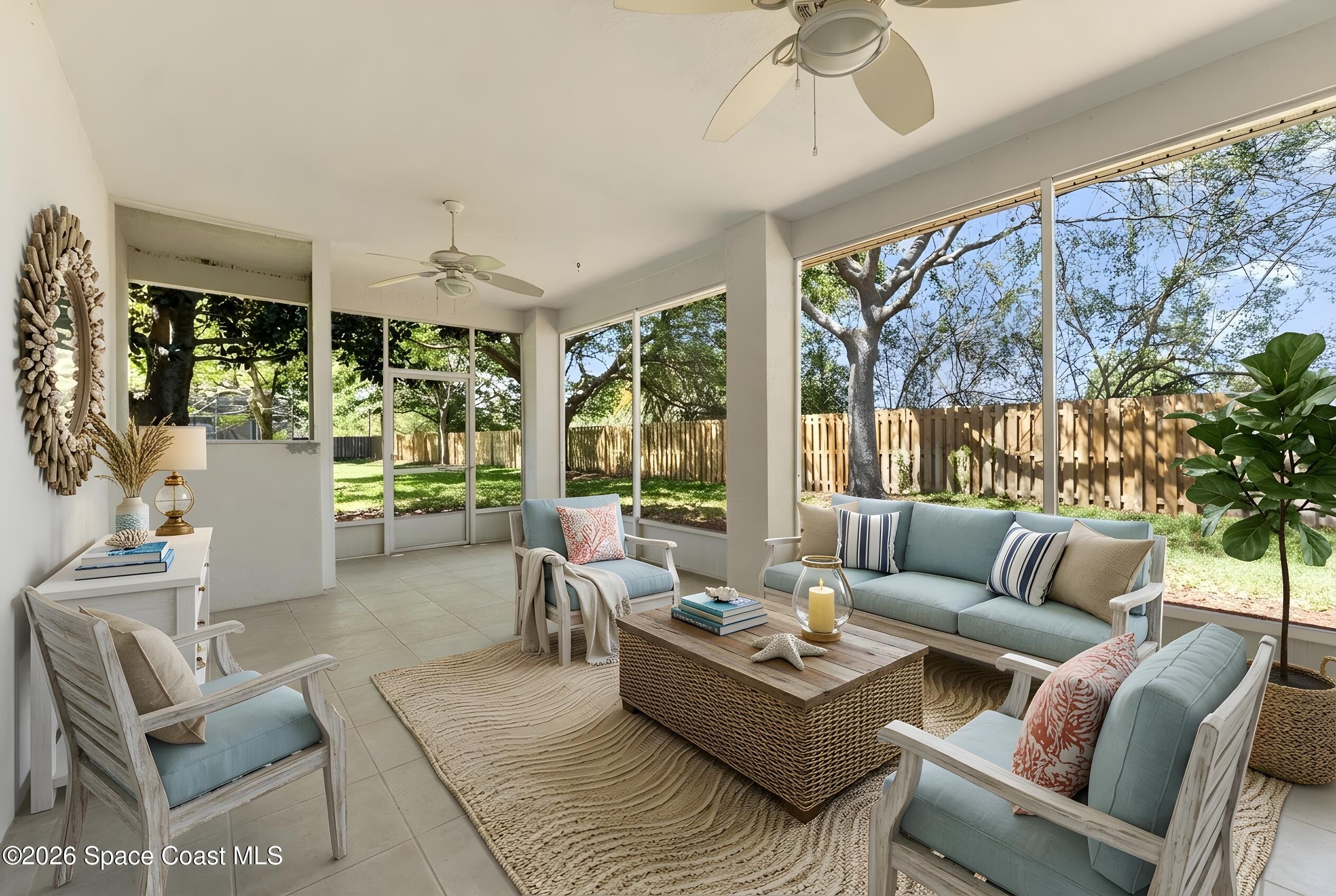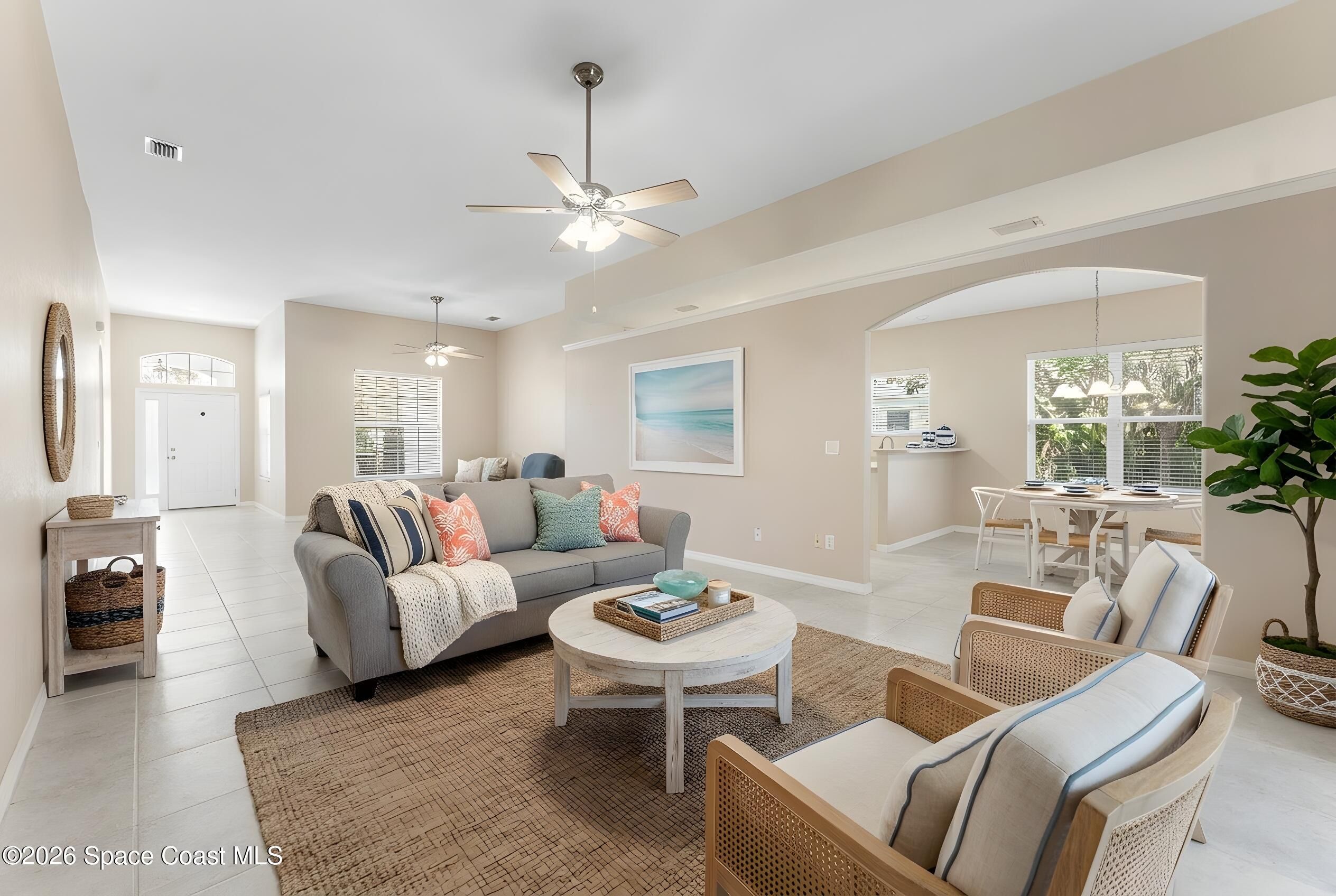 Welcome to this beautiful 3 bedroom, 2 bath home nestled in the desirable 55+ community of Compass Pointe in West Melbourne. Designed for both comfort and ease of living, this residence offers a spacious and functional layout perfect for relaxed Florida living. Step inside to find tile flooring throughout most of the home, providing a clean, cohesive look that's both stylish and low-maintenance. The open living and dining areas create an inviting atmosphere, ideal for entertaining or simply enjoying quiet evenings at home. The well-appointed kitchen flows seamlessly into the main living space, while the generously sized bedrooms offer comfort and flexibility for guests, hobbies, or a home office. The primary suite features its own private bath, creating a peaceful retreat. One of the standout features of this home is the large under-truss screened-in porch--perfect for enjoying morning coffee, evening breezes, or gathering with friends while taking in the Florida sunshine without the elements. Located within a gated community, residents enjoy added privacy and security along with access to a clubhouse that has a community pool as well as other activities like bocce ball and shuffleboard. Whether you're looking to stay active or simply relax, this community offers something for everyone. Conveniently situated in West Melbourne, you're just minutes from shopping, dining, healthcare facilities, and beautiful nearby beaches. Come see this home today!