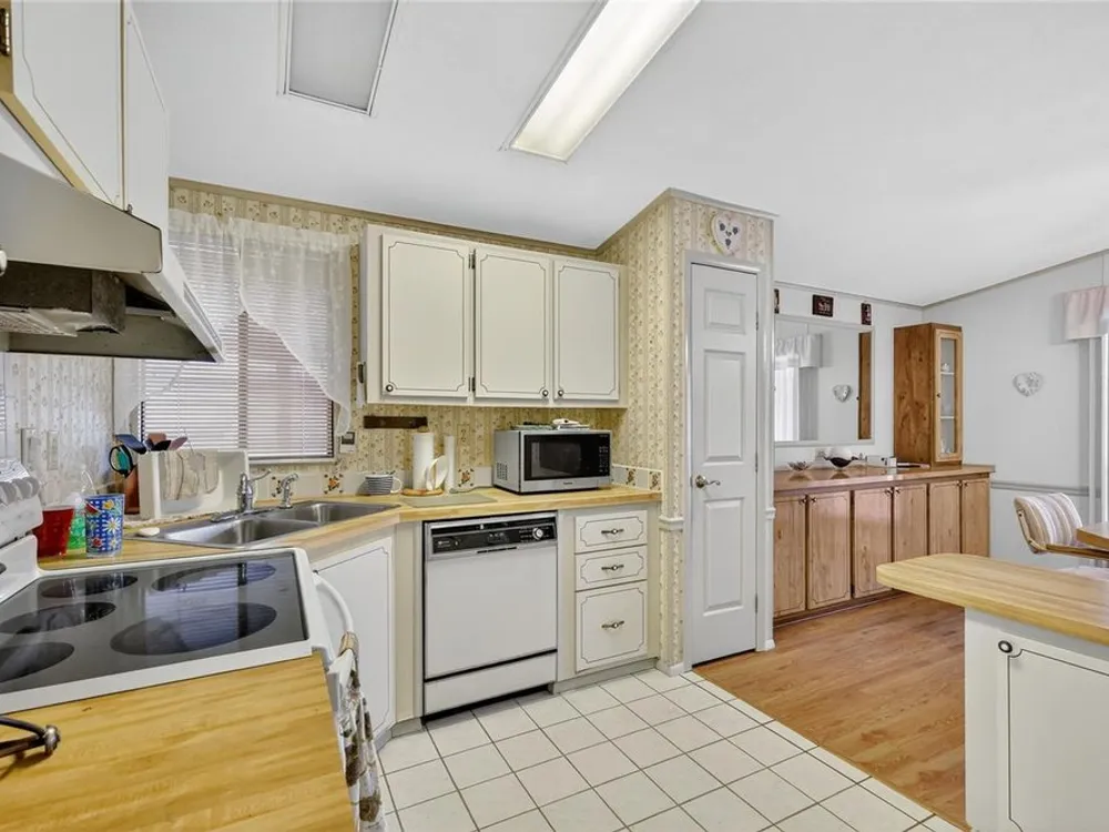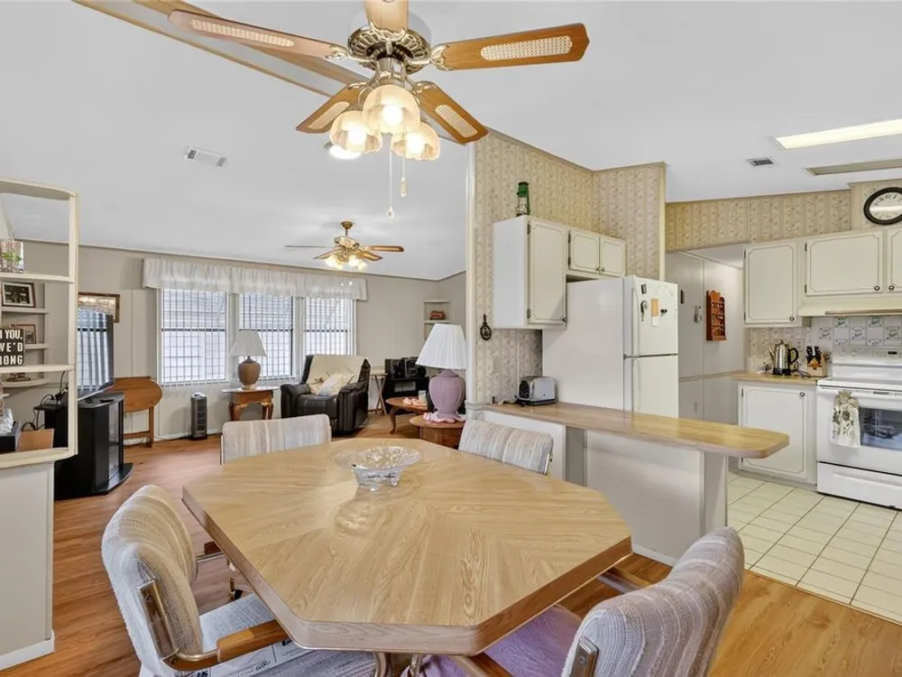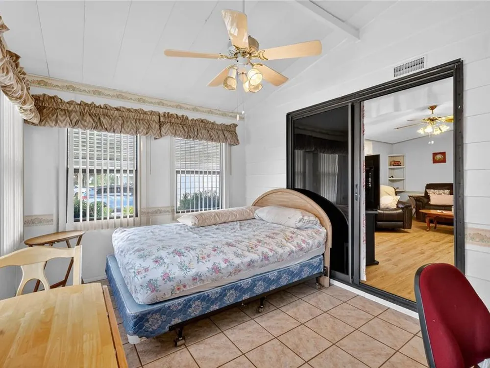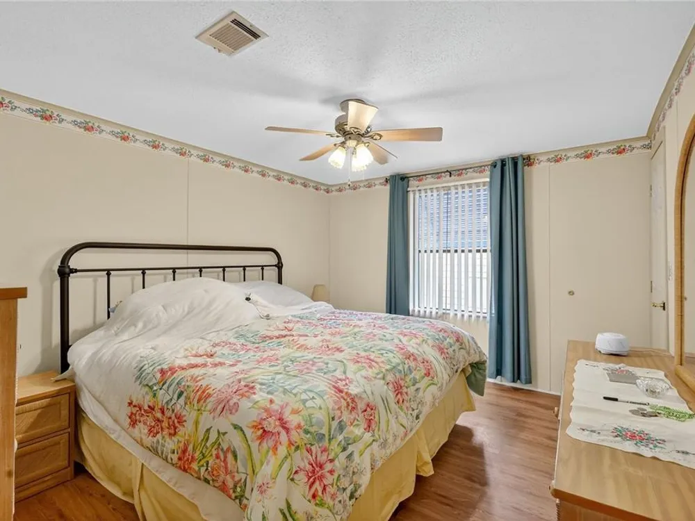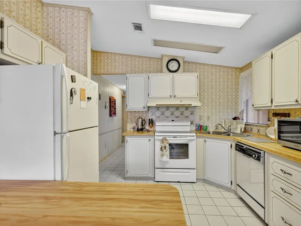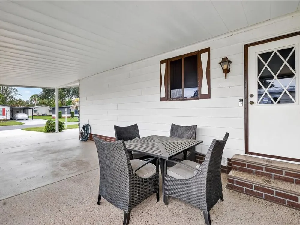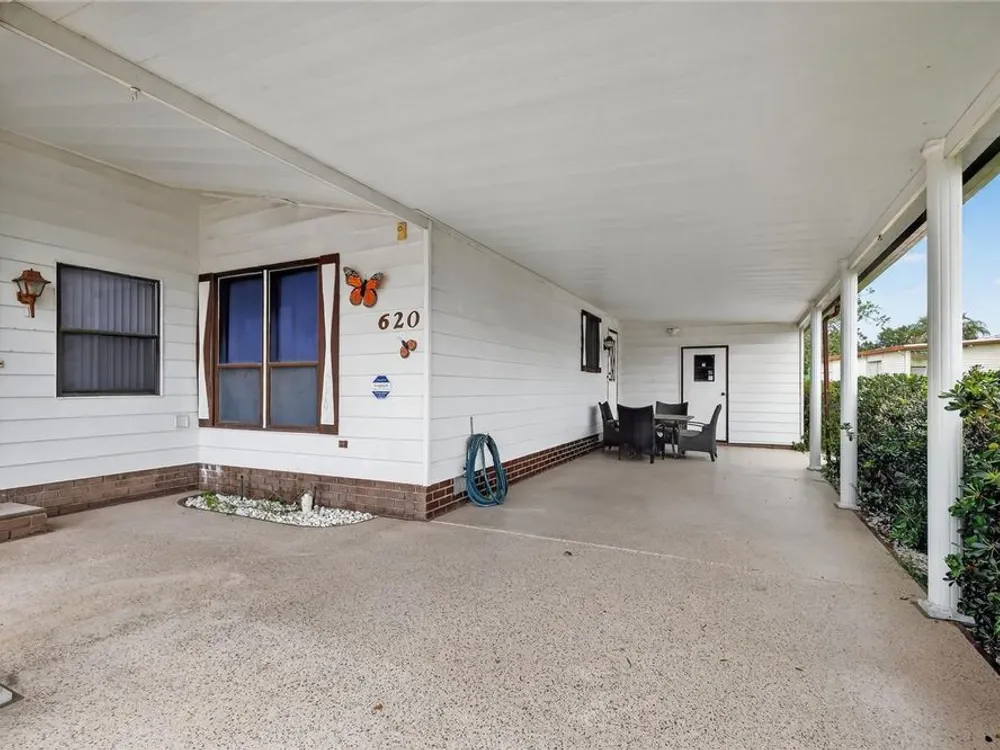 Come take a look at this well maintained home in The Villages at Orange Blossom Gardens! This Doublewide boasts a new roof in 2019, new HVAC in 2018, new engineered laminate wood throughout in 2019 and a golf cart garage with Golf Cart Included (2012 Yamaha Drive - gas powered)!! The home is sold furnished and features a spacious primary bedroom with full bedset, guest bedroom with walk in closet-furnished, and a bonus Florida room that is fully enclosed and has an optional third bedroom set up. Kitchen is fully stocked and features a great layout with a breakfast bar / prep area leading into your dining area that hosts a large built in bar / hutch. This home has everything and comes with everything while being in a perfect location in the Villages! Your moments from Pools and Parks, restaurants and shopping and all the amenities the Villages has to offer! Come take a look today!