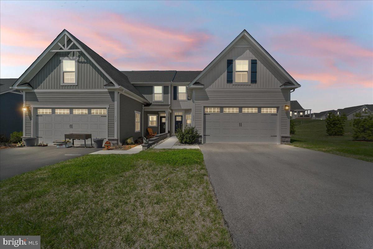 Nestled in the charming Big Elk community, this delightful twin home is designed for those seeking a vibrant lifestyle in a serene setting. With an age requirement of 55 and over, this residence offers a peaceful retreat while remaining part of a lively neighborhood. Built in 2021, this Craftsman-style home blends modern design with a warm and inviting atmosphere. Set on a premium corner lot, the property offers enhanced space and curb appeal. A large two-car driveway provides ample parking over and above the 2 car garage. The layout is thoughtfully designed for comfort and functionality. The main level features an open flow connecting the dining area to the main living spaces. A bonus room extension off the back of the living room provides flexible space ideal for a sitting area, office, or an additional entertaining area. The kitchen showcases white cabinetry, granite countertops, stainless steel appliances, a smooth-top electric stove, and a built-in microwave, offering both style and practicality. A main-floor laundry room adds convenience, along with a well-placed powder room for guests. The first-floor primary bedroom serves as a private retreat, complete with a ceramic tile bath and walk-in closet, designed for comfort and ease of living. Beautiful hardwood stairs lead you upstairs to two additional generously sized bedrooms and a full ceramic tile bathroom, providing comfortable space for guests, family, or hobbies. This home features an efficient gas fired 2-zone HVAC system. This home offers more than just a place to live—it delivers comfort, convenience, and community in a beautifully maintained neighborhood designed for easy living and connection. This great community features a swimming pool, fitness center, and clubhouse. Hurry before this one gets away!!!