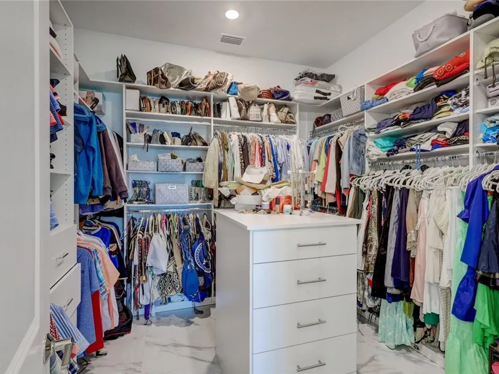 - Attic Ventilator, Built-in Features, Ceiling Fan(s), Coffered Ceiling(s), Eat-in Kitchen, High Ceilings, Kitchen/Family Room Combo, Living/Dining Room, Open Floorplan, Main Level Primary, Solid Surface Counters, Solid-Wood Cabinets, Thermostat, Tray Ceiling(s), Walk-In Closet(s), Wet Bar, Window Treatments