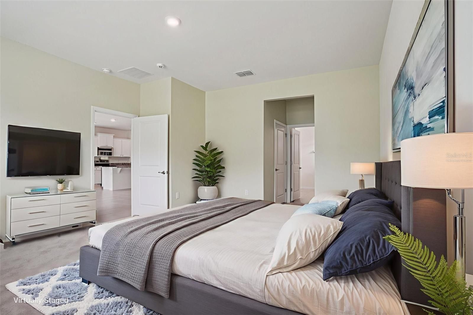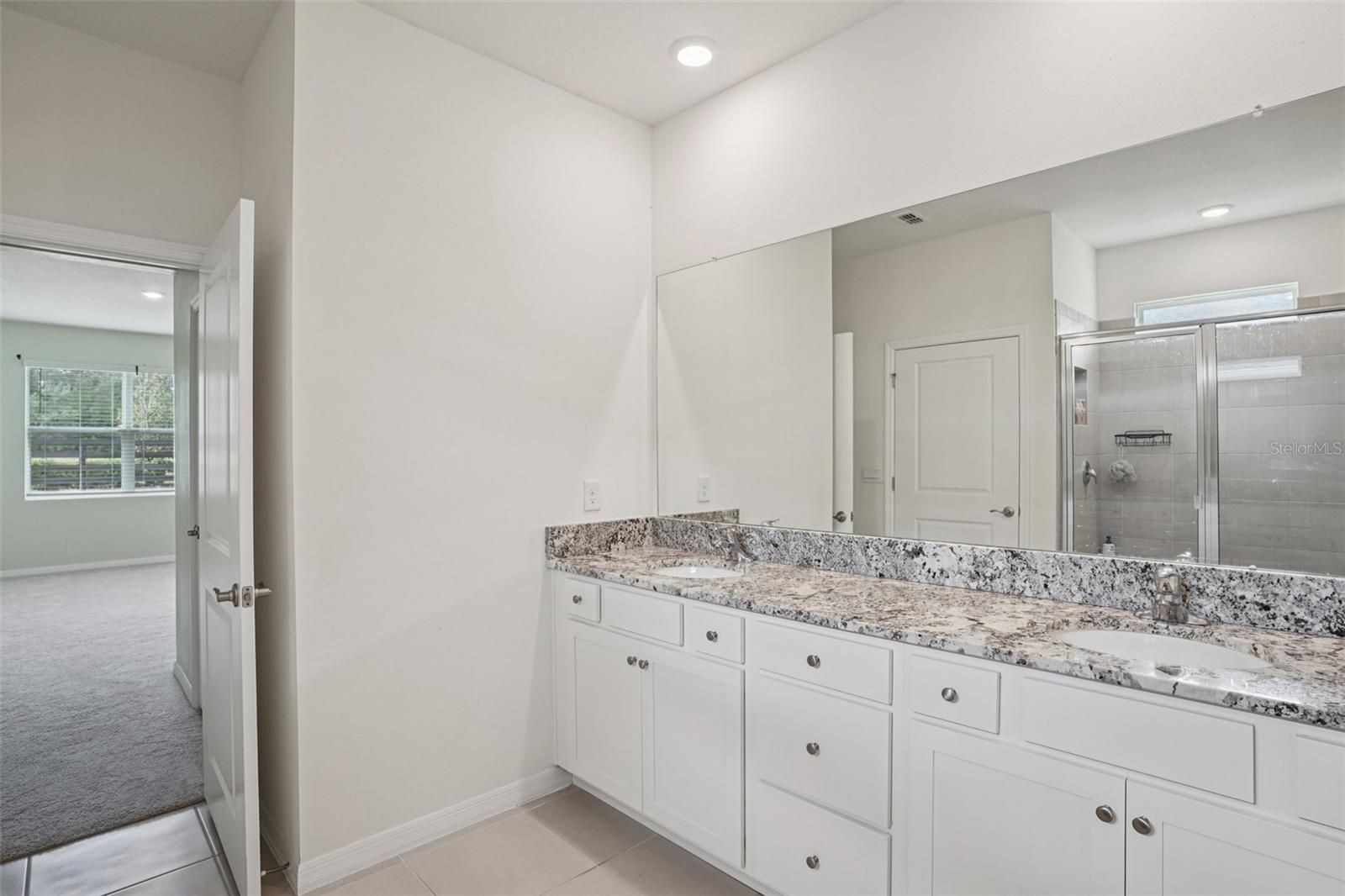 - Eat-in Kitchen, High Ceilings, Open Floorplan, Main Level Primary, Split Bedrooms, Stone Counters, Thermostat, Walk-In Closet(s)