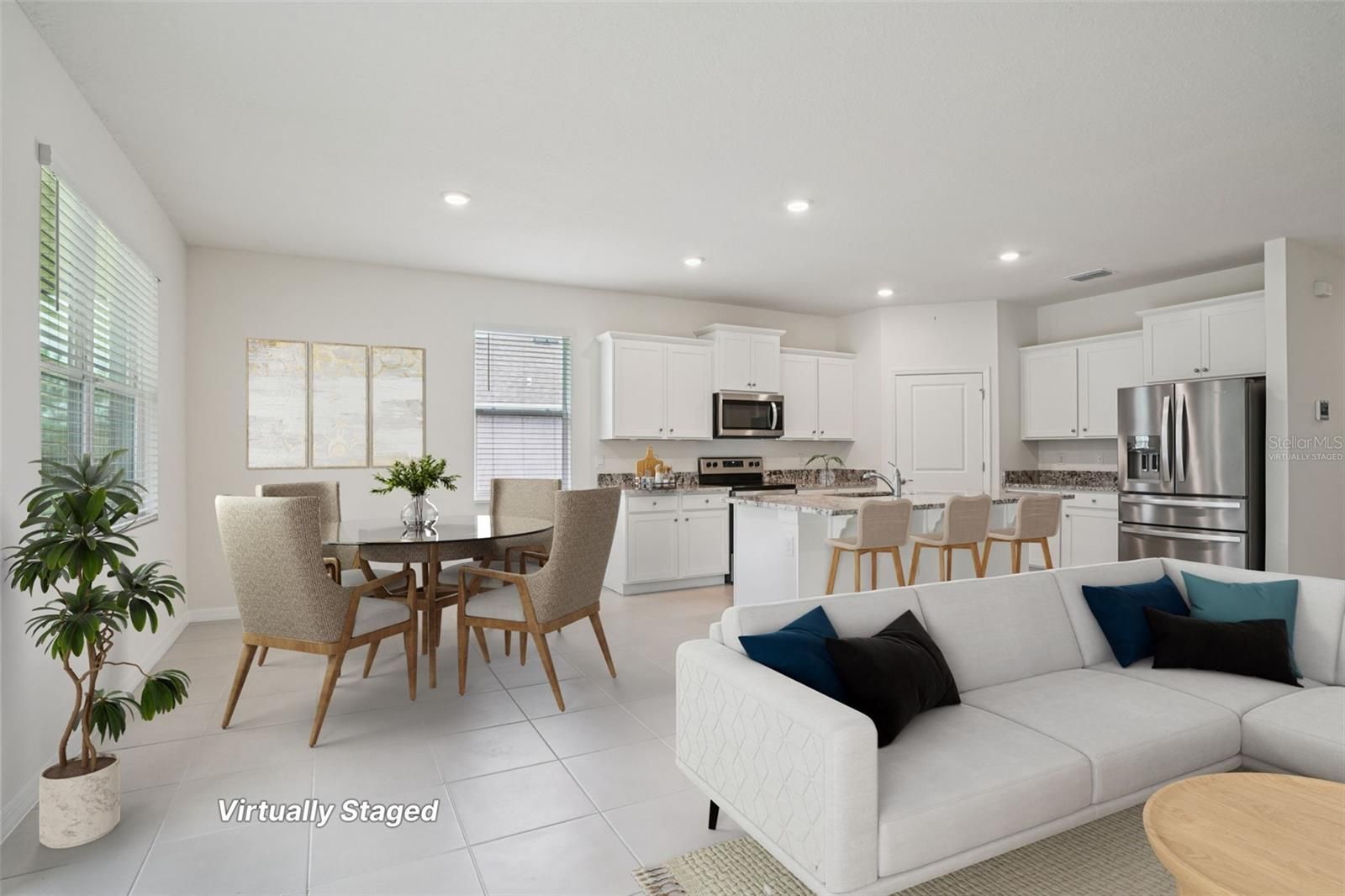 MAYJOR PRICE REDUCTION! This seller is motivated and will entertain all offers. So come and view the perfect blend of comfort and modern living in this stunning 4-bedroom, 2-bathroom single-family home, boasting 2,034 sq. ft. of meticulously designed space. Built in 2023, this smart home offers contemporary finishes and thoughtful details tailored for active adults seeking both luxury and convenience. Four generously sized bedrooms provide ample space for family and guests, while two full bathrooms feature modern fixtures and finishes.The open-concept design seamlessly connects the living, dining, and kitchen areas, creating an inviting atmosphere for entertaining and everyday living. Enjoy Florida's beautiful weather on your private patio, perfect for morning coffee or evening relaxation. Located in a vibrant 55+ subdivision, the HOA includes lawn maintenance, trash and the upkeep of the clubhouse and common areas insuring all the homes and facilities stay in tip top shape. This carefree living allows you to enjoy the recreational facilities, walking trails, social clubs. and a range of amenities designed for an active lifestyle. Situated in the heart of Ocala, this home offers easy access to shopping, dining, medical facilities, and cultural attractions. The community's serene environment combined with its proximity to urban conveniences makes it an ideal choice for those seeking the best of both worlds.