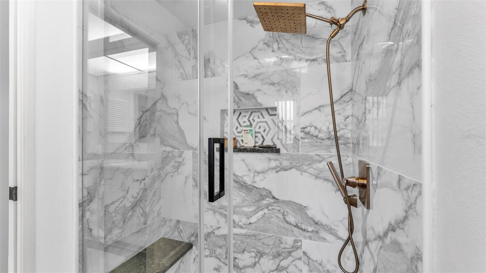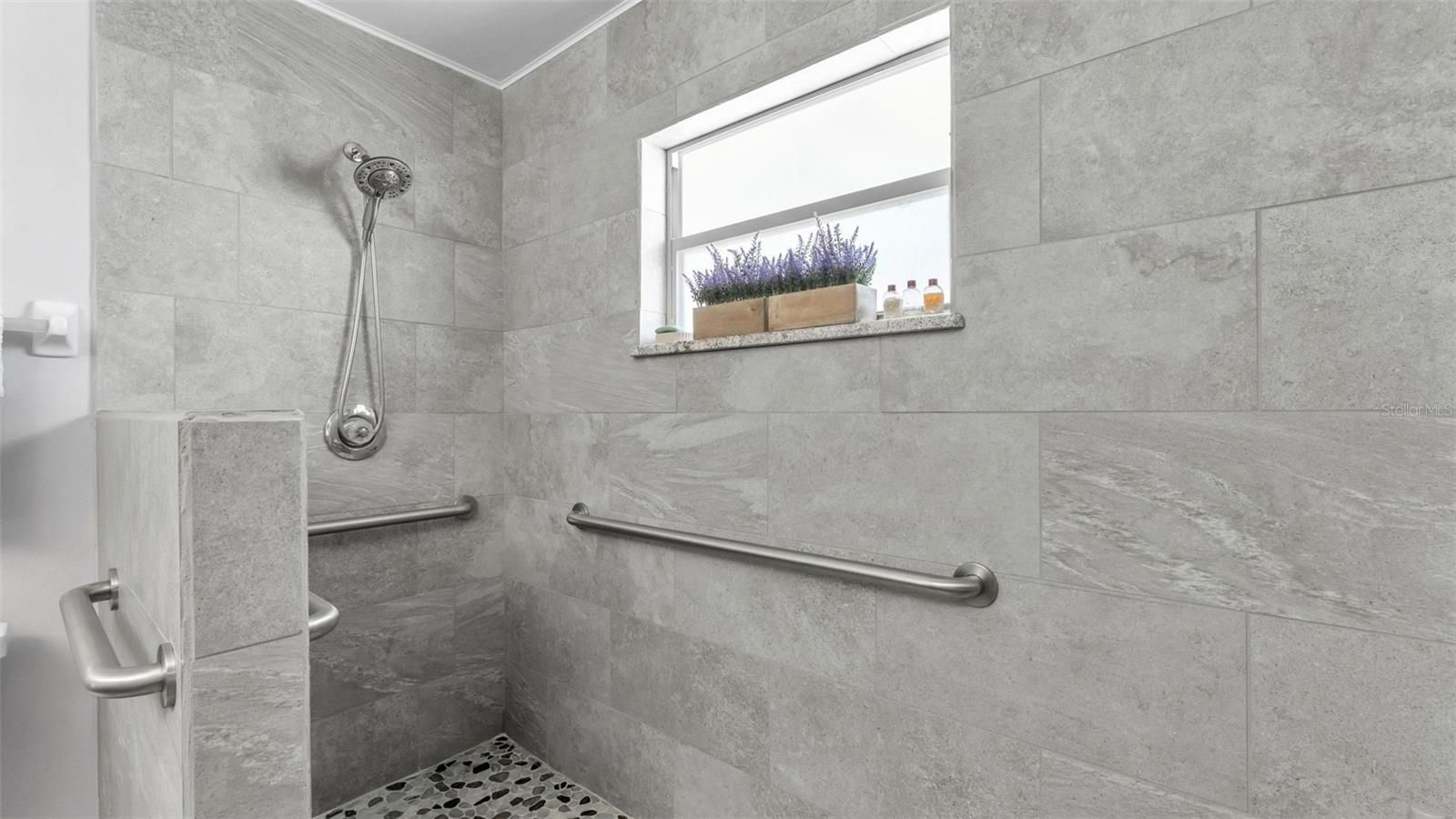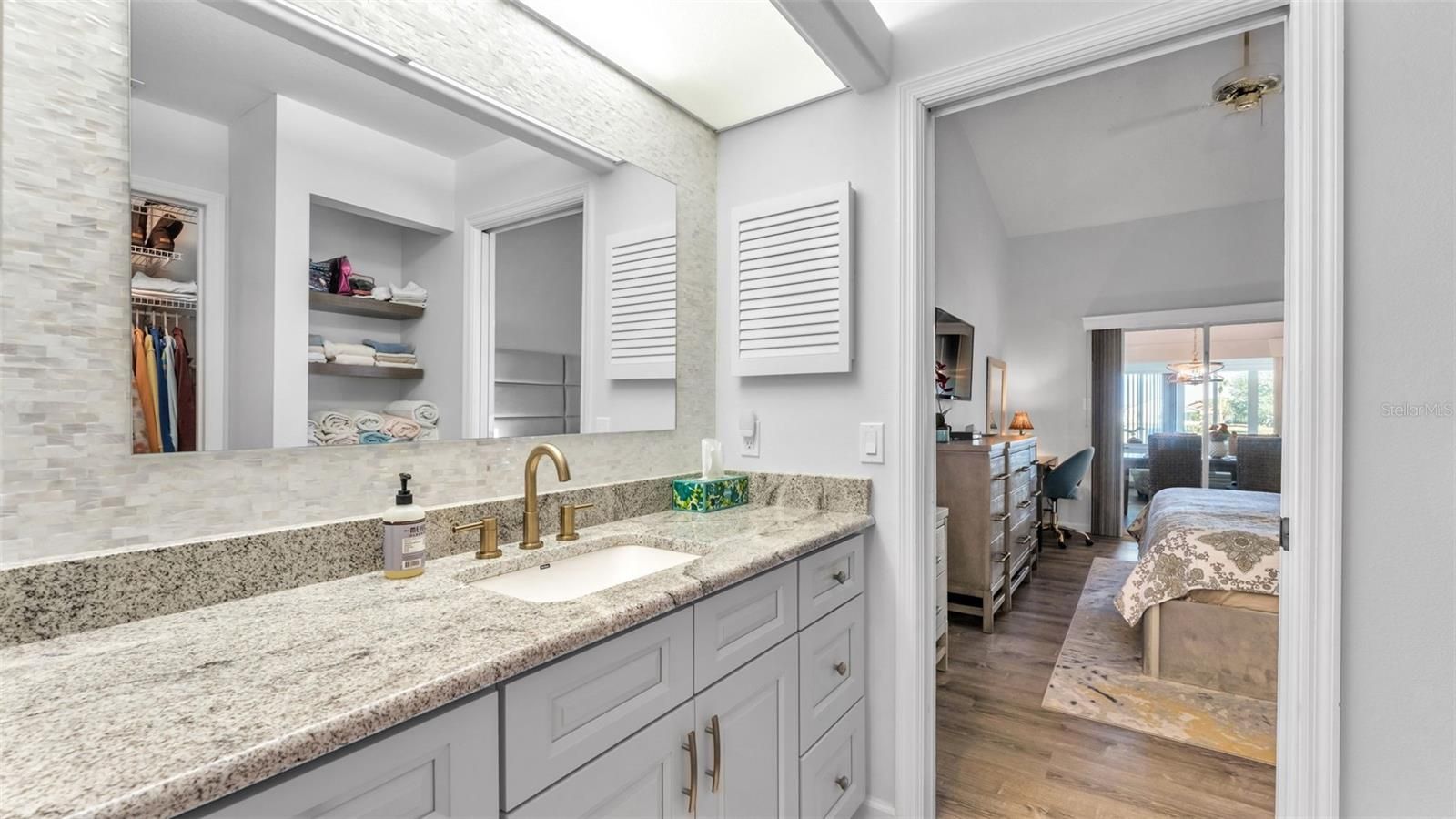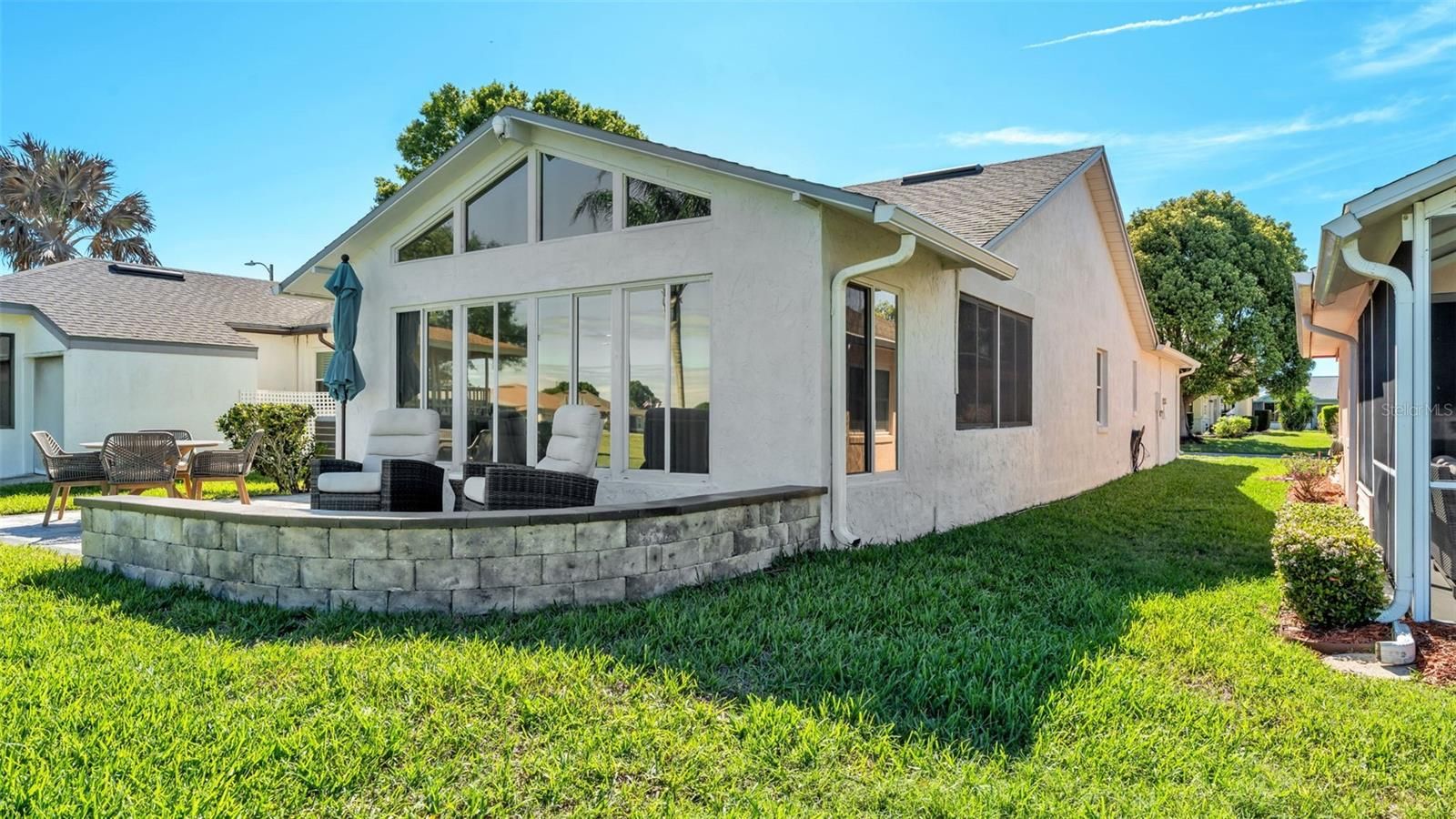 Sandpiper Golf & Country Club. Located directly on the golf course in the highly sought-after 55+ community. This beautiful, recently updated 2-bedroom, 2-bath home offers 1,484 square feet of stylish living space, NEW ROOF 2023, low HOA fees, and a lifestyle of comfort and convenience. Featuring luxury vinyl flooring throughout and a bright, open floor plan, the home is filled with natural light from enormous windows in the dining area and Florida sunroom, where soaring ceilings create an airy, inviting space, further enhanced by elegant granite window sills. The modern kitchen showcases high-end LG stainless steel appliances, farm sink, granite countertops, a stylish matching backsplash, soft-close cabinetry, and a charming island with drawers, cubbies and a built in microwave. Granite countertops continue into both bathrooms, adding a cohesive, upscale touch throughout the home. A contemporary chandelier enhances the dining space, while sliding doors with a decorative barn door add character between the dining area and primary suite. Both bedrooms include ensuite bathrooms with walk-in showers, tiled backsplashes, built-in benches, and thoughtful upgrades; the primary bath also features a rain shower head, built-in shelving, and the second bath includes grab bars for added accessibility. Additional highlights include ceiling fans throughout, an attached garage with extra space, ample cabinetry, shelving, and laundry. Outside, the property showcases extensive coordinated concrete paver hardscaping across the driveway, front walkways, and rear patio, complemented by a low stone garden wall and a patterned paver patio overlooking the course. A charming front sitting area is shaded by a dome awning, perfect for relaxing outdoors. The living room at the front of the home provides additional flexible space, and all furniture, as well as the golf cart, are negotiable. Residents enjoy access to a clubhouse, fitness center, community pools, tennis, pickleball, and shuffleboard courts, with HOA fees including cable and internet. Ideally situated in Lakeland, just under six miles from downtown and with easy access to I-4 for travel to Tampa and Orlando, this home combines modern style with an unbeatable location.