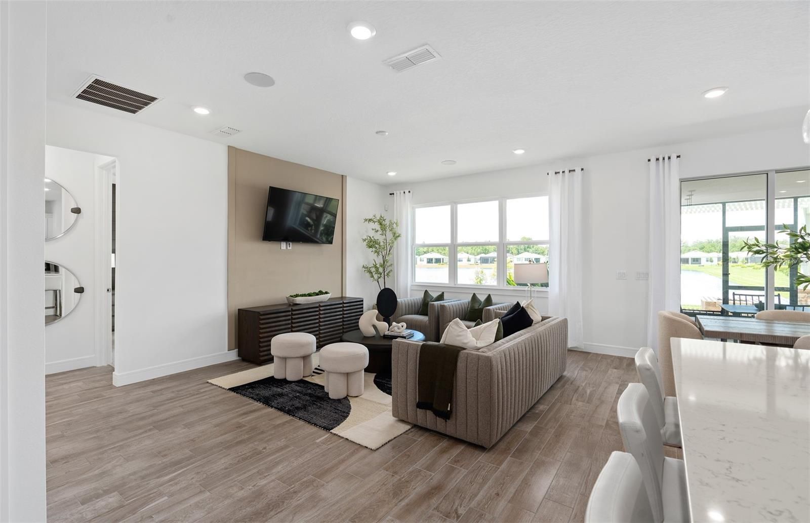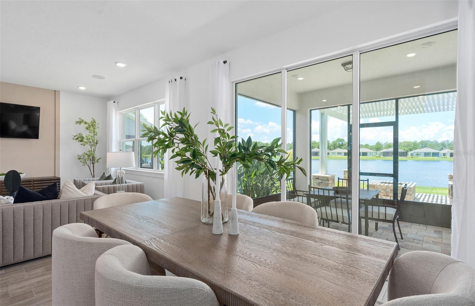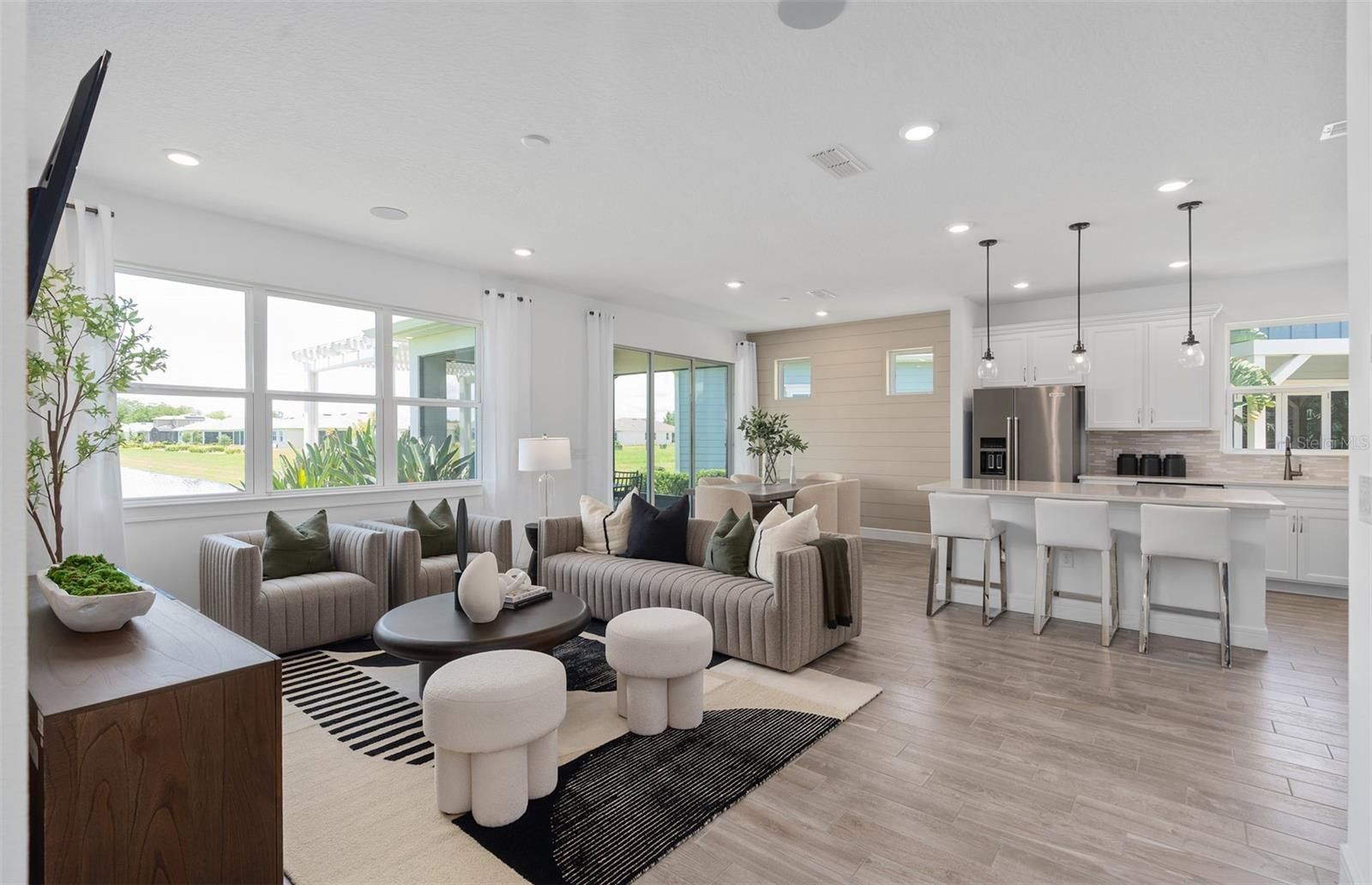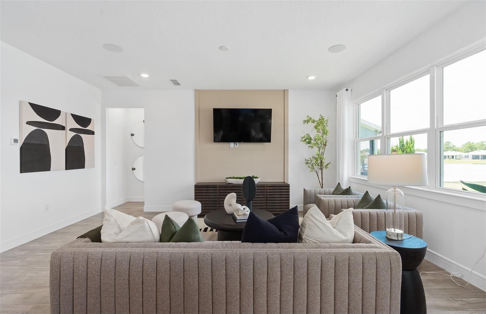 Under Construction. Del Webb Sunbridge is a gated 55+ active adult natural gas community offering new construction single family and villa homes with a low-maintenance lifestyle – and a Central Florida location in the center of it all. Del Webb Sunbridge offers an abundance of resort-style amenities with social events and activities centered in the 27,000-square foot clubhouse and planned by a full-time Lifestyle Director. With a zero-entry pool with lap lanes, resistance pool, poolside hammocks, and heated spa, sports courts, a movement studio, walking trails and more. Meet new friends at a resident club, take a painting class at one of the many art studios, attend a concert or show at the amphitheater, grab a bite at the on-site tavern & grille, or chat at the fire pits and grille pavilion. Get spoiled at Del Webb Sunbridge - after all, this is your time! Your home's exterior and yard maintenance are included, and fiber network provides up to gigabit internet speed. Del Webb Sunbridge’s resort amenities, sports courts, and Lifestyle Director with nearby Lake Nona truly make this the ideal neighborhood and a perfect location to call home. Welcome to the Prosperity Model Home by Del Webb, where convenience and luxury meet in perfect harmony. Originally a Model Home, this stunning one-story home offers 2 spacious bedrooms, an open flex room, and 2 beautifully appointed bathrooms situated on a homesite with a beautiful water view. The heart of the home is the brand-new kitchen, showcasing elegant 42” soft-close cabinetry paired with Quartz countertops. Enjoy the functionality and beauty of upgraded KitchenAid stainless steel appliances, including a refrigerator and a natural gas range, all highlighted by stylish tile backsplash, a single-bowl granite sink, upgraded faucet, and pendant lighting for that touch of sophistication. The open-concept design seamlessly flows into the gathering room, making this space perfect for both cooking and socializing. The spacious kitchen island offers the perfect setting for everything from everyday meal prep to casual dining with family and friends. Just beyond, the screened-in, covered lanai invites seamless indoor-outdoor living, ideal for enjoying Florida's beautiful weather year-round. The Prosperity Model Home truly shines when it comes to outdoor entertaining, featuring a pavered lanai complete with a charming gazebo and cozy fire pit, all overlooking a tranquil pond located just beyond the rear property line. As we travel back inside, the private owner's suite, located at the rear of the home for ultimate privacy, offers a serene escape with an en suite bathroom featuring quartz-topped dual vanity sinks, and a frameless glass-enclosed shower with a built-in bench. At the front of the home, the spare bedroom, bathroom, and versatile open flex room ensure that everyone has their own space. Wood-look tile flooring spans the home, except for in the bedrooms where you’ll find plush, stain-resistant Shaw Carpet. The laundry room itself offers both style and convenience with a brand-new Whirlpool washer and dryer adding a touch of elegance to everyday tasks. From the brushed nickel hardware finishes to the tall 8' interior doors, no detail of this former model home is overlooked. Comfort height toilets, epoxy finish on the garage floor, a custom built-in drop zone, and rain gutters add both style and ease to daily living. Don't miss out on your chance to own one of the best homes in the neighborhood! Schedule a tour today!