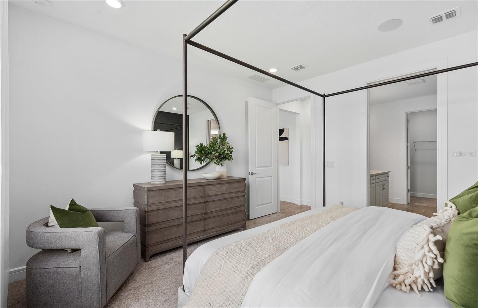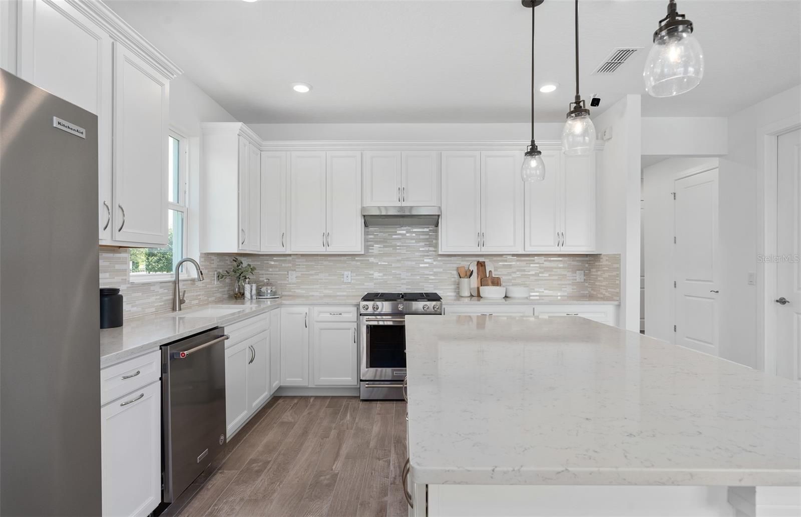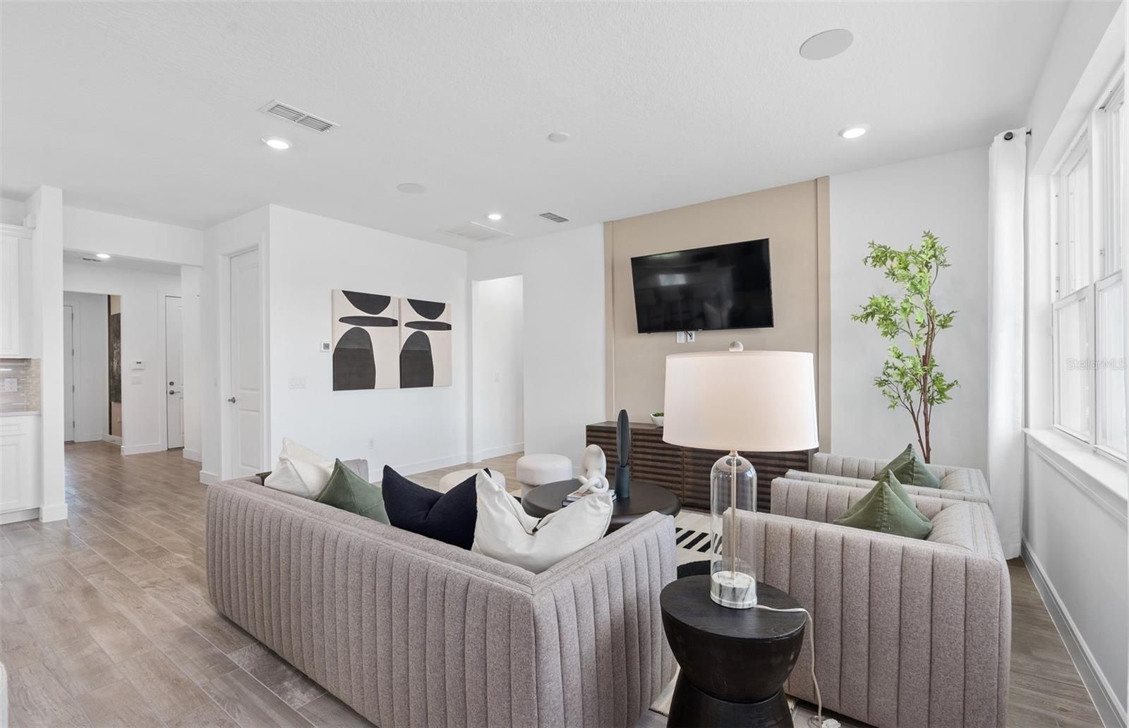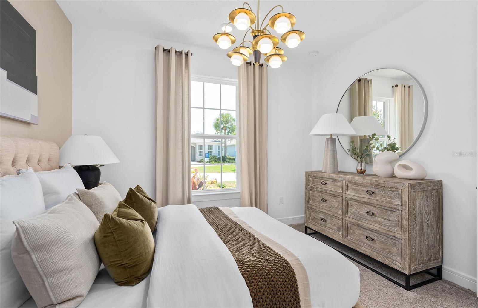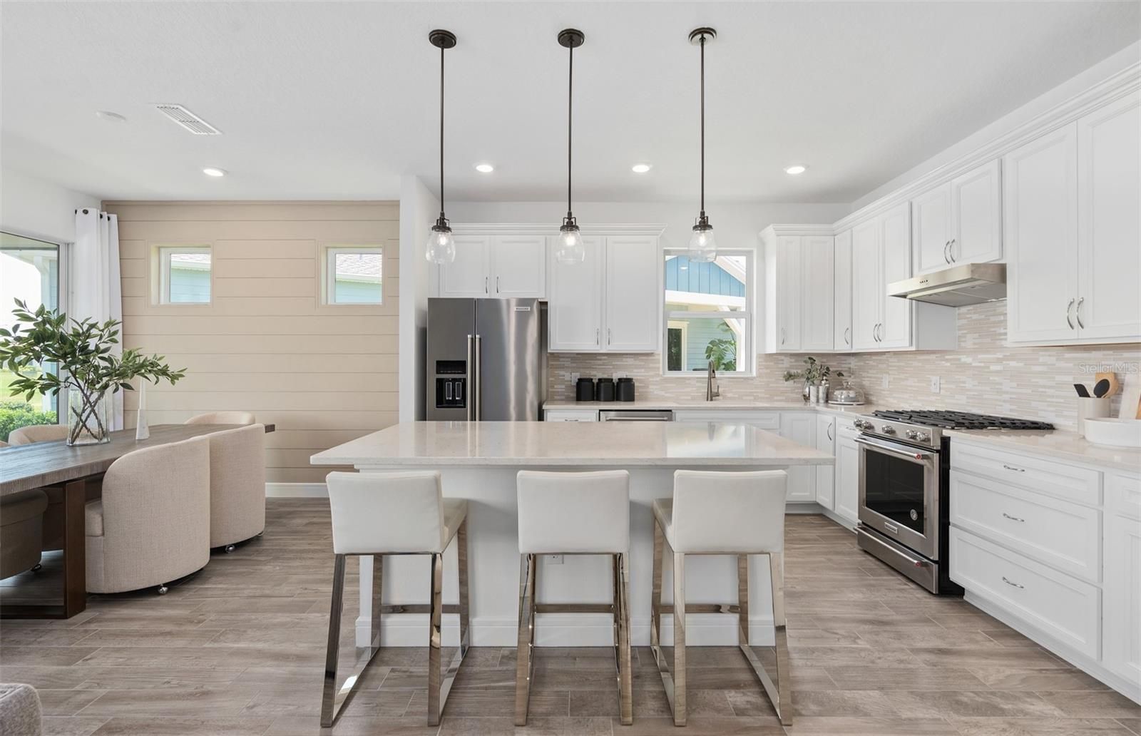 Under Construction. Del Webb Sunbridge is a gated 55+ active adult natural gas community offering new construction single family and villa homes with a low-maintenance lifestyle – and a Central Florida location in the center of it all. Del Webb Sunbridge offers an abundance of resort-style amenities with social events and activities centered in the 27,000-square foot clubhouse and planned by a full-time Lifestyle Director. With a zero-entry pool with lap lanes, resistance pool, poolside hammocks, and heated spa, sports courts, a movement studio, walking trails and more. Meet new friends at a resident club, take a painting class at one of the many art studios, attend a concert or show at the amphitheater, grab a bite at the on-site tavern & grille, or chat at the fire pits and grille pavilion. Get spoiled at Del Webb Sunbridge - after all, this is your time! Your home's exterior and yard maintenance are included, and fiber network provides up to gigabit internet speed. Del Webb Sunbridge’s resort amenities, sports courts, and Lifestyle Director with nearby Lake Nona truly make this the ideal neighborhood and a perfect location to call home. Welcome to the Prosperity Model Home by Del Webb, where convenience and luxury meet in perfect harmony. Originally a Model Home, this stunning one-story home offers 2 spacious bedrooms, an open flex room, and 2 beautifully appointed bathrooms situated on a homesite with a beautiful water view. The heart of the home is the brand-new kitchen, showcasing elegant 42” soft-close cabinetry paired with Quartz countertops. Enjoy the functionality and beauty of upgraded KitchenAid stainless steel appliances, including a refrigerator and a natural gas range, all highlighted by stylish tile backsplash, a single-bowl granite sink, upgraded faucet, and pendant lighting for that touch of sophistication. The open-concept design seamlessly flows into the gathering room, making this space perfect for both cooking and socializing. The spacious kitchen island offers the perfect setting for everything from everyday meal prep to casual dining with family and friends. Just beyond, the screened-in, covered lanai invites seamless indoor-outdoor living, ideal for enjoying Florida's beautiful weather year-round. The Prosperity Model Home truly shines when it comes to outdoor entertaining, featuring a pavered lanai complete with a charming gazebo and cozy fire pit, all overlooking a tranquil pond located just beyond the rear property line. As we travel back inside, the private owner's suite, located at the rear of the home for ultimate privacy, offers a serene escape with an en suite bathroom featuring quartz-topped dual vanity sinks, and a frameless glass-enclosed shower with a built-in bench. At the front of the home, the spare bedroom, bathroom, and versatile open flex room ensure that everyone has their own space. Wood-look tile flooring spans the home, except for in the bedrooms where you’ll find plush, stain-resistant Shaw Carpet. The laundry room itself offers both style and convenience with a brand-new Whirlpool washer and dryer adding a touch of elegance to everyday tasks. From the brushed nickel hardware finishes to the tall 8' interior doors, no detail of this former model home is overlooked. Comfort height toilets, epoxy finish on the garage floor, a custom built-in drop zone, and rain gutters add both style and ease to daily living. Don't miss out on your chance to own one of the best homes in the neighborhood! Schedule a tour today!