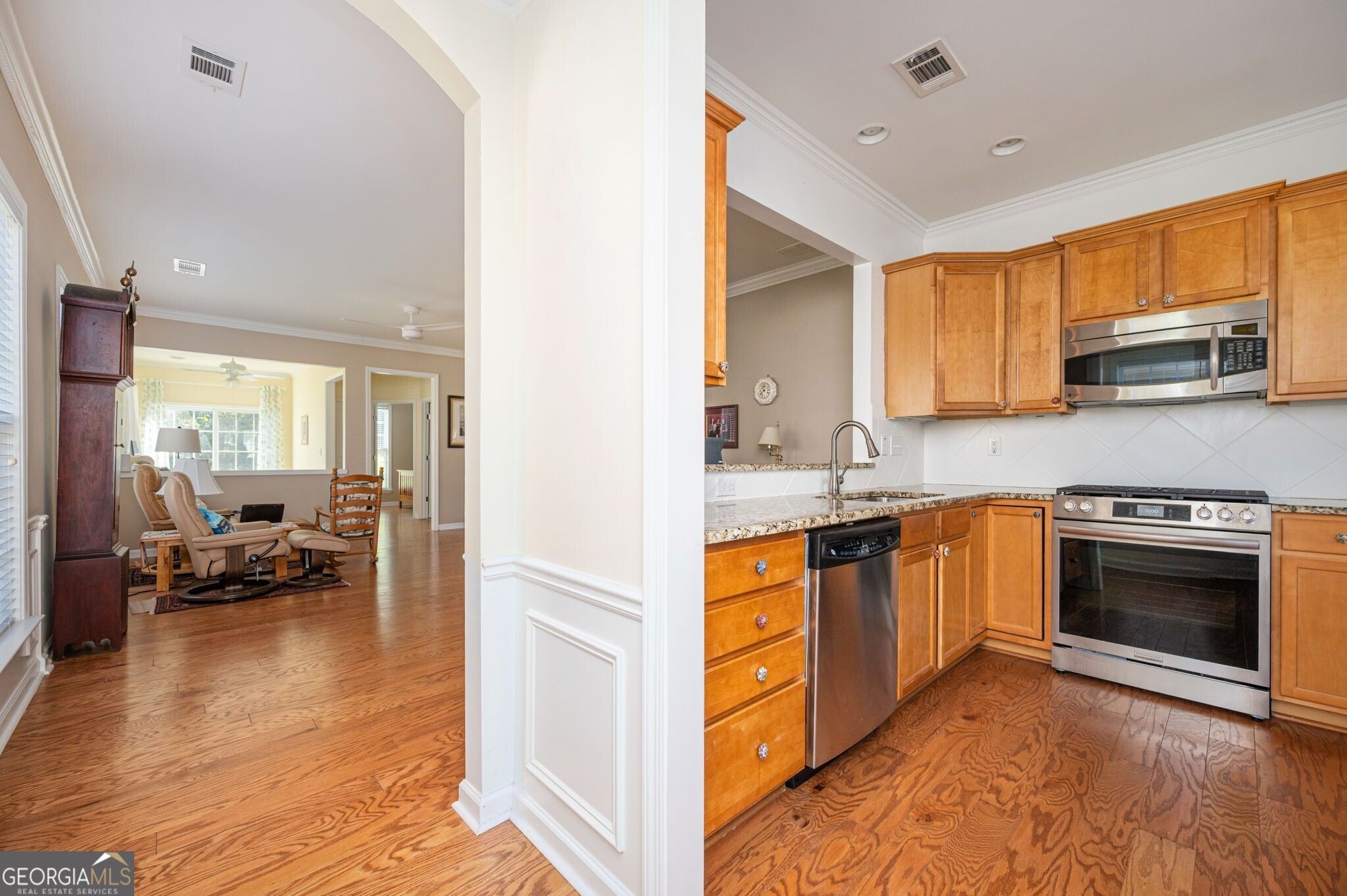 - Dishwasher, Disposal, Dryer, Gas Water Heater, Microwave, Refrigerator, Stainless Steel Appliance(s), Washer