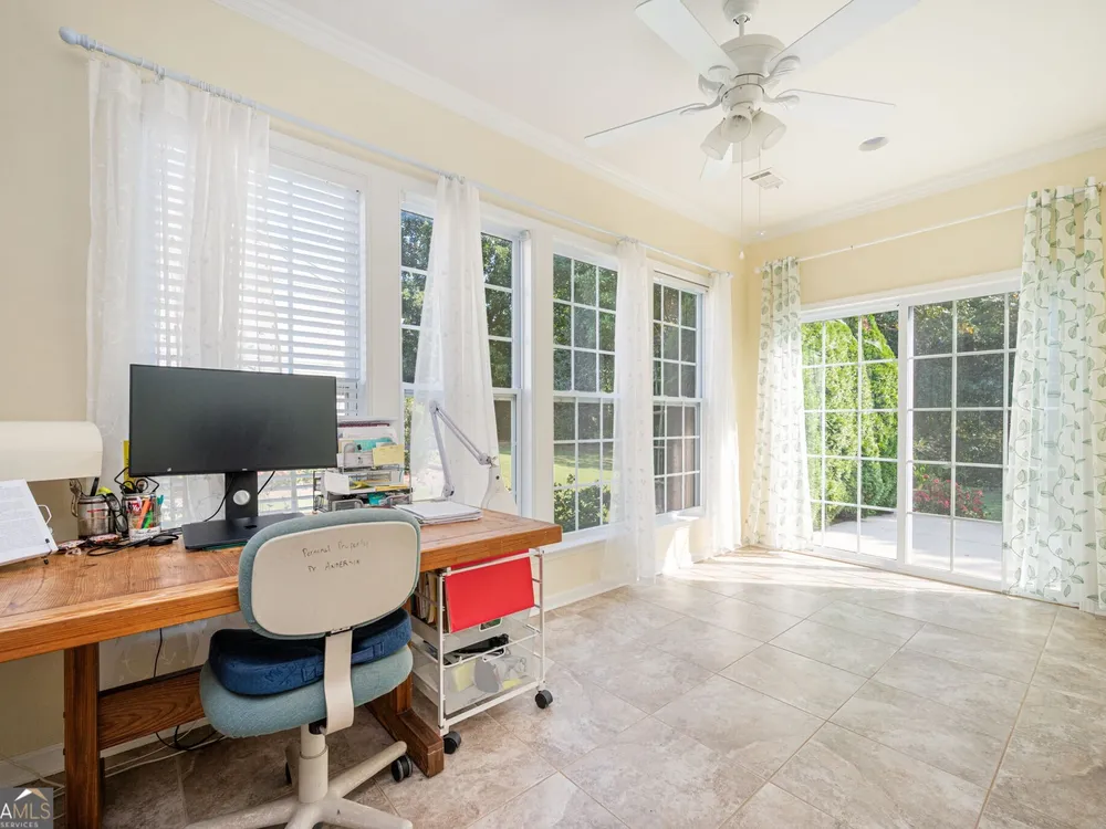 - Double Vanity, High Ceilings, Main Level Primary, Split Bedrooms, Tile Bath, Tray Ceiling(s), Walk-In Closet(s), Dual Pane Window(s), Family Room, Entrance Foyer, Home Office, Sunroom