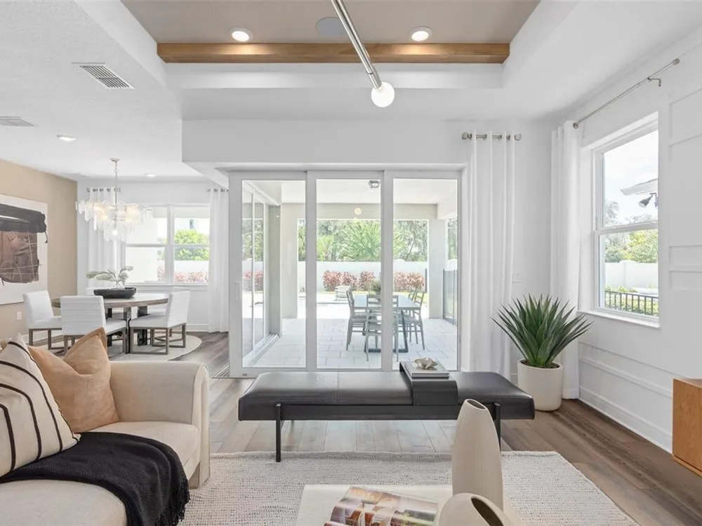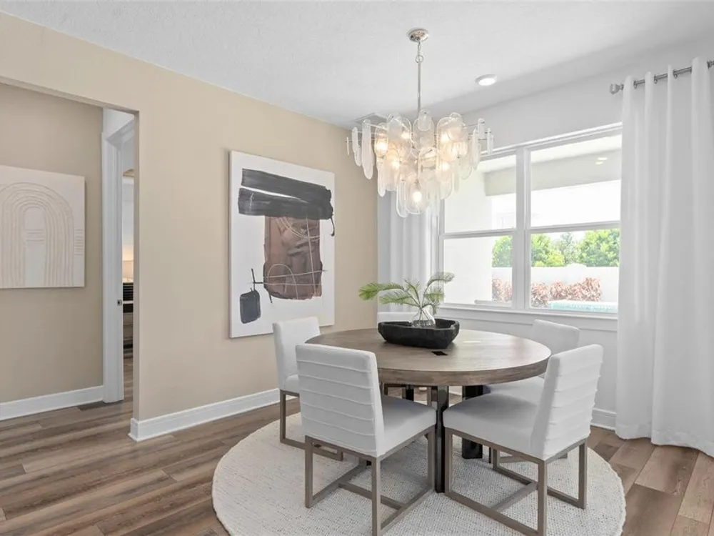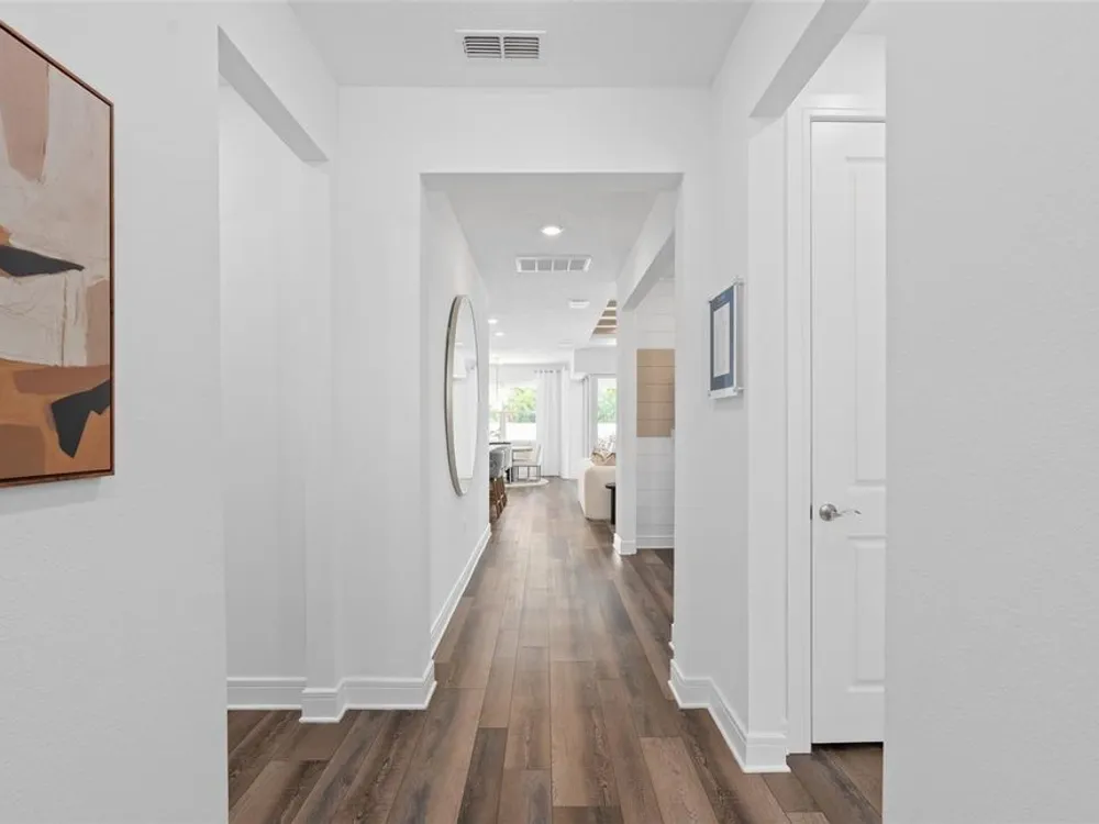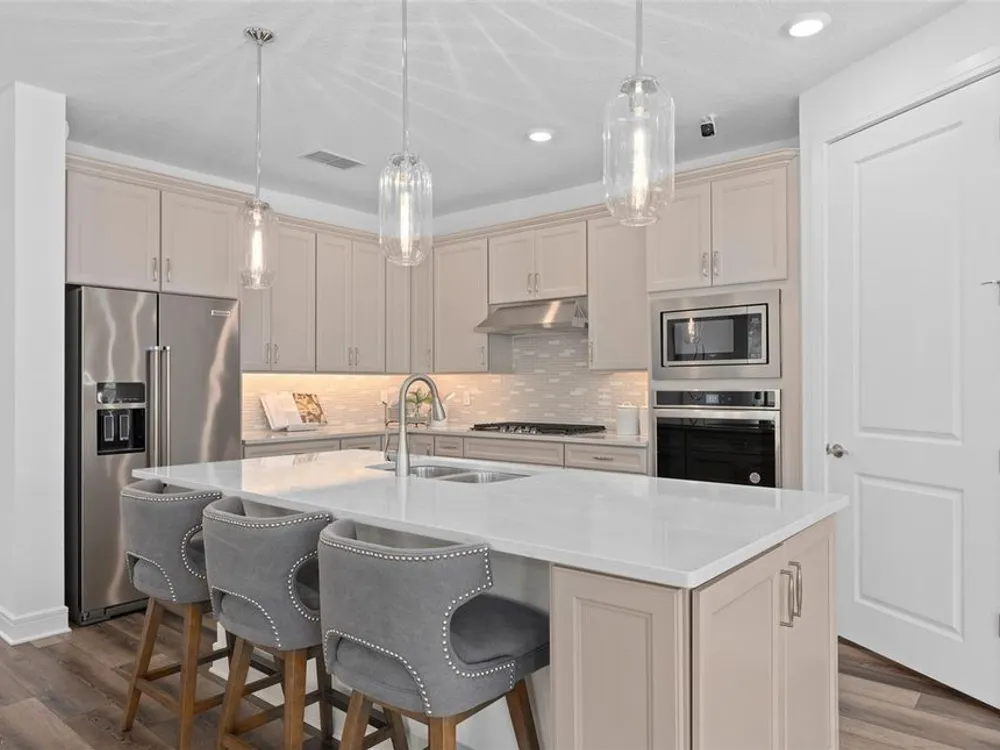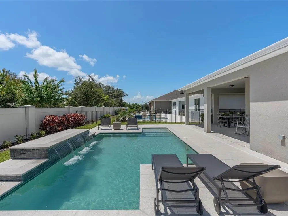Under Construction. Del Webb Sunbridge is a gated 55+ active adult natural gas community offering new construction single family and villa homes with a low-maintenance lifestyle – and a Central Florida location in the center of it all. Del Webb Sunbridge offers an abundance of resort-style amenities with social events and activities centered in the 27,000-square foot clubhouse and planned by a full-time Lifestyle Director. With a zero-entry pool with lap lanes, resistance pool, poolside hammocks, and heated spa, sports courts, a movement studio, walking trails and more. Meet new friends at a resident club, take a painting class at one of the many art studios, attend a concert or show at the amphitheater, grab a bite at the on-site tavern & grille, or chat at the fire pits and grille pavilion. Get spoiled at Del Webb Sunbridge - after all, this is your time! Your home's exterior and yard maintenance are included, and fiber network provides up to gigabit internet speed. Del Webb Sunbridge’s resort amenities, sports courts, and Lifestyle Director with nearby Lake Nona truly make this the ideal neighborhood and a perfect location to call home. Step into the Mystique Model Home by Pulte! Originally a model home, this stunning one-story 3 bedroom, 2 bathroom, open flex room, and 2-car garage masterpiece boasts a pool situated on a homesite with no rear neighbors, a privacy wall at the rear of the home, and black aluminum fencing–offering both privacy and beauty. The open-concept layout seamlessly connects the gourmet kitchen, café, and gathering room, creating an airy atmosphere. The many windows bathe the entire space in natural light, while the tray ceiling in the gathering room adds an extra touch of sophistication, elevating the overall feeling of openness. The gourmet kitchen is a true focal point, featuring Whirlpool appliances, including a natural gas cooktop and French door refrigerator. Soft-close cabinetry, a range hood, mosaic tile backsplash, quartz countertops, and under-cabinet lighting add the perfect blend of style and convenience. The kitchen flows effortlessly into the café and gathering room, where a zero-corner sliding glass door leads to the extended covered lanai and pool, making this home ideal for seamless indoor-outdoor living. Retreat to the luxurious owner’s suite, a serene sanctuary with a spacious walk-in closet and a spa-like en suite bathroom. Dual vanity sinks, a walk-in shower, an enclosed toilet, and a linen closet complete the tranquil space. The two additional spare bedrooms and bathroom, along with the open flex room, provide ample space for family and guests. The upgraded laundry room with built-in cabinetry, quartz countertops, utility sink, and Whirlpool washer and dryer make daily tasks a breeze. Every detail of this home has been carefully curated, from the Shaw wood-look luxury vinyl plank flooring throughout to the tile flooring in the bathrooms and laundry. Designer-curated finishes elevate every corner of this home, including brushed nickel hardware and plumbing fixtures, 8’ interior doors, comfort-height toilets, and epoxy finish on the garage floor. With its stunning design and thoughtful touches, the Mystique home provides the perfect blend of luxury and functionality for today’s lifestyle. Don't miss out on your chance to own one of the best homes in the neighborhood! Schedule a tour today!