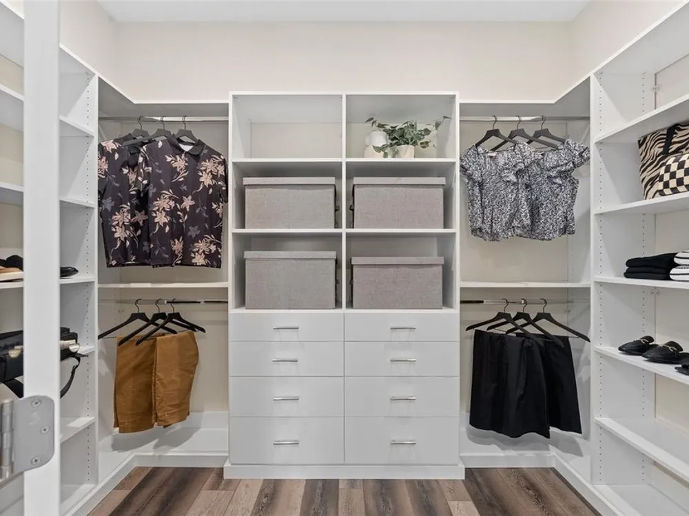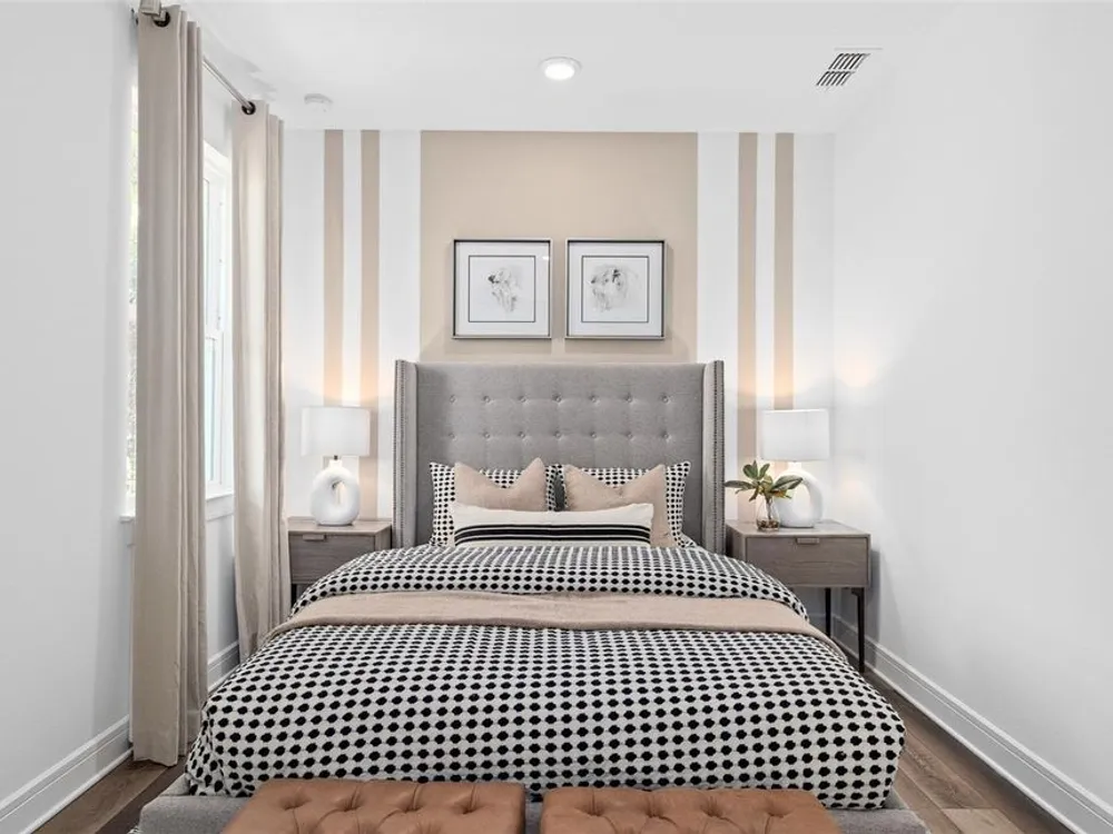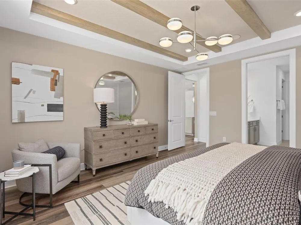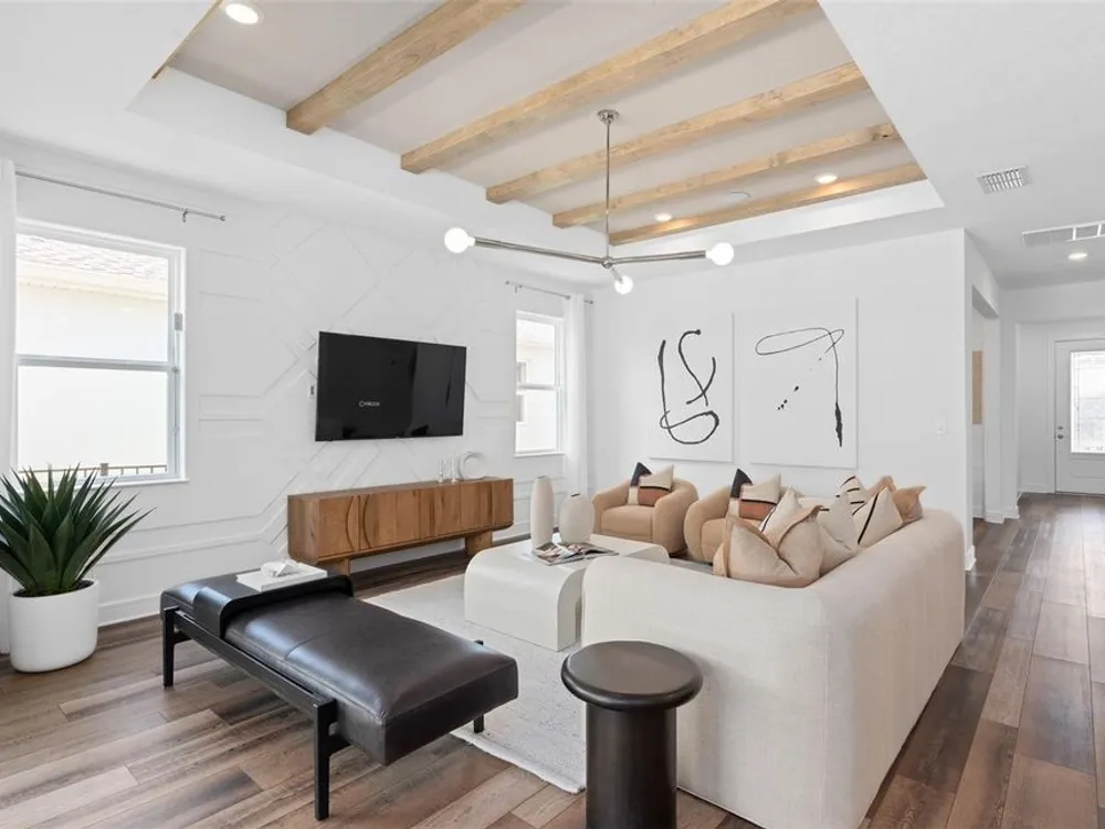 - Eat-in Kitchen, In-Wall Pest Control, Kitchen/Family Room Combo, Living/Dining Room, Open Floorplan, Main Level Primary, Split Bedrooms, Stone Counters, Thermostat, Walk-In Closet(s)