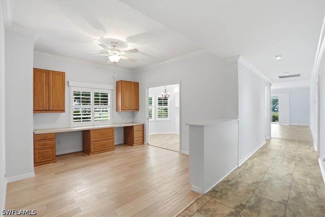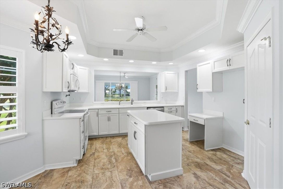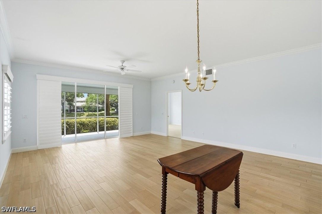 Welcome to this spacious first-floor residence in the highly desirable Vineyards Country Club. This freshly painted home offers 2 bedrooms plus a versatile den, 2 bathrooms, and a thoughtfully designed layout filled with natural light and generous living spaces. The expansive kitchen is a true centerpiece, featuring a large center island, abundant cabinetry, and ample room for both casual dining and entertaining. Plantation shutters throughout add timeless elegance, while the screened-in patio creates a peaceful outdoor retreat—perfect for enjoying your morning coffee or unwinding in the evening with serene lake views. For added peace of mind, the patio is equipped with hurricane shutters. While the home is move-in ready, it also presents an excellent opportunity for a buyer to personalize and add value in one of North Naples’ most sought-after communities. Residents of Clubside Reserve enjoy access to a beautifully updated clubhouse, pool, spa, and a scenic walking path with direct access to Vineyards Country Club. Ideally located near Vineyards Community Park, and just minutes from Southwest Florida’s pristine beaches, fine dining, and premier shopping destinations. The Vineyards community has also seen significant recent improvements, including newly repaved streets, replacement of all roofing with hurricane-rated tile, and freshly sealed and painted buildings—providing both enhanced curb appeal and long-term peace of mind. Even more impressive, there have been no owner assessments in over 30 years, and the association continues to maintain strong, healthy reserves. Optional memberships at Vineyards Country Club offer an exceptional lifestyle with 36 holes of championship golf, 12 Har-Tru tennis courts, 8 pickleball courts, bocce, and a resort-style pool and spa. The state-of-the-art wellness center features a fully equipped fitness facility, café, massage and salon services, and a saltwater lap pool—delivering a true resort-style living experience.