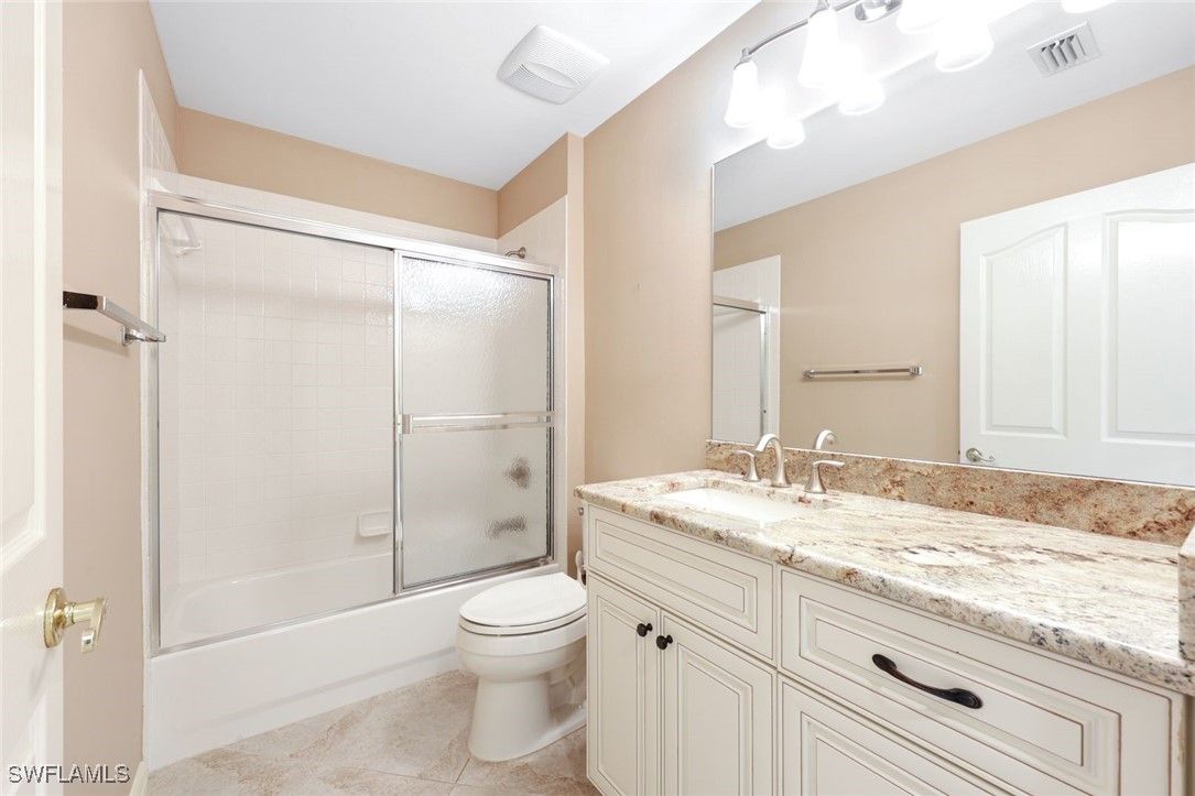 This light, bright, and spacious condominium is situated in the highly sought-after Clubside Reserve community within the Vineyards. Conveniently located within walking distance to the Vineyards Country Club, this home offers both comfort and accessibility. The residence features three bedrooms, three bathrooms, and a versatile den adjacent to the kitchen. The primary master bathroom has been thoughtfully remodeled, boasting extensive cabinetry, elegant quartz countertops, dual sinks, and a generously sized seamless glass shower for a touch of luxury. The kitchen is equipped with attractive granite counters, a central island, a cozy breakfast area, and a spacious walk-in pantry. All living areas, except the bedrooms, are adorned with neutral tiled flooring, providing a modern and cohesive look. Both guest bathrooms have also been updated with new cabinets and counters, ensuring a fresh and contemporary feel throughout. The screened lanai offers picturesque lake views, creating a tranquil setting for relaxation. For added peace of mind, electric shutters are installed. Enhancing the aesthetic appeal, plantation shutters are featured throughout the home, contributing to the overall charm and elegance of this exceptional property. Clubside Reserve enjoys a convenient location in Naples, placing residents close to a variety of local and regional shops, entertainment venues, and beautiful beaches. This prime setting ensures that daily necessities and leisure activities are always within easy reach, enhancing the overall lifestyle offered by the community.