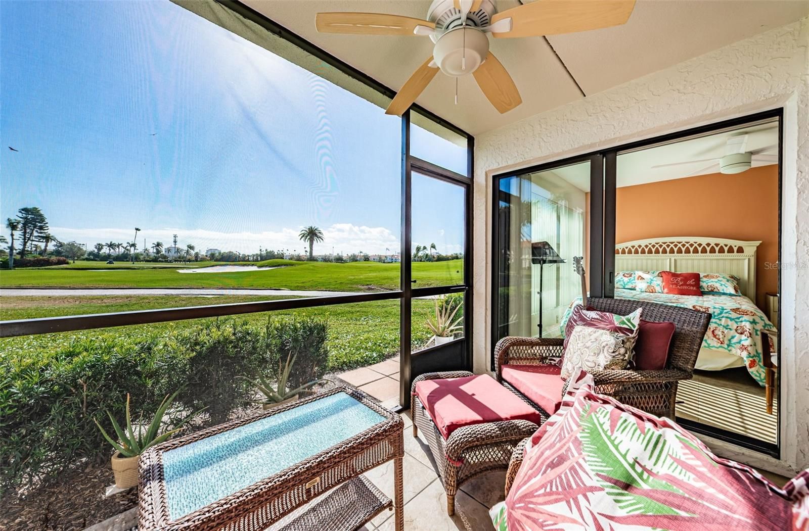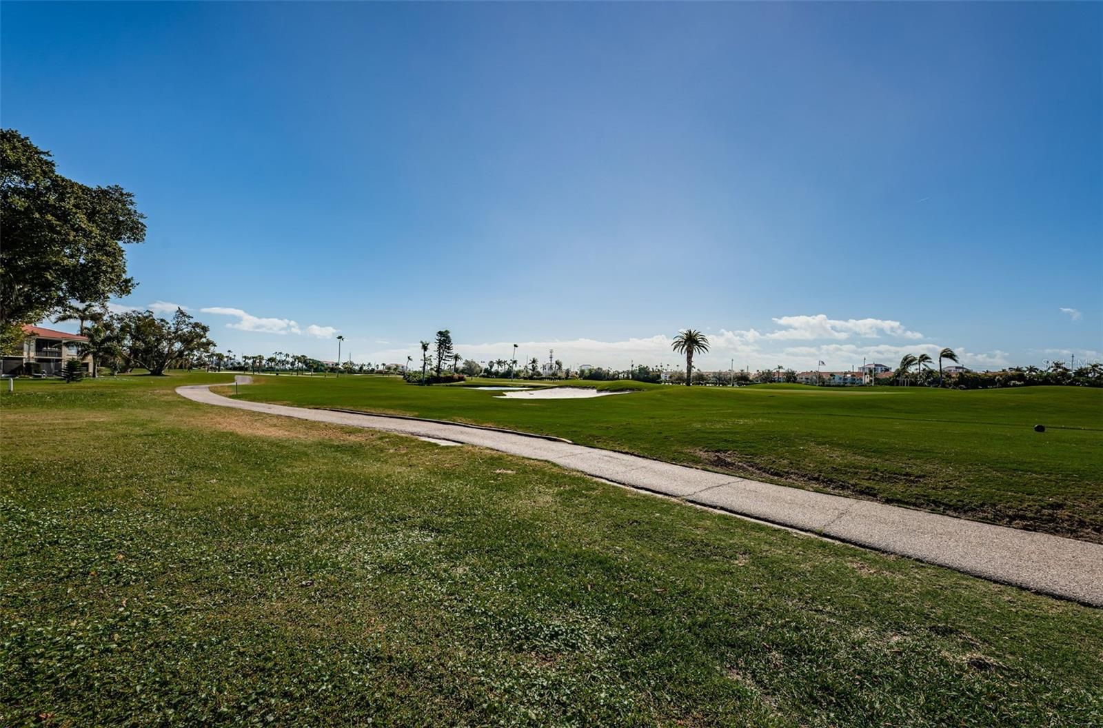 Welcome to this beautifully maintained turnkey 2-bedroom, 2-bathroom condo offering serene golf course views and effortless living. Step inside to discover an open and inviting floor plan highlighted by classic ceramic tile flooring throughout the main living areas. Natural light fills the space, creating a warm and welcoming atmosphere perfect for both relaxing and entertaining. The kitchen is comprised of granite countertops, sleek stainless steel appliances, and ample cabinetry, providing both functionality and modern appeal. Whether preparing a quiet dinner at home or hosting guests, this kitchen is ready to impress. The spacious primary bedroom offers peaceful views and a well-appointed en-suite bathroom featuring a convenient step-in shower. The second bedroom provides comfort and flexibility for guests, a home office, or additional living space. The secondary bathroom features a shower/tub combo and a washer-dryer, making laundry simple and convenient. Enjoy your morning coffee or unwind in the evening while taking in the tranquil golf course views from your private patio. Perfect as a full-time residence, seasonal retreat, or investment opportunity, this condo combines comfort, style, and low-maintenance living in a picturesque setting. Includes assigned under building parking #22 just steps from your the front door. Take advantage of a golf, tennis, yacht or social membership offered at Isla Del Sol Yacht & Country Club. All of this, and within minutes of the award-winning beaches of Fort Desoto State Park, and top ranked St Pete Beach. Or with easy access to I275, you're only 15 minutes to the vibrant activity of the nightlife, restaurants and shopping in downtown St Petersburg.