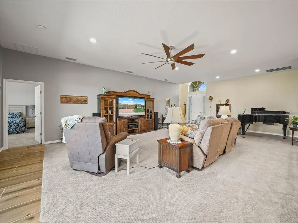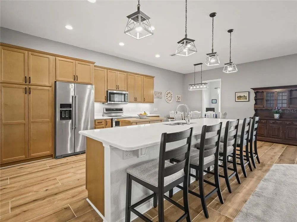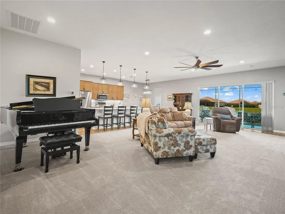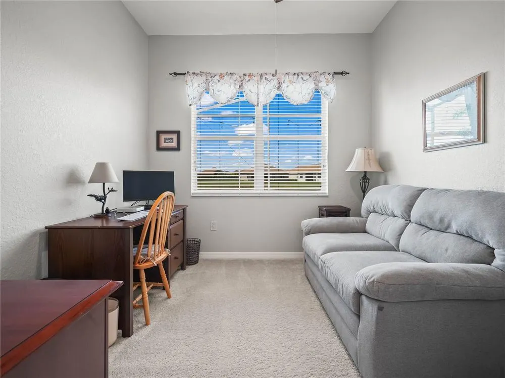 Welcome to this modern residence at 6212 Pinehurst Loop Winter Haven, Fl. 33884, designed with 3 Bedrooms and 2 full bathrooms PLUS an additional room that could be used as a Den/Office. This delightful Sebastian home, with screened entry was BUILT in 2022 and features a spacious living area with abundant natural light, an upgraded kitchen paired with a Large Island (Great for additional seating and entertaining), Upgraded Lighting, Stainless Steel appliances and Silestone countertop. The inviting living and dining areas blend seamlessly together with newly installed carpet. The open-concept layout is beautifully enhanced by new tile plank flooring in the kitchen, laundry, guest bathroom/hall, entry and perimeter of the Living Room, offering a sleek and modern feel. Bedroom 1 and Bedroom 2 are located to the right of the front entry and the guest bathroom with comfort height vanity and shower/tub combo is conveniently located between Bedroom 1 and 2. The guest bath has a glass block above the shower/tub combo. The primary suite with newly installed carpet offers a private retreat on the back of the home, complete with a generously sized bathroom, walk-in closet, separate comfort height vanities, and an oversized shower. Step outside and enjoy the lanai, perfect for entertaining and equipped with an extended birdcage. The flooring on the lanai has been beautifully painted and it adds a touch of class to the space. The laundry room is spacious and is accessible from the garage and kitchen. The garage floor has an epoxy coating. This home blends style and functionality, making it an exceptional choice! The exterior of the home has been well maintained with beautiful landscaped flower beds and the double car garage and the separate golf cart entry is a bonus. Don't miss the opportunity to explore this wonderful property! Lake Ashton is a Florida Retirement Community that offers a Florida Retirement Lifestyle with resort style amenities and activities for 55+ in Florida. The main clubhouse offers a movie theater, bowling lanes, grand ballroom, card, craft and billiards, Restaurant (Charm City), outdoor temperature controlled swimming pool, Bocce Courts, tennis courts, 1/2 court basketball, shuffleboard courts and MORE. The Health and Fitness Center has a large indoor temperature controlled pool, fitness center, indoor 1/2 court basketball, indoor racquetball, large multi-purpose room, card, craft, billiards, pickle ball courts and tennis courts. 2 -18 hole golf courses are located in Lake Ashton (memberships are optional). Tour this well maintained home today! You'll be glad you did!