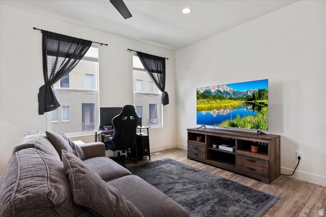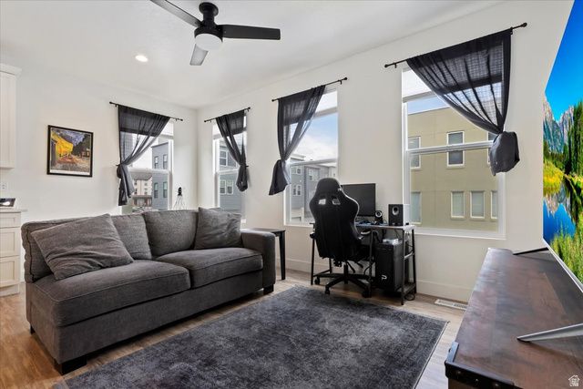 Experience all that the vibrant Daybreak community has to offer-just steps from scenic trails, parks, pools, Oquirrh Lake, paddleboarding, and more. This stylish home features a bright, open-concept kitchen and living area with abundant natural light, beautiful faux wood flooring, and sleek quartz countertops. The extra deep garage offers ample room for a large truck and a motorcycle. Conveniently located with quick access to Mountain View Corridor, Bangerter Highway, shopping, dining, and local amenities. Schedule your showing today and see if this is the perfect fit for you! Daybreak's HOA includes high speed internet, gym/community center membership, free paddleboarding & kayaking, pools, tennis, pickleball, volleyball, basketball, fishing, events galore, Farmer's Markets & live concerts every weekend. Come live like you're on vacation full time!