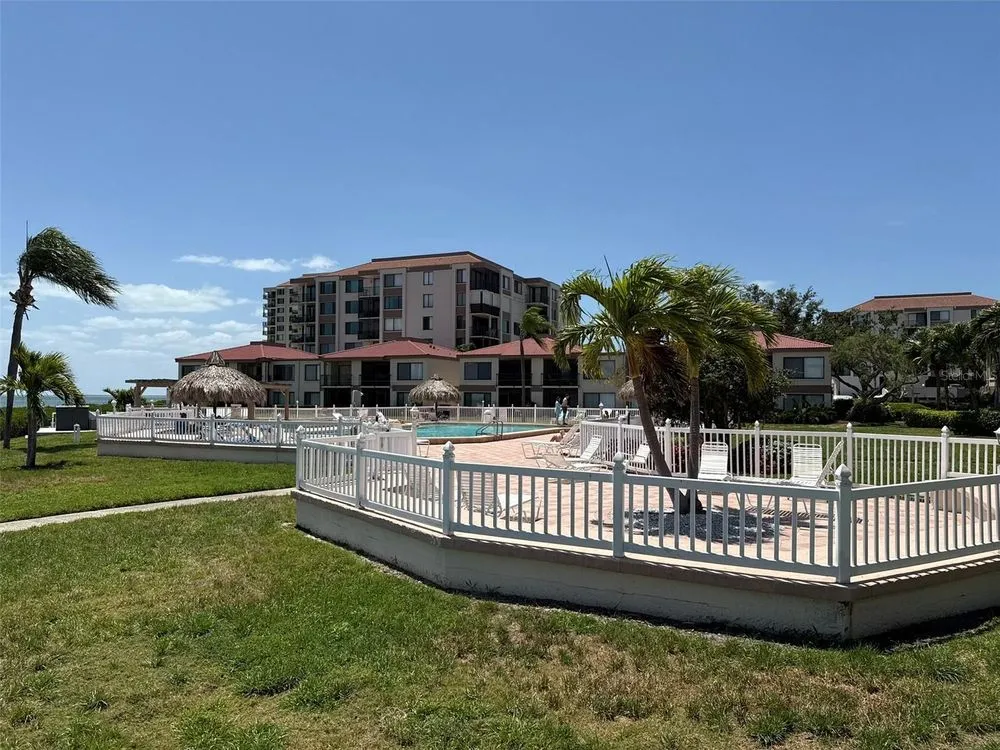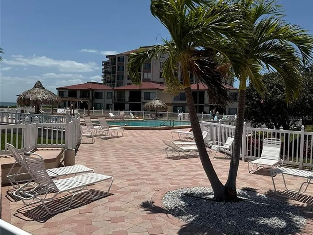 This charming Palma Del Mar gem is move-in ready and fully furnished for full or part time living or investment. Light and bright, it features an updated kitchen with quartz countertops, a spacious dining and living area, and a large patio perfect for relaxing with a breeze. There are also automatic hurricane shutters and sunshades. The primary suite offers a walk-in shower, custom storage, and patio access, while a pull-out sofa and convenient guest bath provide additional accommodations. The active community features a resort-style pool and spa overlooking the bay, Tiki-covered seating, fishing pier, kayak launch, and scenic walking and biking trails that connect you to award-winning beaches, dining, golf, and boating. Residents enjoy a private community center, abundant guest parking, storage for bikes and kayaks, a car wash station, and HOA fees that include water, sewer, high-speed internet, and cable TV. Your ultimate Florida lifestyle starts here — a true island paradise!