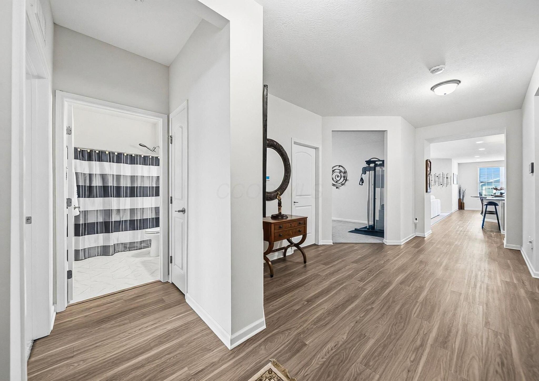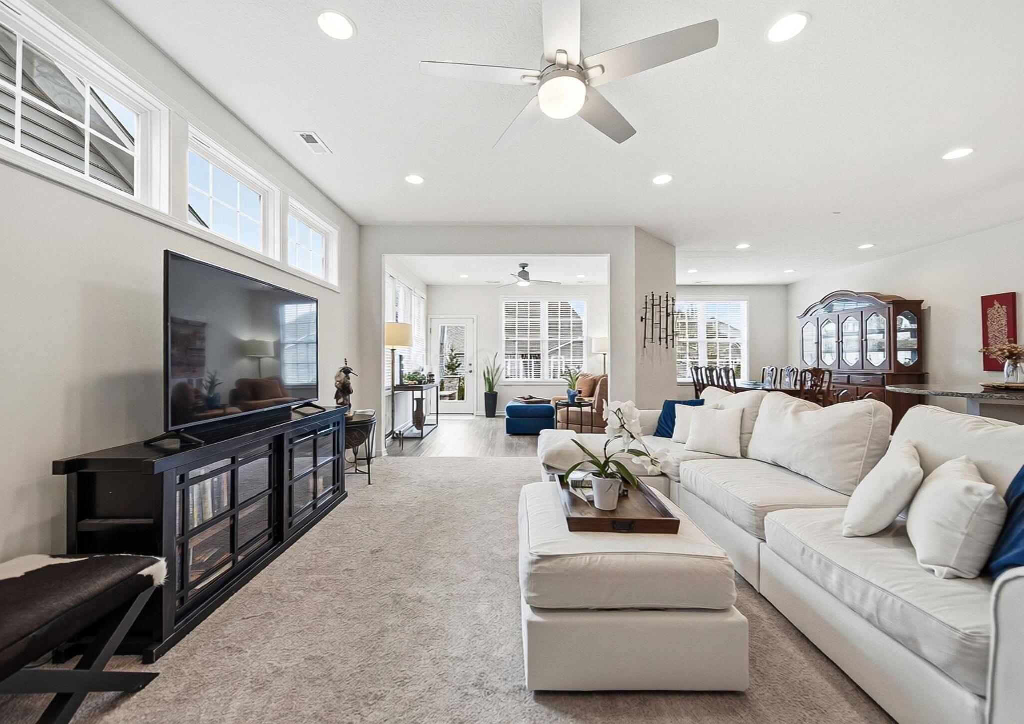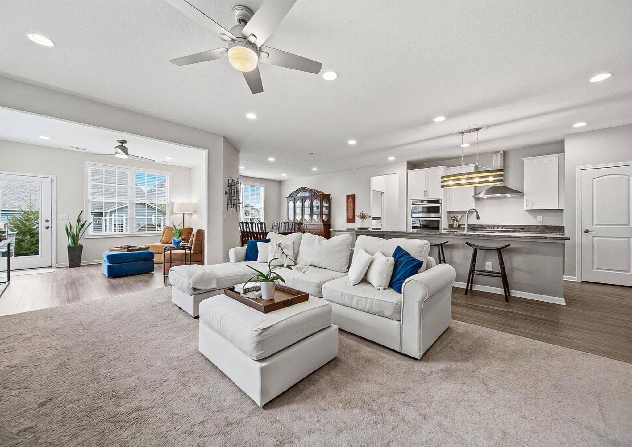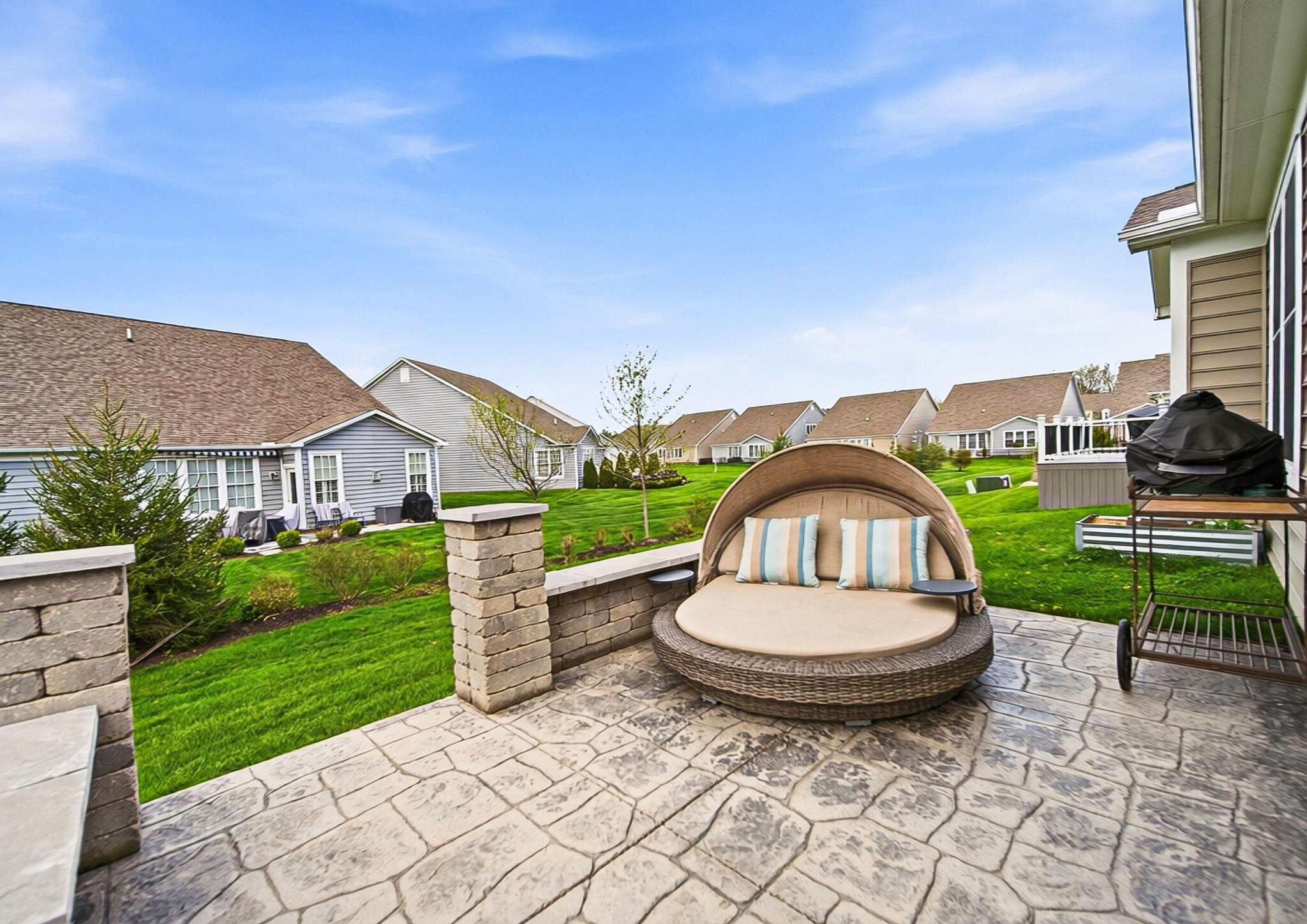 Where low maintenance living meets an active, connected lifestyle, this Ascend model in Nottingham Trace offers thoughtful design and effortless living. From morning walks and pickleball matches to evenings with neighbors at the clubhouse, this is a community designed to bring people together. Inside, this 2 bedroom, 2 bath ranch with 2 additional flexible bonus rooms and a sunroom offers tall ceilings, light filled spaces, and a layout that feels both open and intentional. At the center of the home, the kitchen is designed for everyday living and entertaining, featuring stainless steel appliances, quartz countertops, designer cabinetry, and a generous island that opens seamlessly to the main living areas. The private owner's suite provides a quiet retreat with a custom walk-in closet and an en suite bath complete with double vanity, soaking tub, and tiled walk-in shower. A secondary bedroom, full bath, and two versatile flex spaces offer flexibility for guests, work, or hobbies. A bright sunroom extends the living space and opens to a stamped concrete patio and welcoming front porch, creating an easy flow for indoor outdoor living. Additional highlights include upgraded lighting, custom window coverings, a dedicated laundry room with utility sink, smart home features, and an extended two car garage for added storage. Residents of Nottingham Trace enjoy access to a clubhouse with fitness center, pickleball and bocce courts, scenic walking and biking paths, and a stocked fishing pond. Lawn care and snow removal are included, offering a low maintenance lifestyle with added ease. A home that supports the way you want to live, every day.