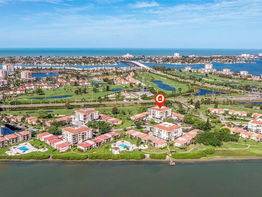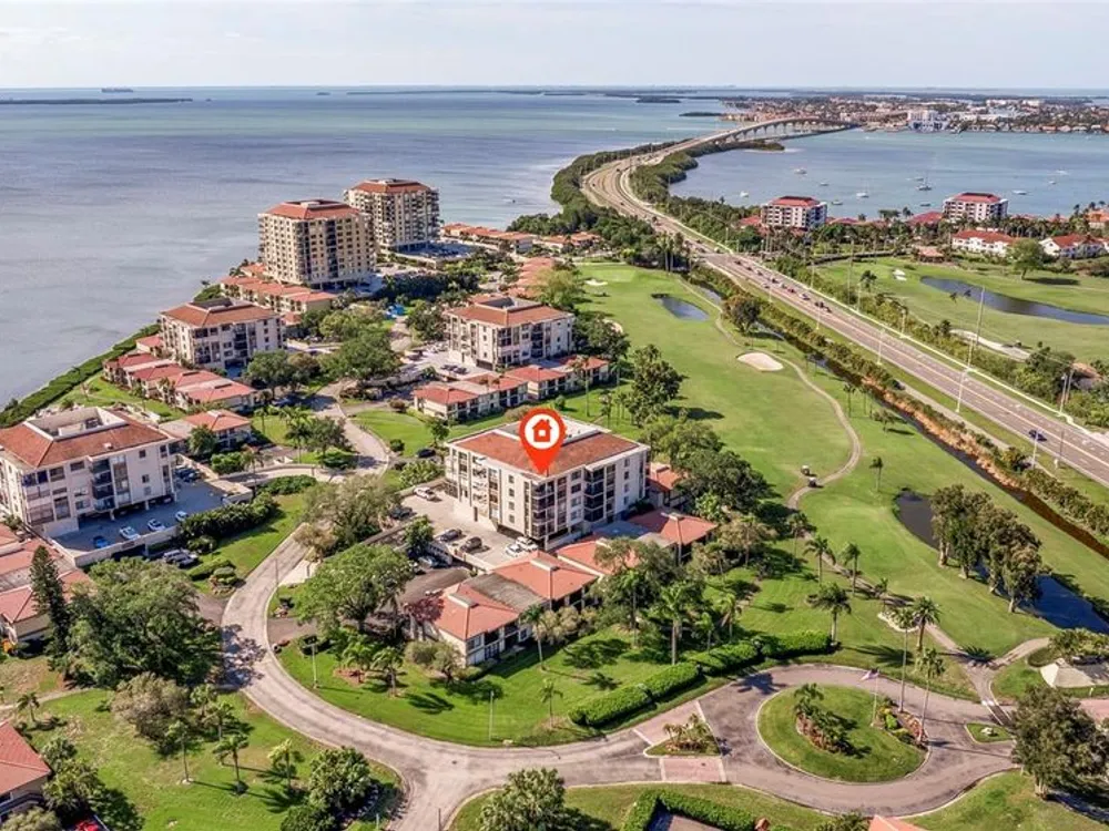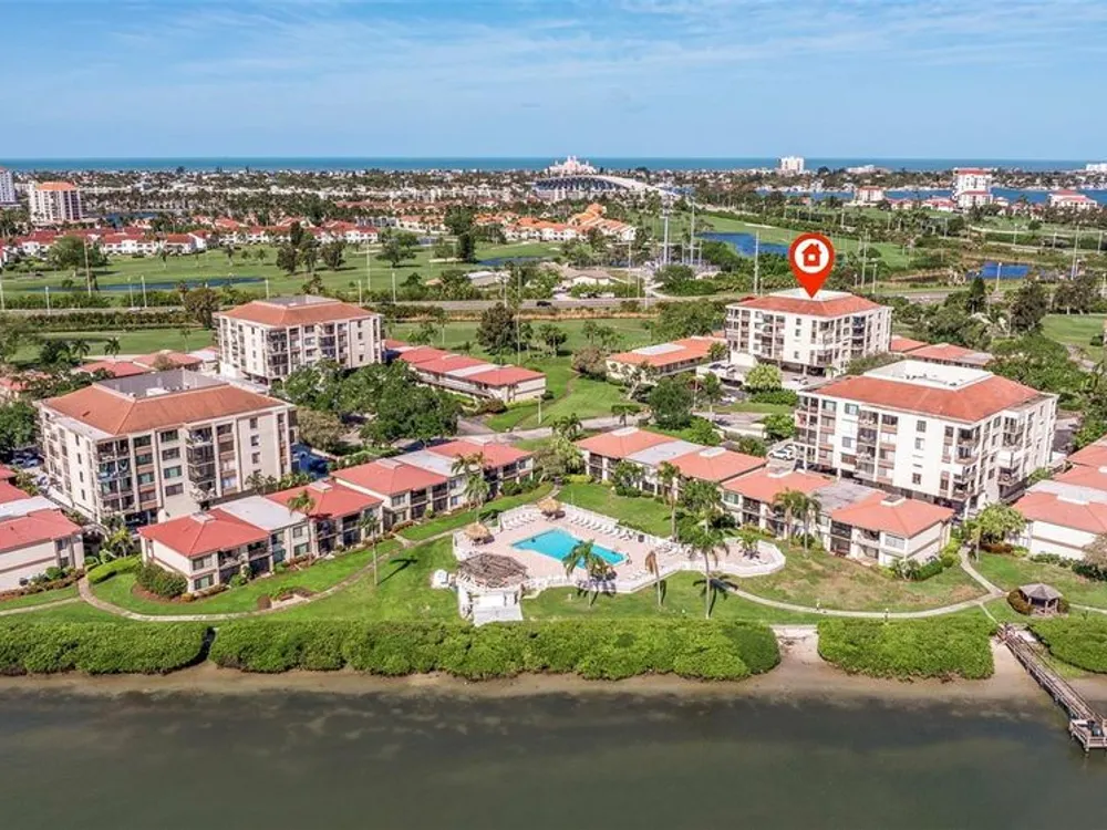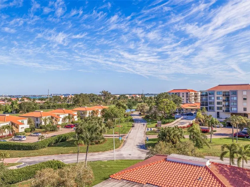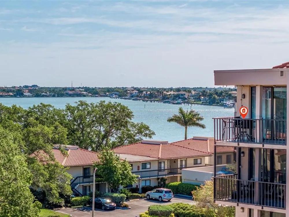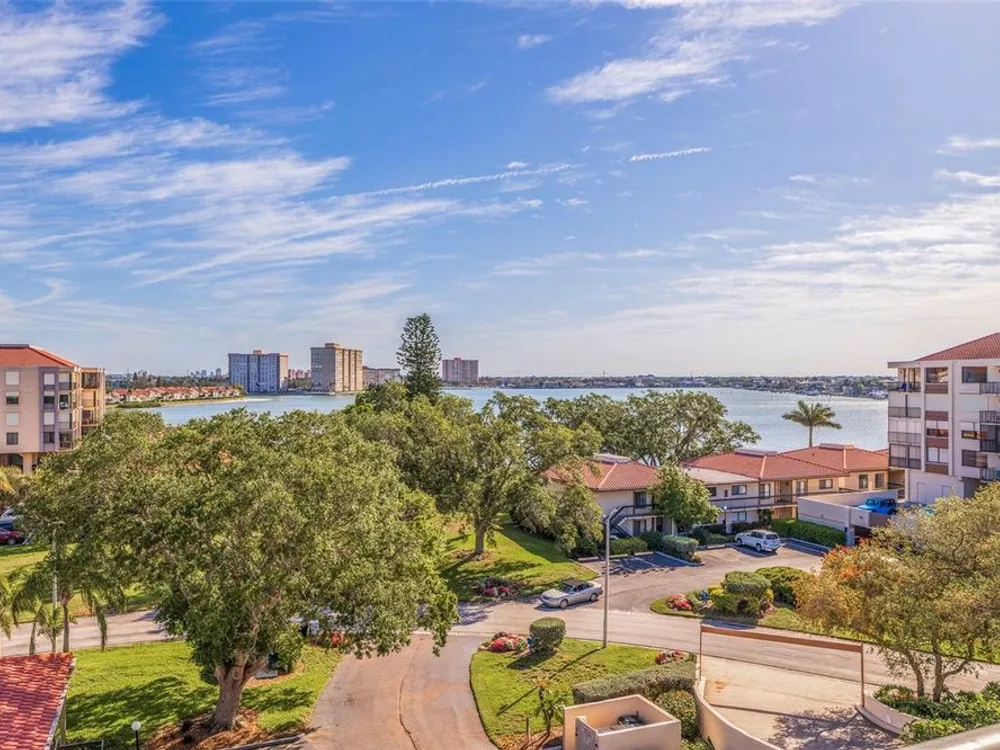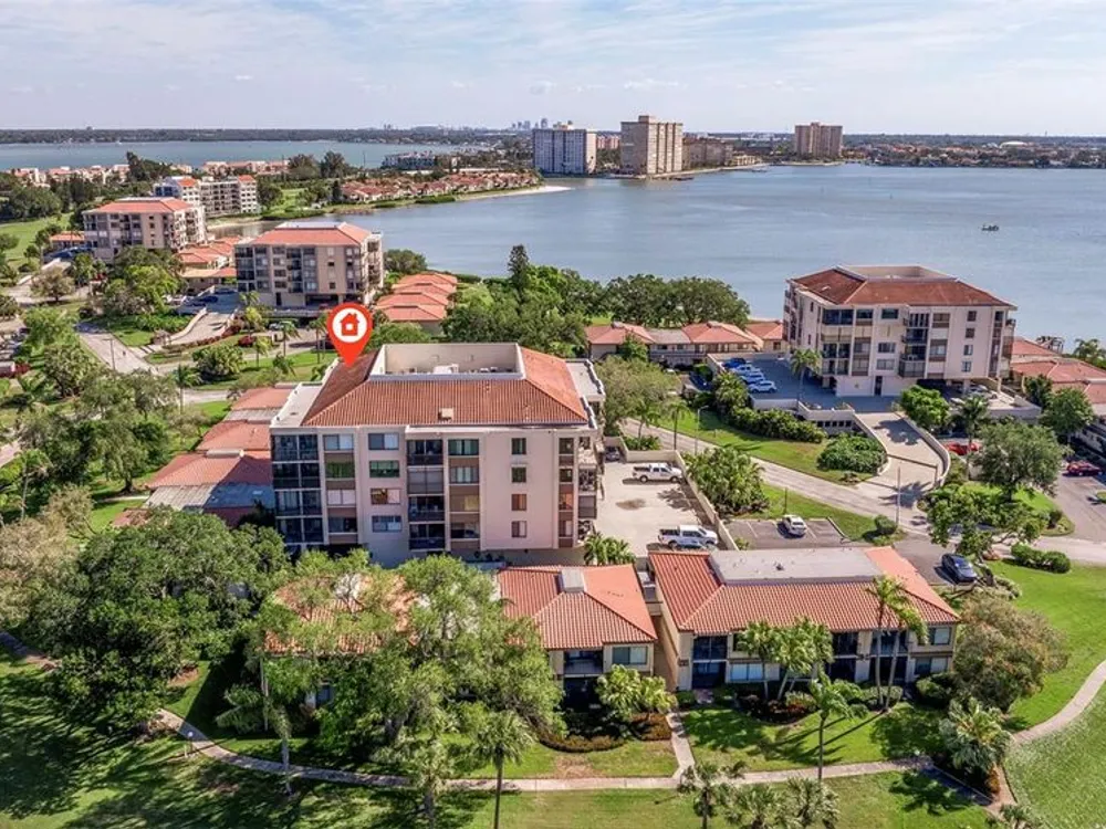 Make this your coastal getaway with this condo's charm - a top corner unit—partial water views & fully furnished! Welcome to easy coastal living in this beautiful 2-bedroom, 2-bathroom condo in the highly desirable Palma Del Mar community. This 1,050 sq ft top-floor corner unit overlooks the 5th tee box of the golf course and offers breathtaking views of Boca Ciega Bay and Tampa Bay—visible from nearly every room and your private lanai. All assessments have been paid and the Milestone Inspection is complete, giving peace of mind to both homeowners and investors. The HOA’s annual budget meeting notes are available, showing a stable, well-managed community with low fees. This unit has been thoughtfully updated with luxury vinyl plank flooring, stainless steel appliances, modern lighting, and contemporary bathroom vanities. The spacious primary suite includes a cozy nook perfect for a home office or reading area, along with a large walk-in closet. Enjoy resort-style amenities including a heated saltwater pool & spa, clubhouse, fitness center, bike storage, fishing pier, and many golf courses. The condo includes a premium assigned parking space just steps from the lobby and plenty of guest parking. Located minutes from St. Pete Beach, Fort De Soto Park, Downtown St. Petersburg, top-rated restaurants, and shopping—this is a perfect year-round residence, vacation getaway, or income-producing rental (30-day minimum lease). Whether you're seeking tranquility, investment potential, or both—this is the one you've been waiting for.