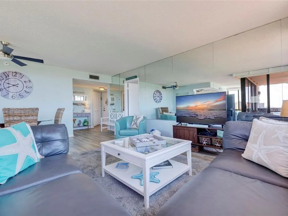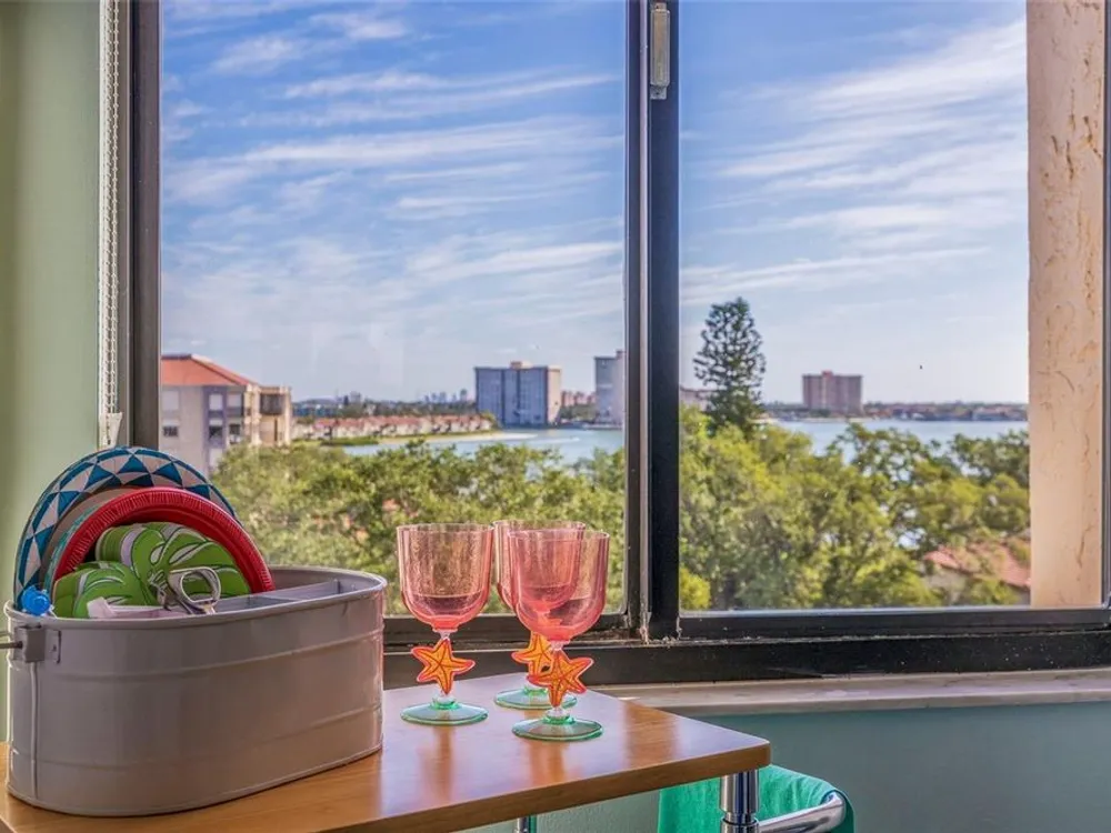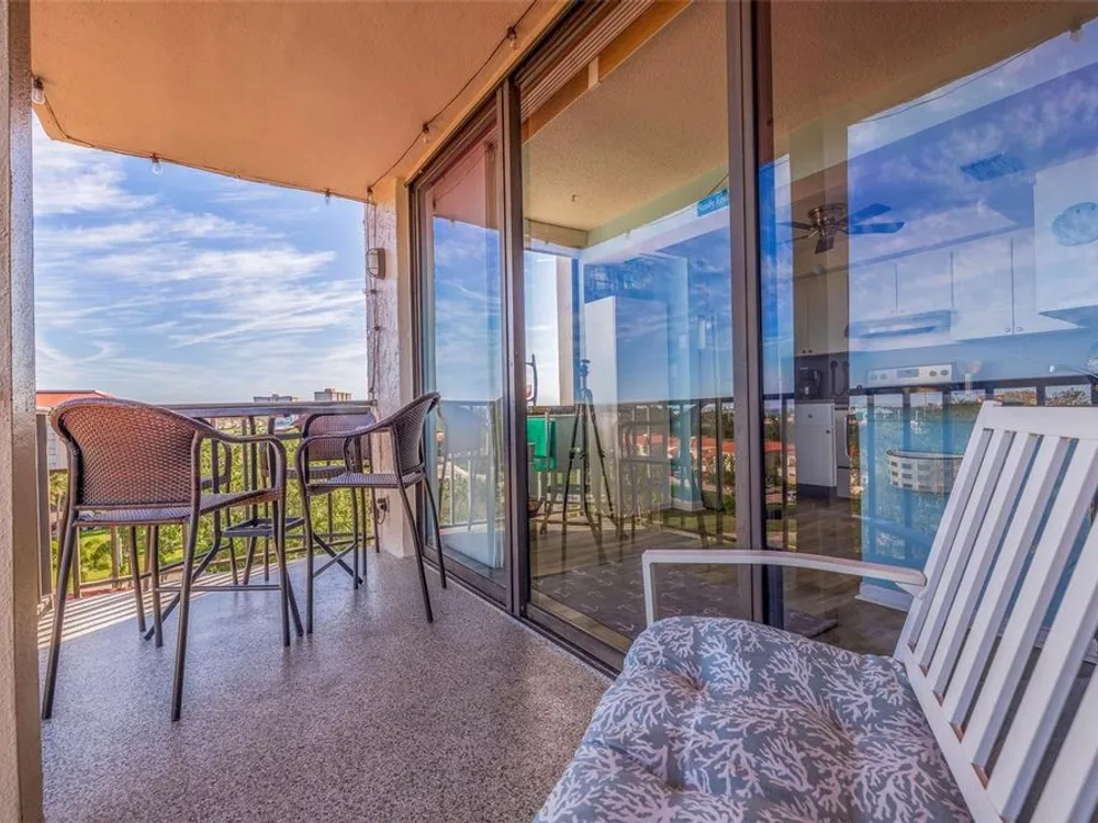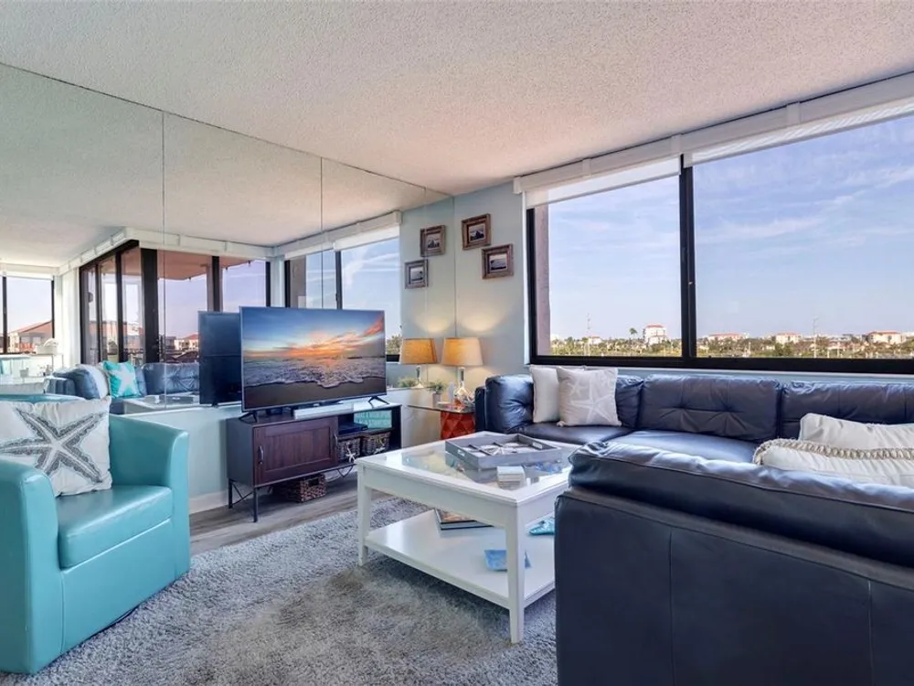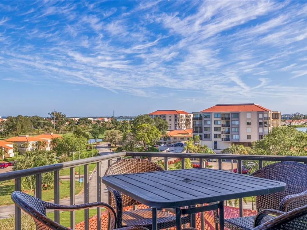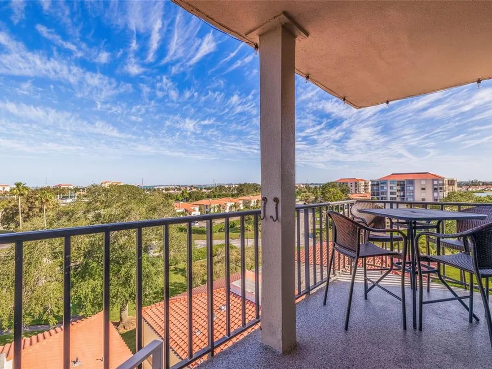 Make this your coastal getaway with this condo's charm - a top corner unit—partial water views & fully furnished! Welcome to easy coastal living in this beautiful 2-bedroom, 2-bathroom condo in the highly desirable Palma Del Mar community. This 1,050 sq ft top-floor corner unit overlooks the 5th tee box of the golf course and offers breathtaking views of Boca Ciega Bay and Tampa Bay—visible from nearly every room and your private lanai. All assessments have been paid and the Milestone Inspection is complete, giving peace of mind to both homeowners and investors. The HOA’s annual budget meeting notes are available, showing a stable, well-managed community with low fees. This unit has been thoughtfully updated with luxury vinyl plank flooring, stainless steel appliances, modern lighting, and contemporary bathroom vanities. The spacious primary suite includes a cozy nook perfect for a home office or reading area, along with a large walk-in closet. Enjoy resort-style amenities including a heated saltwater pool & spa, clubhouse, fitness center, bike storage, fishing pier, and many golf courses. The condo includes a premium assigned parking space just steps from the lobby and plenty of guest parking. Located minutes from St. Pete Beach, Fort De Soto Park, Downtown St. Petersburg, top-rated restaurants, and shopping—this is a perfect year-round residence, vacation getaway, or income-producing rental (30-day minimum lease). Whether you're seeking tranquility, investment potential, or both—this is the one you've been waiting for.
