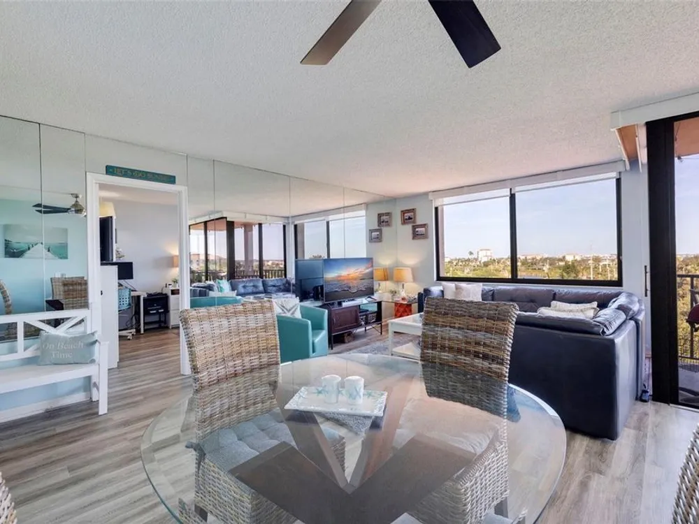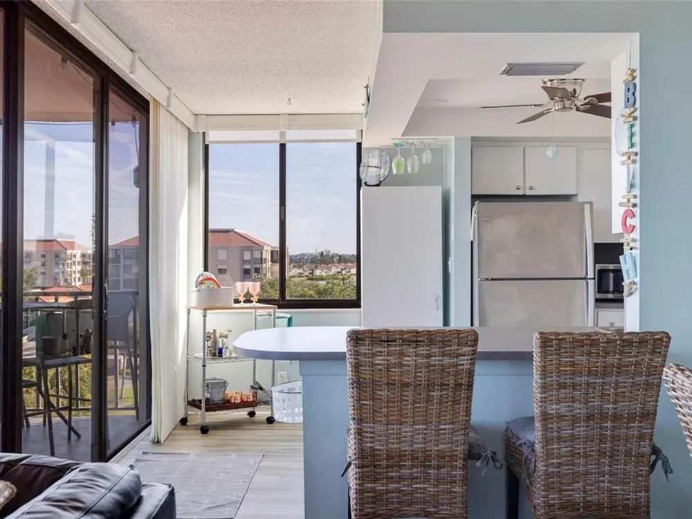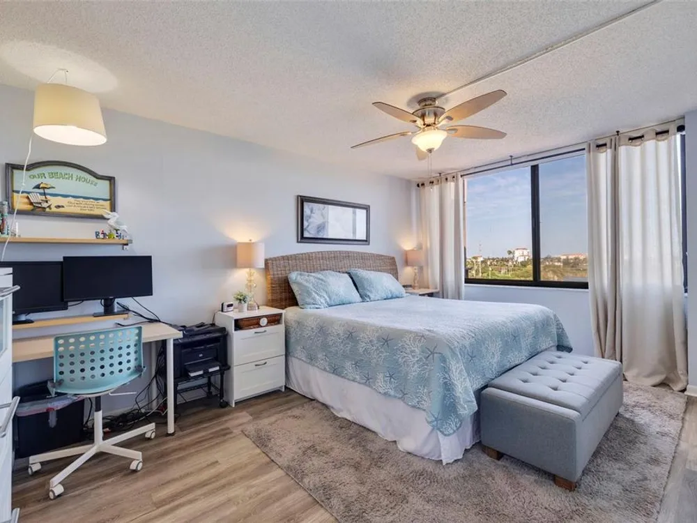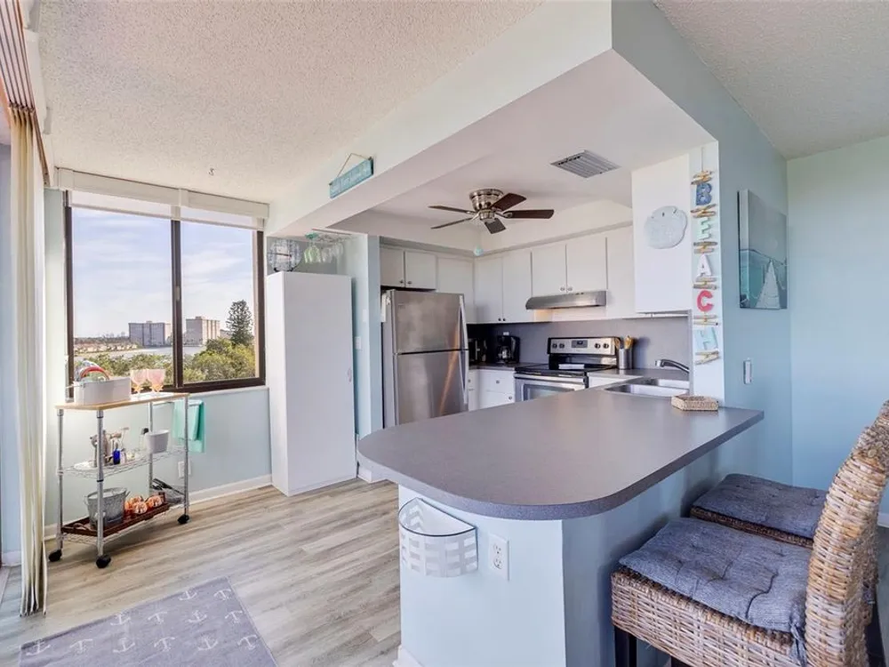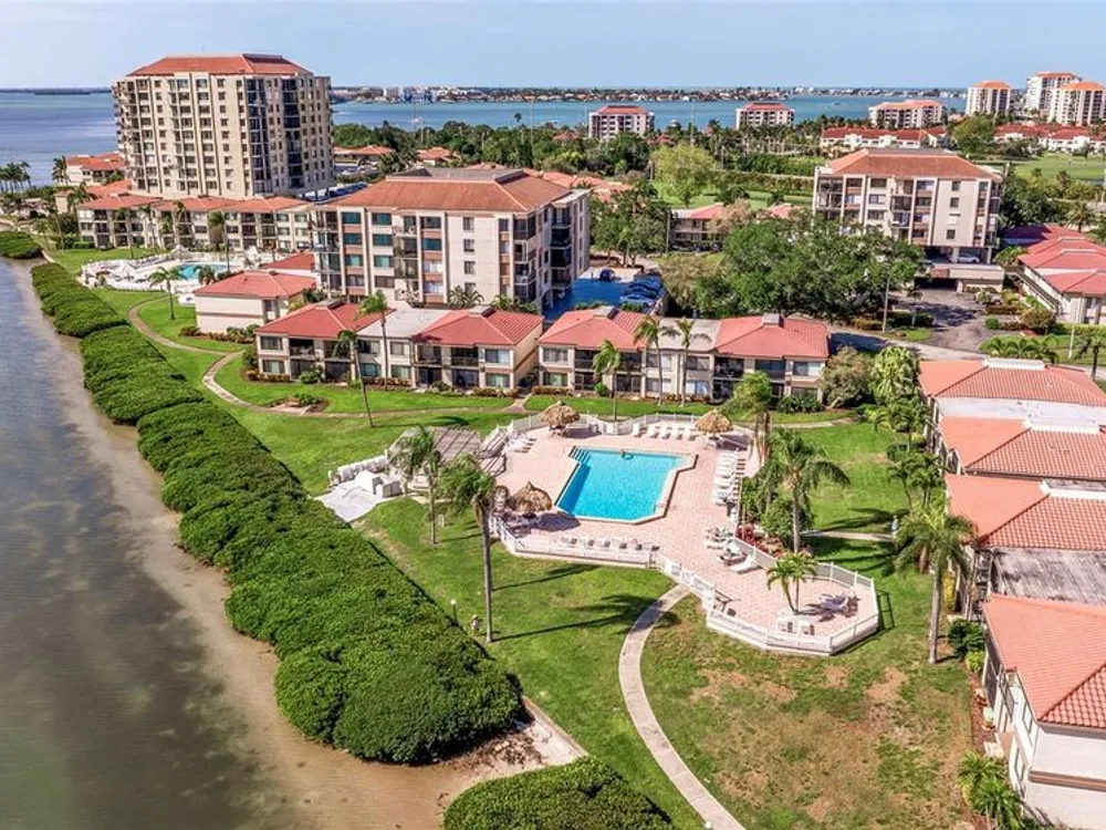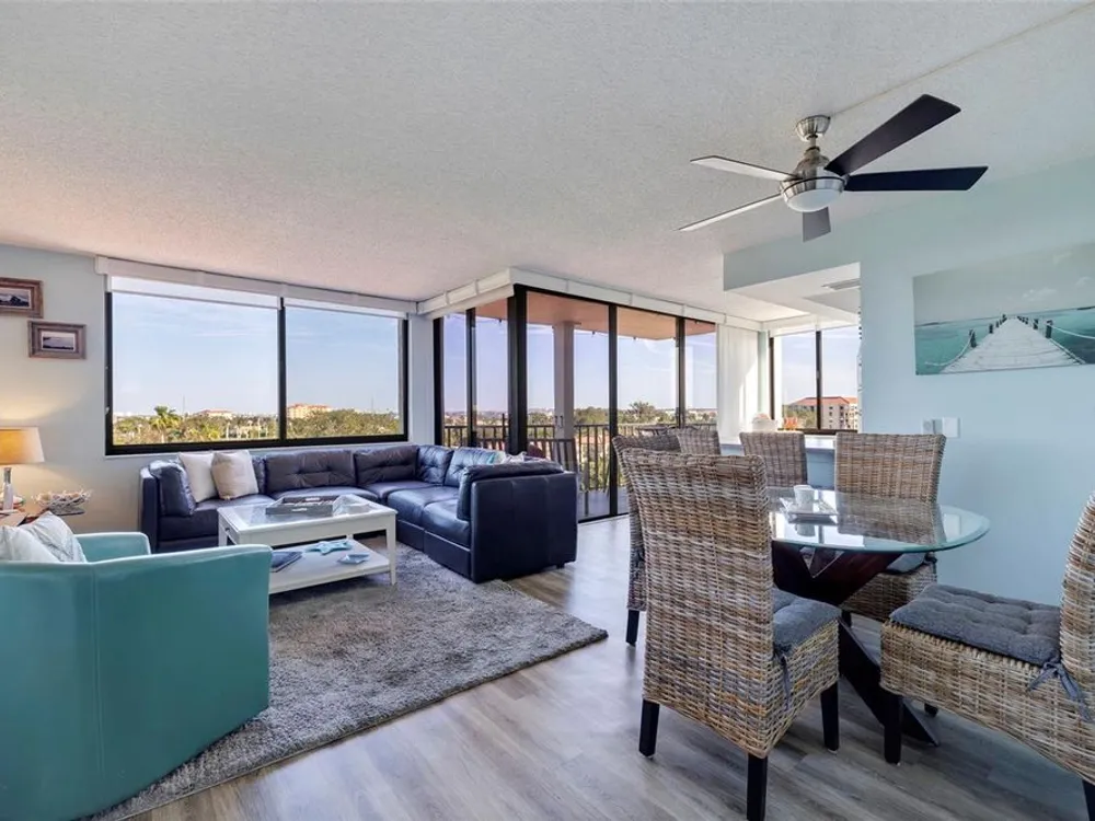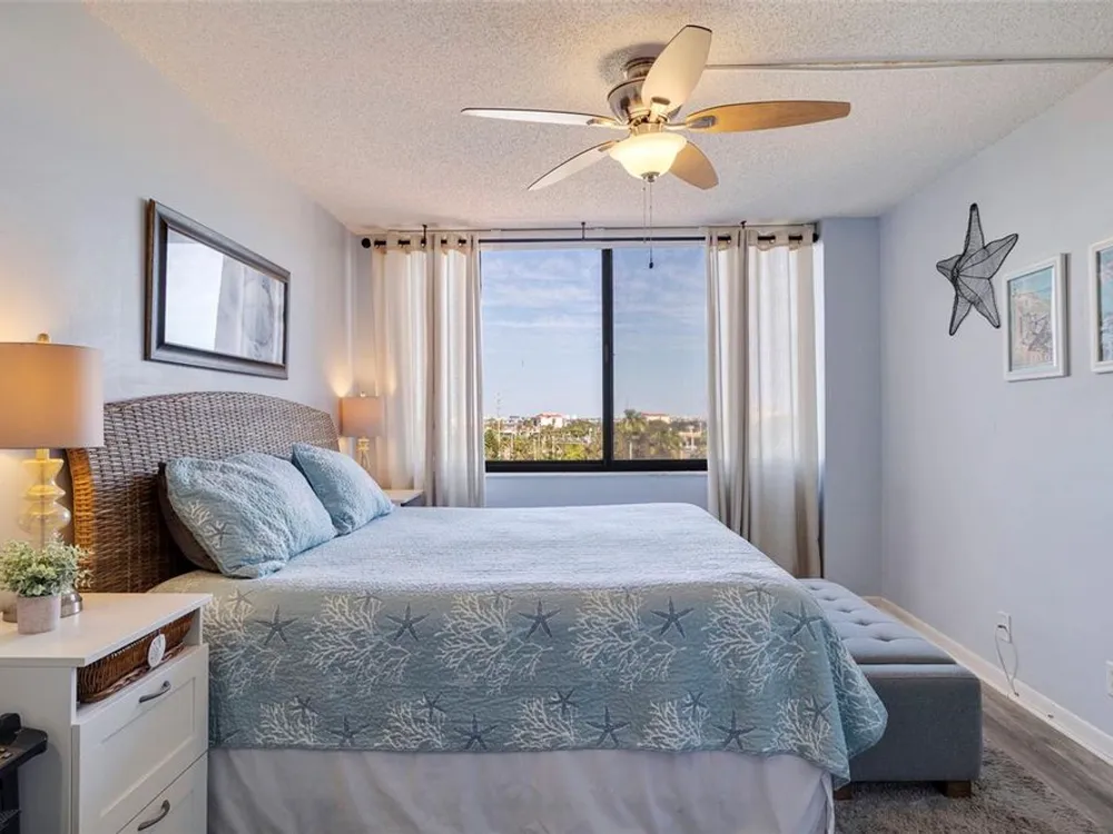 Make this your coastal getaway with this condo's charm - a top corner unit—partial water views & fully furnished! Welcome to easy coastal living in this beautiful 2-bedroom, 2-bathroom condo in the highly desirable Palma Del Mar community. This 1,050 sq ft top-floor corner unit overlooks the 5th tee box of the golf course and offers breathtaking views of Boca Ciega Bay and Tampa Bay—visible from nearly every room and your private lanai. All assessments have been paid and the Milestone Inspection is complete, giving peace of mind to both homeowners and investors. The HOA’s annual budget meeting notes are available, showing a stable, well-managed community with low fees. This unit has been thoughtfully updated with luxury vinyl plank flooring, stainless steel appliances, modern lighting, and contemporary bathroom vanities. The spacious primary suite includes a cozy nook perfect for a home office or reading area, along with a large walk-in closet. Enjoy resort-style amenities including a heated saltwater pool & spa, clubhouse, fitness center, bike storage, fishing pier, and many golf courses. The condo includes a premium assigned parking space just steps from the lobby and plenty of guest parking. Located minutes from St. Pete Beach, Fort De Soto Park, Downtown St. Petersburg, top-rated restaurants, and shopping—this is a perfect year-round residence, vacation getaway, or income-producing rental (30-day minimum lease). Whether you're seeking tranquility, investment potential, or both—this is the one you've been waiting for.