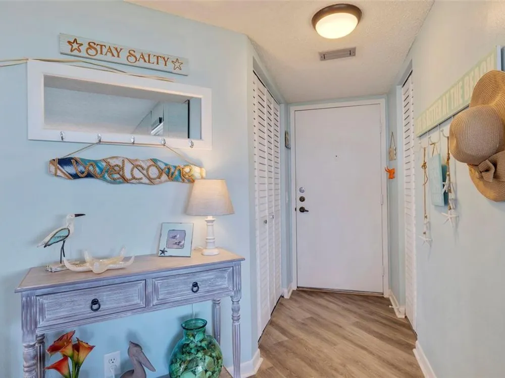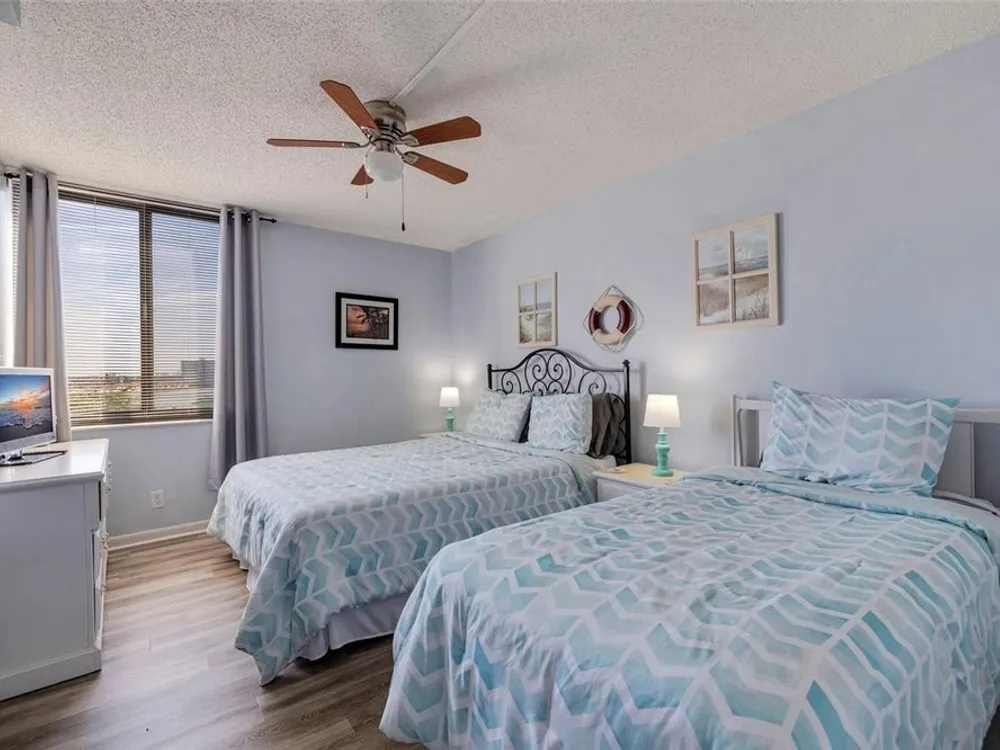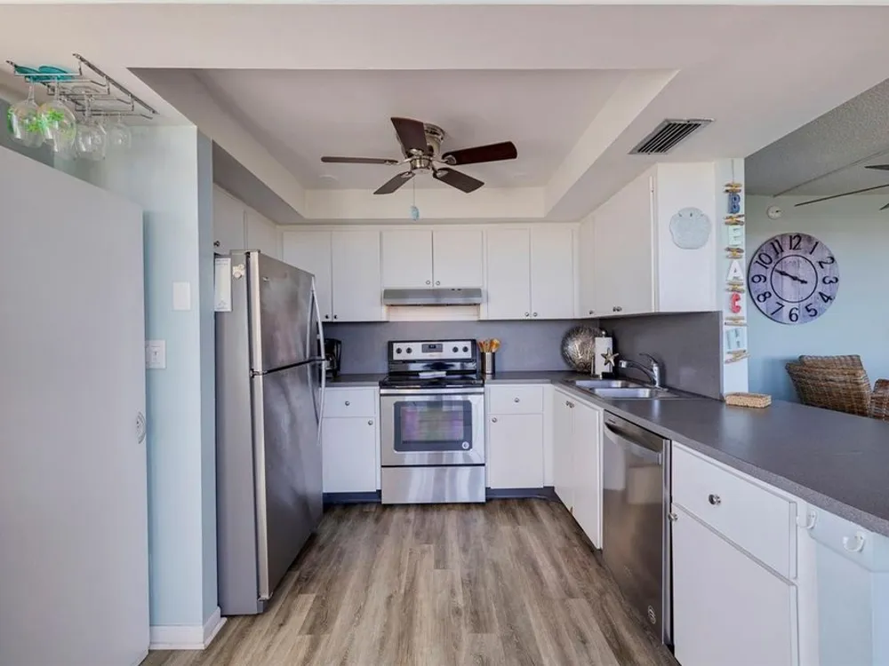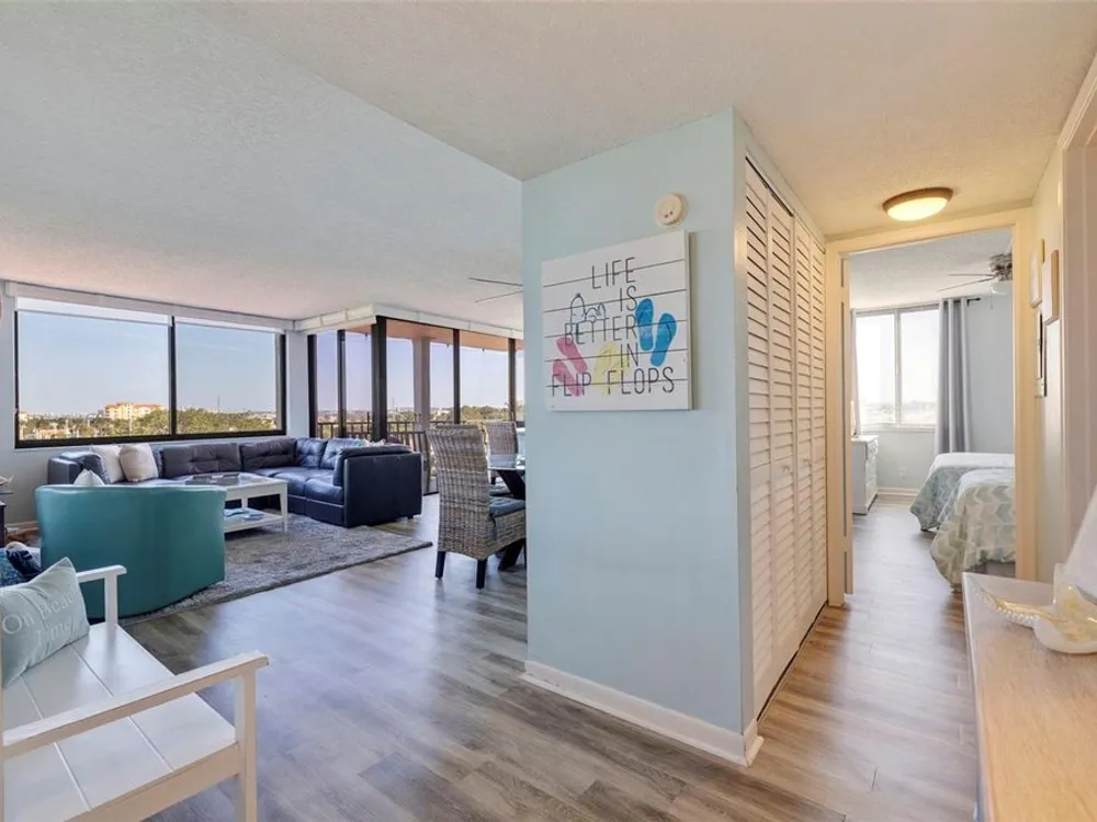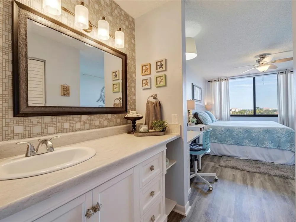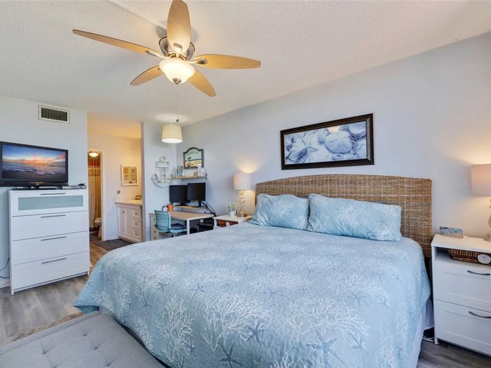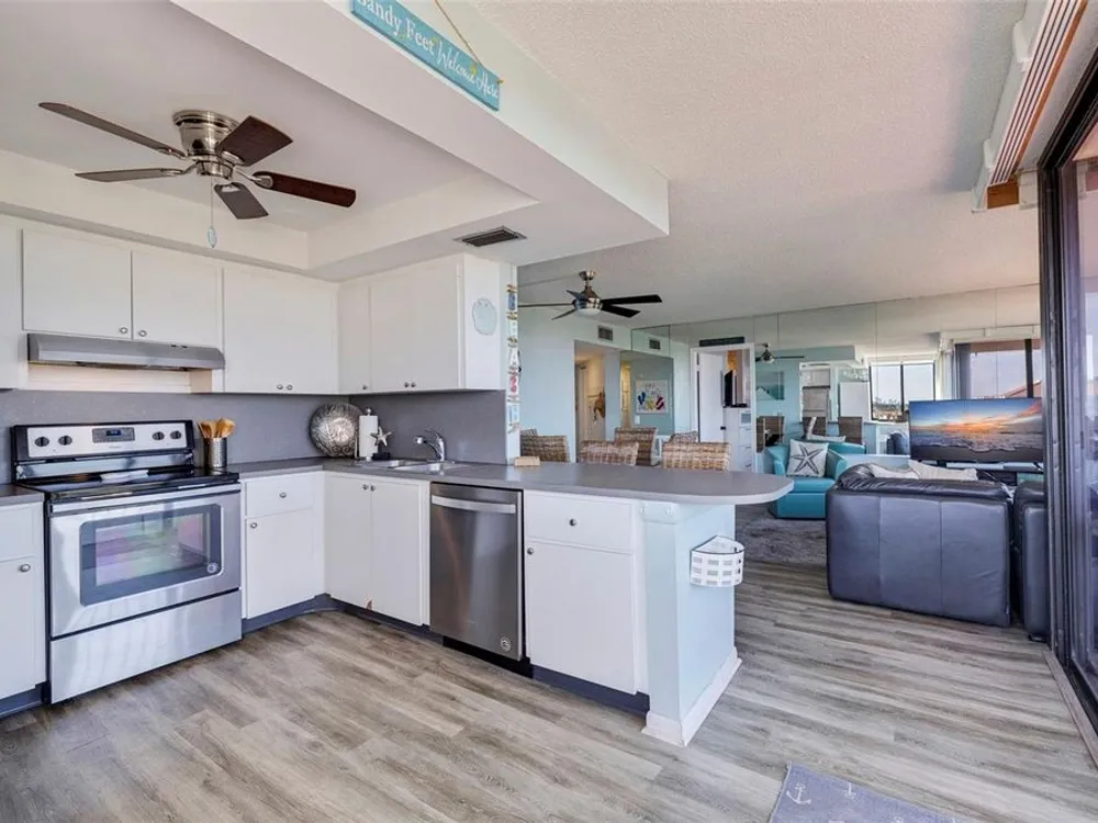 Make this your coastal getaway with this condo's charm - a top corner unit—partial water views & fully furnished! Welcome to easy coastal living in this beautiful 2-bedroom, 2-bathroom condo in the highly desirable Palma Del Mar community. This 1,050 sq ft top-floor corner unit overlooks the 5th tee box of the golf course and offers breathtaking views of Boca Ciega Bay and Tampa Bay—visible from nearly every room and your private lanai. All assessments have been paid and the Milestone Inspection is complete, giving peace of mind to both homeowners and investors. The HOA’s annual budget meeting notes are available, showing a stable, well-managed community with low fees. This unit has been thoughtfully updated with luxury vinyl plank flooring, stainless steel appliances, modern lighting, and contemporary bathroom vanities. The spacious primary suite includes a cozy nook perfect for a home office or reading area, along with a large walk-in closet. Enjoy resort-style amenities including a heated saltwater pool & spa, clubhouse, fitness center, bike storage, fishing pier, and many golf courses. The condo includes a premium assigned parking space just steps from the lobby and plenty of guest parking. Located minutes from St. Pete Beach, Fort De Soto Park, Downtown St. Petersburg, top-rated restaurants, and shopping—this is a perfect year-round residence, vacation getaway, or income-producing rental (30-day minimum lease). Whether you're seeking tranquility, investment potential, or both—this is the one you've been waiting for.