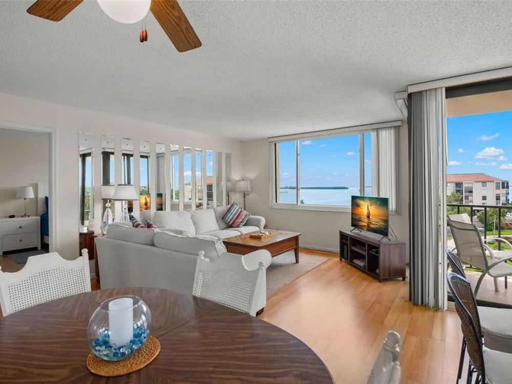 Top-Floor Corner Unit with Stunning Water Views – Fully Furnished Coastal Retreat! Welcome to effortless coastal living in this beautifully furnished 2-bedroom, 2-bathroom condo, perfectly situated in the sought-after Palma Del Mar community. This bright and airy 1,050 sq ft top-floor corner unit offers expansive views of the water, lush golf course, and even the iconic Sunshine Skyway Bridge in the distance. All major assessments have been paid, and the Milestone Inspection has been completed—offering peace of mind for homeowners and investors alike. Additionally, the HOA’s annual budget meeting notes reflect a stable, well-managed community. Step inside to an open, sun-filled floor plan with large windows and a seamless flow from the spacious living and dining area to your private balcony—perfect for morning coffee or sunset cocktails. The primary suite features an en-suite bathroom and a large walk-in closet, while the second bedroom offers ample space for guests or a home office. Recent Updates Include: 2016: New water heater 2017: All bathrooms renovated 2020: New dishwasher installed in kitchen 2021: Custom Energy Star-rated Simonton windows (hurricane-grade) installed throughout by HomExel (Clearwater, FL) 2023: New blinds installed in the living room and bedrooms 2023: Smoke detectors inspected and certified for code compliance 2024: Kitchen lighting upgraded to energy-efficient LED 2024: New HVAC system installed in May by Island Air (10-year warranty applies to original purchaser) Additional Features: In-unit washer & dryer Premium assigned parking space just steps from the lobby Ample guest parking Fully furnished—move-in ready (minus a few owner items listed in the seller's disclosure) Resort-Style Amenities Include: Heated pool & spa Clubhouse on the second level for parties, game nights, and billiards, anyone? Fishing pier & bike storage Access to multiple golf courses nearby Just minutes from St. Pete Beach, Fort De Soto Park, Downtown St. Petersburg, and an array of top-rated restaurants and shops, this home is perfect as a year-round residence, vacation getaway, or income-producing rental (30-day minimum lease). Whether you're seeking serenity, smart investment potential, or both—this is the one you’ve been waiting for.