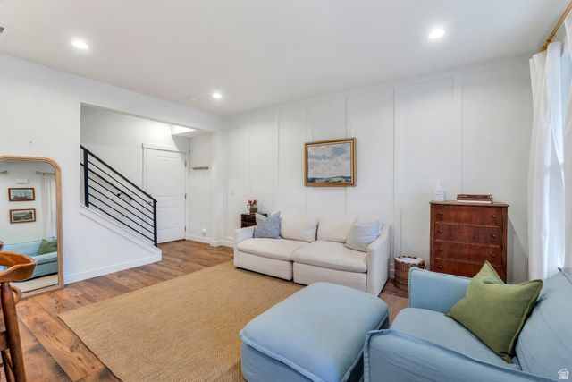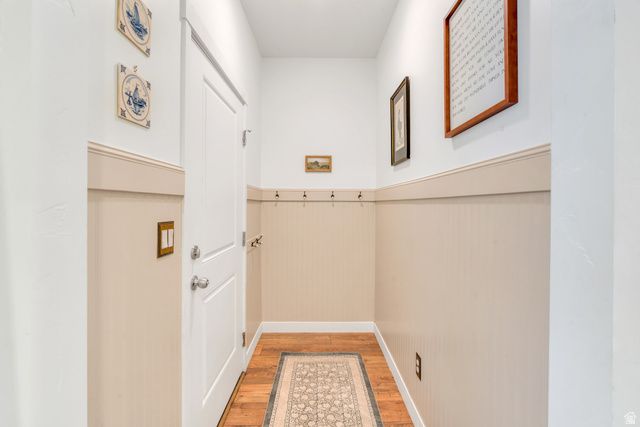 Welcome to this beautifully styled Daybreak townhome, where thoughtful design and an unbeatable location come together seamlessly. Just a short walk to the community center, pool, Highland Park, and Aspen Elementary and directly across the street from the mountain bike park and trail. This home offers easy access to some of Daybreak's most sought-after amenities. Inside, you'll find stunning faux wood flooring that flows throughout the main living areas, creating a warm and cohesive feel. The kitchen is both stylish and functional, featuring two-tone cabinetry, elegant gold hardware, and stainless steel appliances, perfect for everyday living and entertaining. The entryway makes a statement with charming shiplap wainscoting and convenient hooks for coats and bags, adding both character and practicality. Upstairs, the spacious primary suite offers a large walk-in closet complete with ample shelving and hanging space for optimal organization. The ensuite bathroom is equally impressive, featuring a large tiled walk-in shower and a double vanity. Additional highlights include an attached 2-car garage and a well-designed layout that maximizes both comfort and functionality. Enjoy all that Daybreak has to offer, including Oquirrh Lake, over 30 miles of walking and biking trails, parks, playgrounds, community events, and more, all just moments from your front door. This home is the perfect blend of style, convenience, and community living.