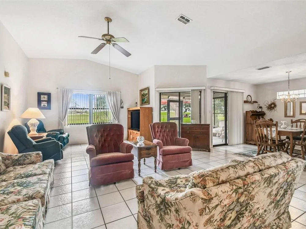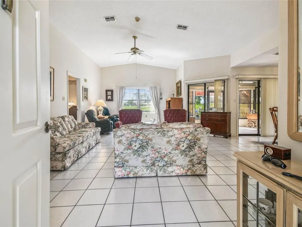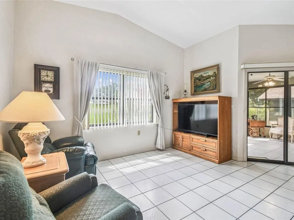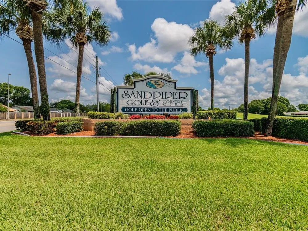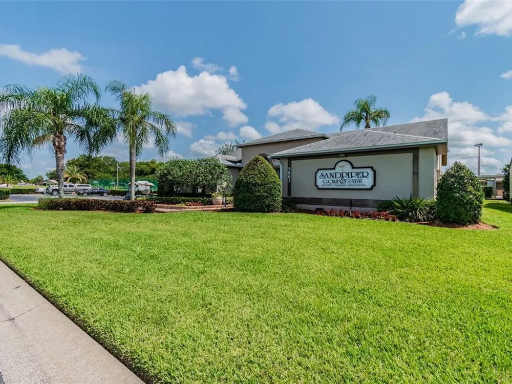 Located in the highly desirable 55+ Sandpiper community, this charming 2-bedroom, 2-bathroom home is perfectly situated on the fourth fairway. Lovingly maintained by its original owner, the home offers a bright, open-concept living area filled with natural light. To the right, you'll find a cozy eat-in kitchen featuring a picturesque bay window. At the rear of the home, a spacious enclosed Florida room provides a serene space to unwind or entertain, with beautiful views and endless potential. Tastefully decorated in neutral tones, the home also boasts a new roof (2022) and a water heater just one year old. Just a short golf cart ride away, you'll enjoy access to top-tier community amenities, including two heated pools, a fitness center, pickleball courts, an on-site restaurant, a pro shop, and a wide array of clubs and activities. The low monthly HOA fee includes lawn care, cable TV, internet, and WiFi. Conveniently located near shopping, banking, and I-4 access. Don’t miss your chance to see this wonderful home—schedule your showing today before it’s gone!