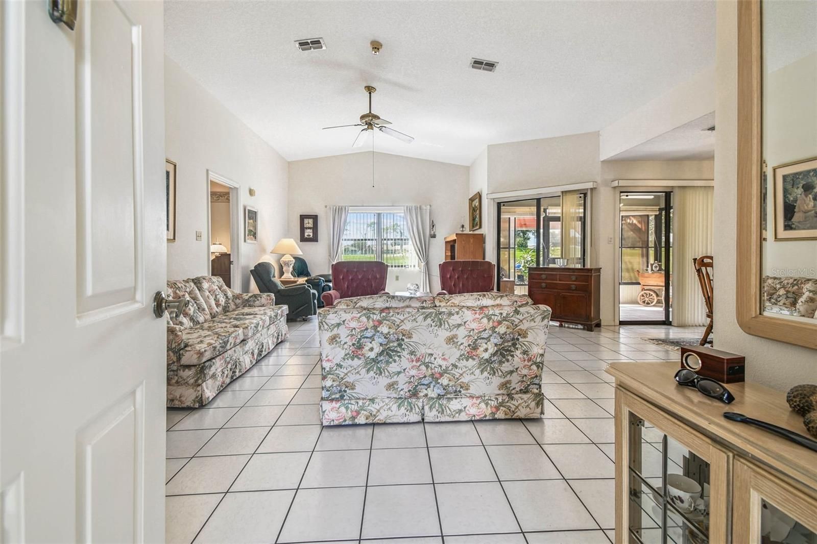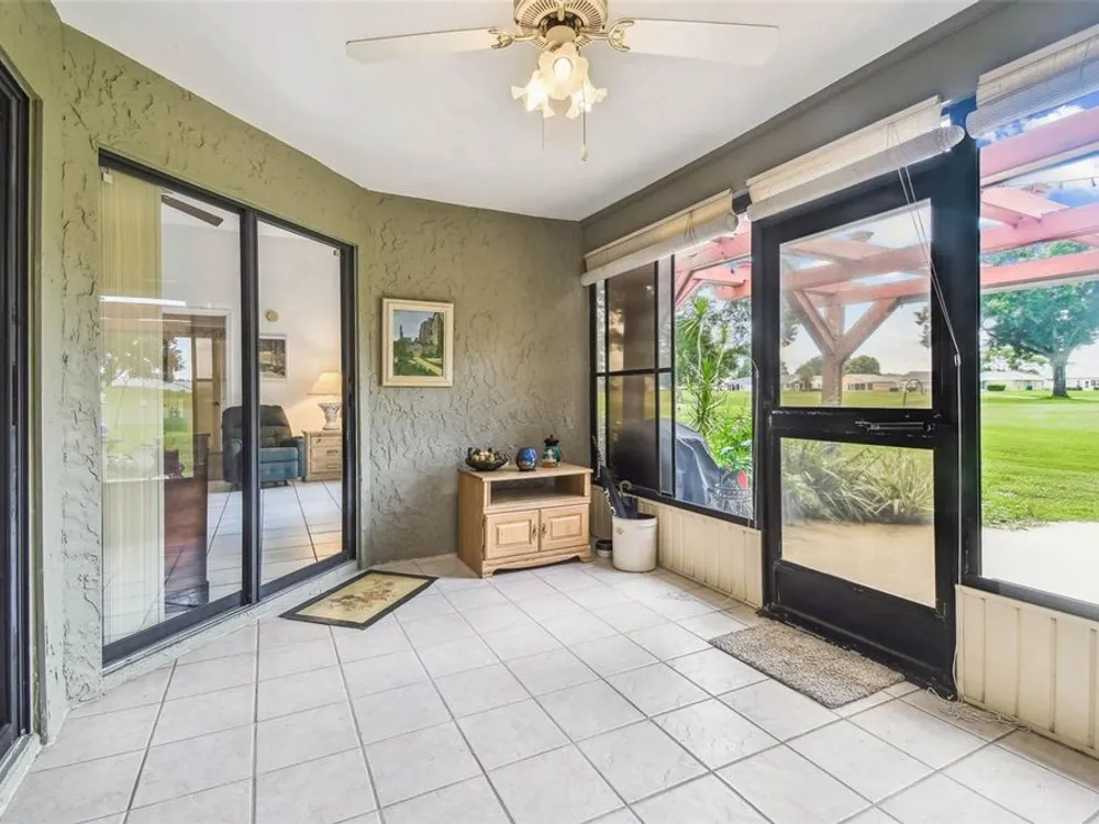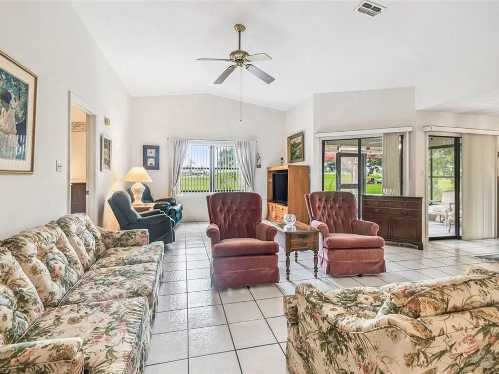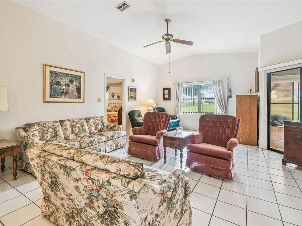 Located in the highly desirable 55+ Sandpiper community, this charming 2-bedroom, 2-bathroom home is perfectly situated on the fourth fairway. Lovingly maintained by its original owner, the home offers a bright, open-concept living area filled with natural light. To the right, you'll find a cozy eat-in kitchen featuring a picturesque bay window. At the rear of the home, a spacious enclosed Florida room provides a serene space to unwind or entertain, with beautiful views and endless potential. Tastefully decorated in neutral tones, the home also boasts a new roof (2022) and a water heater just one year old. Just a short golf cart ride away, you'll enjoy access to top-tier community amenities, including two heated pools, a fitness center, pickleball courts, an on-site restaurant, a pro shop, and a wide array of clubs and activities. The low monthly HOA fee includes lawn care, cable TV, internet, and WiFi. Conveniently located near shopping, banking, and I-4 access. Don’t miss your chance to see this wonderful home—schedule your showing today before it’s gone!