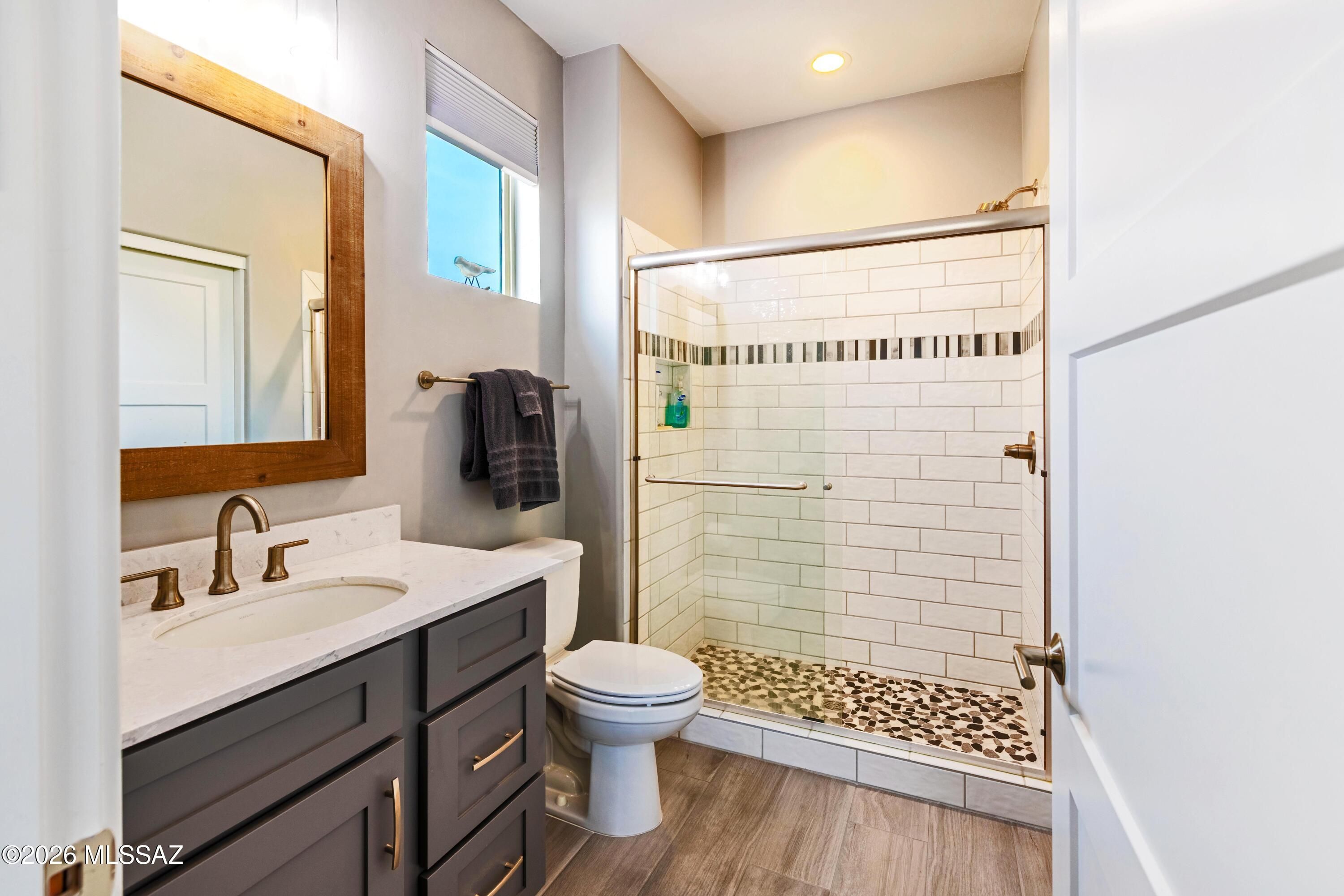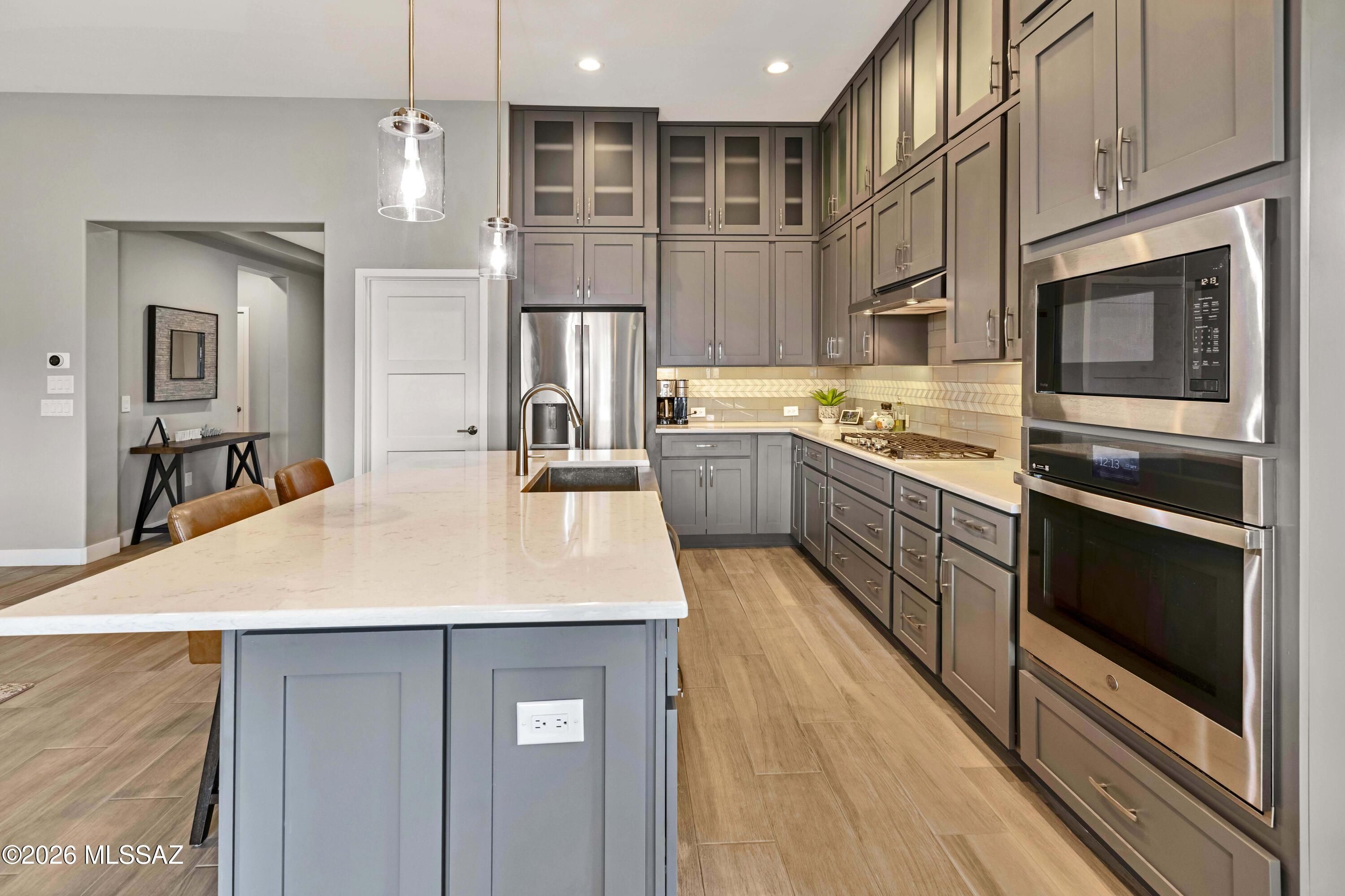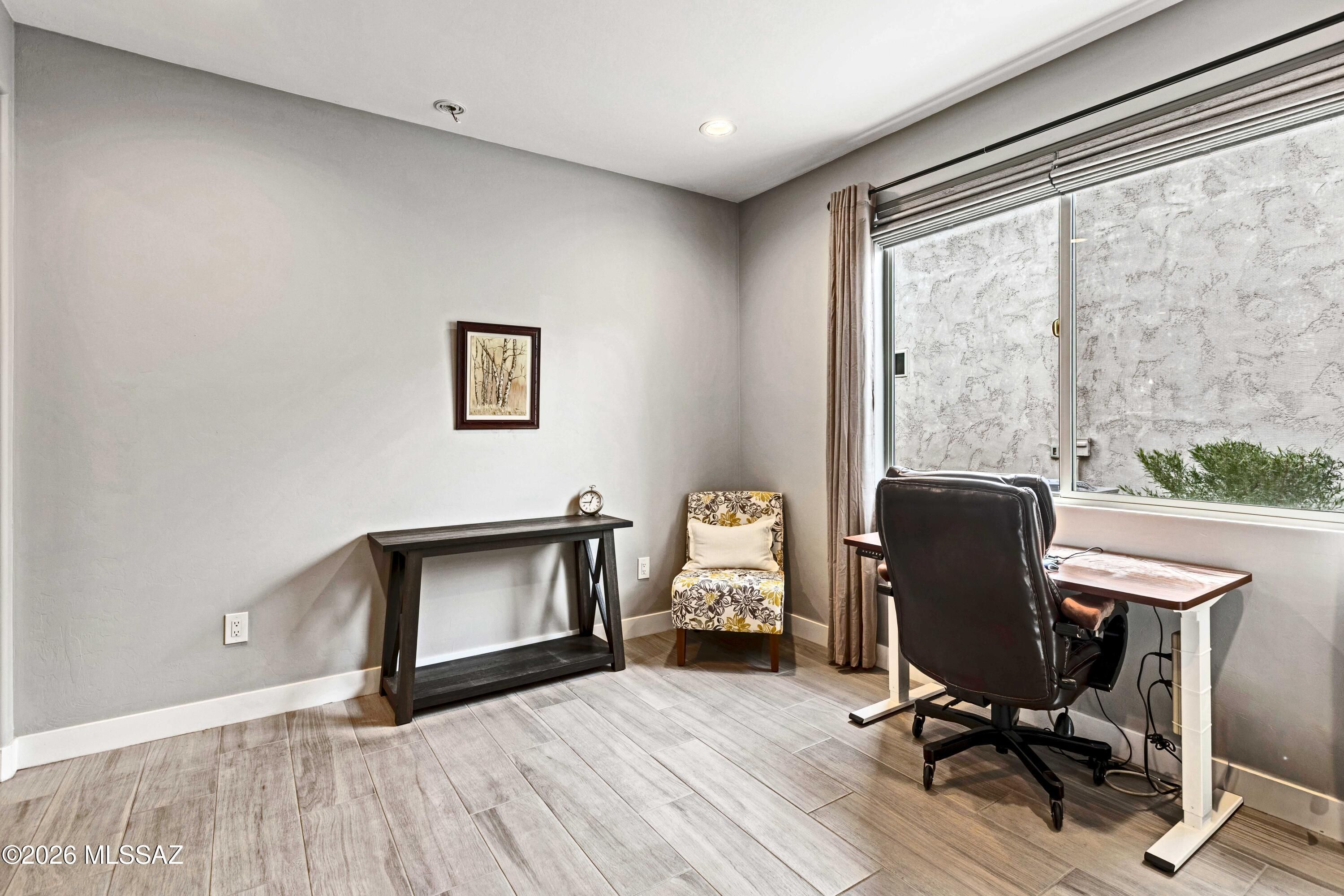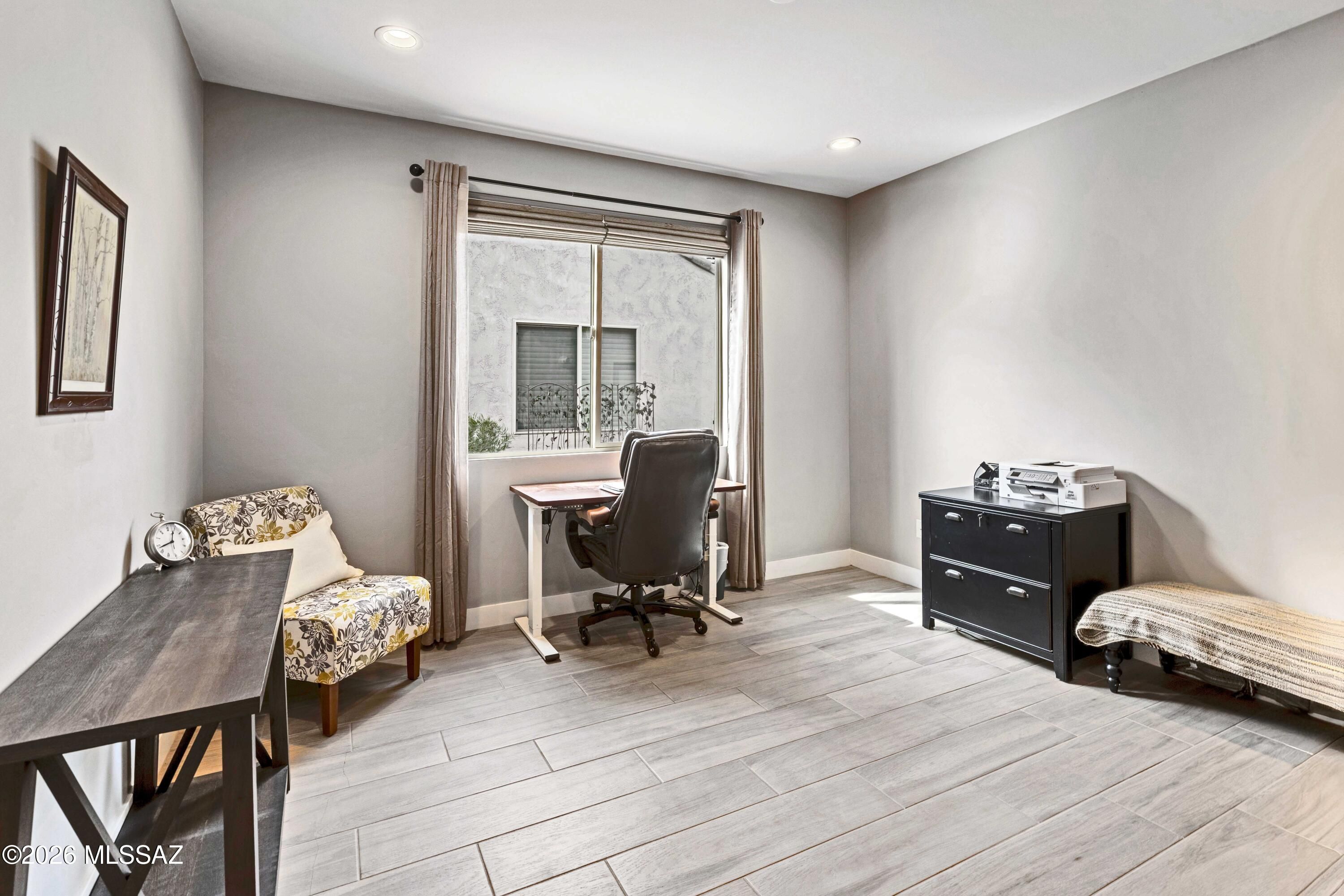 Immaculate one-owner Alora model with stunning mountain views! 2BR/2.5BA features open-concept living with upgraded trim. The gourmet kitchen showcases ceiling-height soft-close cabinets, quartz countertops, an island & walk-in pantry. Primary suite boasts upgraded tile shower, dual vanities & custom built-ins in walk-in closet. Office/den with barn door & Murphy bed, perfect guest space! Fenced yard, Resort-style patio features brick pavers, gas fireplace & electric shades for entertaining. Ext 3-car garage offers epoxy floors, custom cabinets, wall organization, and a tankless water heater. Premium lot with stunning mountain Views! Home is next to community green space in SaddleBrooke Ranch. Call to schedule a showing!