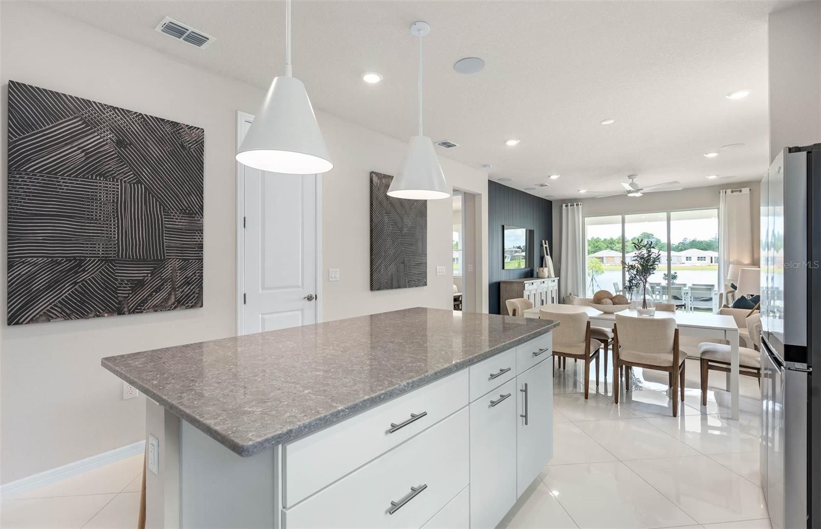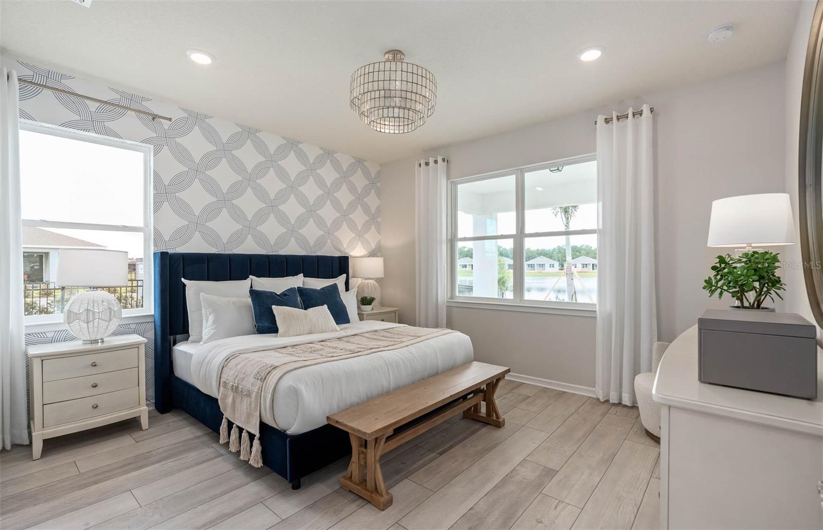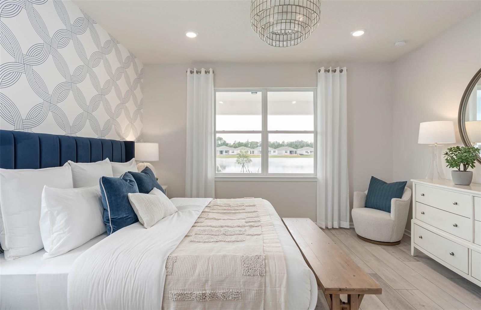 Under Construction. Del Webb Sunbridge is a gated 55+ active adult natural gas community offering new construction single family and villa homes with a low-maintenance lifestyle – and a Central Florida location in the center of it all. Del Webb Sunbridge offers an abundance of resort-style amenities with social events and activities centered in the 27,000-square foot clubhouse and planned by a full-time Lifestyle Director. With a zero-entry pool with lap lanes, resistance pool, poolside hammocks, and heated spa, sports courts, a movement studio, walking trails and more. Meet new friends at a resident club, take a painting class at one of the many art studios, attend a concert or show at the amphitheater, grab a bite at the on-site tavern & grille, or chat at the fire pits and grille pavilion. Get spoiled at Del Webb Sunbridge - after all, this is your time! Your home's exterior and yard maintenance are included, and fiber network provides up to gigabit internet speed. Del Webb Sunbridge’s resort amenities, sports courts, and Lifestyle Director with nearby Lake Nona truly make this the ideal neighborhood and a perfect location to call home. Originally a Model Home, the one-story Contour home by Del Webb features 2 bedrooms, an open flex room, 2 bathrooms, a 2-car garage, and an extended covered lanai—ideal for both comfortable living and easy entertaining. The heart of this home is the stunning kitchen, designed for both beauty and function. It’s appointed with 42” soft-close cabinetry, elegant quartz countertops, and a striking decorative tile backsplash. The upgraded Whirlpool appliances—including a natural gas range and a refrigerator—along with a stainless-steel single-bowl sink and upgraded faucet, make this space a chef's dream. Whether preparing meals or hosting guests, this kitchen inspires. The open-concept design flows seamlessly into the café and gathering room, both flooded with natural light from ample windows. A sliding glass door opens to the extended covered lanai which features a beautiful water view, merging indoor and outdoor living for an inviting and relaxing experience. The owner's suite, located at the back of the home for maximum privacy, offers a true retreat. The spa-inspired en suite bath features a dual vanity with quartz countertops, an enclosed toilet, a frameless glass-enclosed shower with a built-in bench and tile extending to the ceiling, a linen closet, and a spacious walk-in closet. At the front of the home, the secondary bedroom and bathroom are paired with the versatile flex room, providing privacy and space for guests or loved ones. The flex room can serve as a home office, hobby space, or anything that fits your lifestyle. Designer touches inspired by this former model home are evident throughout, with brushed nickel plumbing fixtures and hardware, a Whirlpool washer and dryer. Every detail of this home has been thoughtfully curated, from comfort-height toilets to the Sherwin Williams Agreeable Gray interior paint and 8’ interior doors. The exterior includes thoughtfully placed gutters. Inside, wood-look luxury vinyl plank flooring adds warmth and style to the bedrooms, while durable tile flooring enhances the main living areas, bathrooms, and laundry room for easy maintenance and everyday practicality. Don’t miss the chance to make this exceptional home yours. Schedule a tour today!