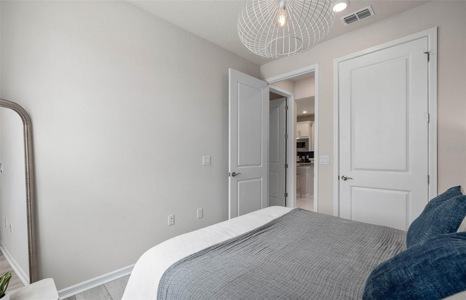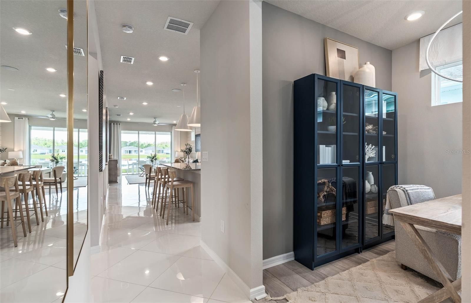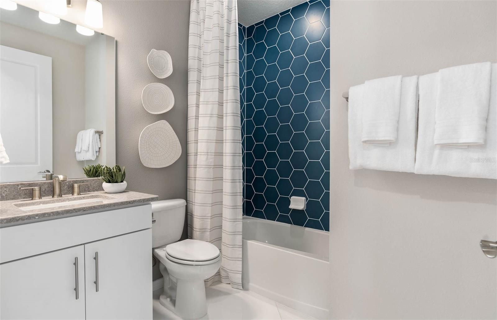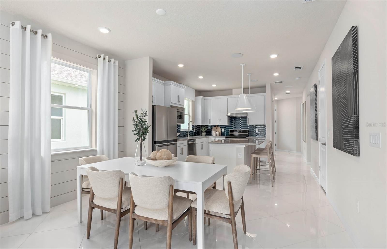 Under Construction. Del Webb Sunbridge is a gated 55+ active adult natural gas community offering new construction single family and villa homes with a low-maintenance lifestyle – and a Central Florida location in the center of it all. Del Webb Sunbridge offers an abundance of resort-style amenities with social events and activities centered in the 27,000-square foot clubhouse and planned by a full-time Lifestyle Director. With a zero-entry pool with lap lanes, resistance pool, poolside hammocks, and heated spa, sports courts, a movement studio, walking trails and more. Meet new friends at a resident club, take a painting class at one of the many art studios, attend a concert or show at the amphitheater, grab a bite at the on-site tavern & grille, or chat at the fire pits and grille pavilion. Get spoiled at Del Webb Sunbridge - after all, this is your time! Your home's exterior and yard maintenance are included, and fiber network provides up to gigabit internet speed. Del Webb Sunbridge’s resort amenities, sports courts, and Lifestyle Director with nearby Lake Nona truly make this the ideal neighborhood and a perfect location to call home. Originally a Model Home, the one-story Contour home by Del Webb features 2 bedrooms, an open flex room, 2 bathrooms, a 2-car garage, and an extended covered lanai—ideal for both comfortable living and easy entertaining. The heart of this home is the stunning kitchen, designed for both beauty and function. It’s appointed with 42” soft-close cabinetry, elegant quartz countertops, and a striking decorative tile backsplash. The upgraded Whirlpool appliances—including a natural gas range and a refrigerator—along with a stainless-steel single-bowl sink and upgraded faucet, make this space a chef's dream. Whether preparing meals or hosting guests, this kitchen inspires. The open-concept design flows seamlessly into the café and gathering room, both flooded with natural light from ample windows. A sliding glass door opens to the extended covered lanai which features a beautiful water view, merging indoor and outdoor living for an inviting and relaxing experience. The owner's suite, located at the back of the home for maximum privacy, offers a true retreat. The spa-inspired en suite bath features a dual vanity with quartz countertops, an enclosed toilet, a frameless glass-enclosed shower with a built-in bench and tile extending to the ceiling, a linen closet, and a spacious walk-in closet. At the front of the home, the secondary bedroom and bathroom are paired with the versatile flex room, providing privacy and space for guests or loved ones. The flex room can serve as a home office, hobby space, or anything that fits your lifestyle. Designer touches inspired by this former model home are evident throughout, with brushed nickel plumbing fixtures and hardware, a Whirlpool washer and dryer. Every detail of this home has been thoughtfully curated, from comfort-height toilets to the Sherwin Williams Agreeable Gray interior paint and 8’ interior doors. The exterior includes thoughtfully placed gutters. Inside, wood-look luxury vinyl plank flooring adds warmth and style to the bedrooms, while durable tile flooring enhances the main living areas, bathrooms, and laundry room for easy maintenance and everyday practicality. Don’t miss the chance to make this exceptional home yours. Schedule a tour today!