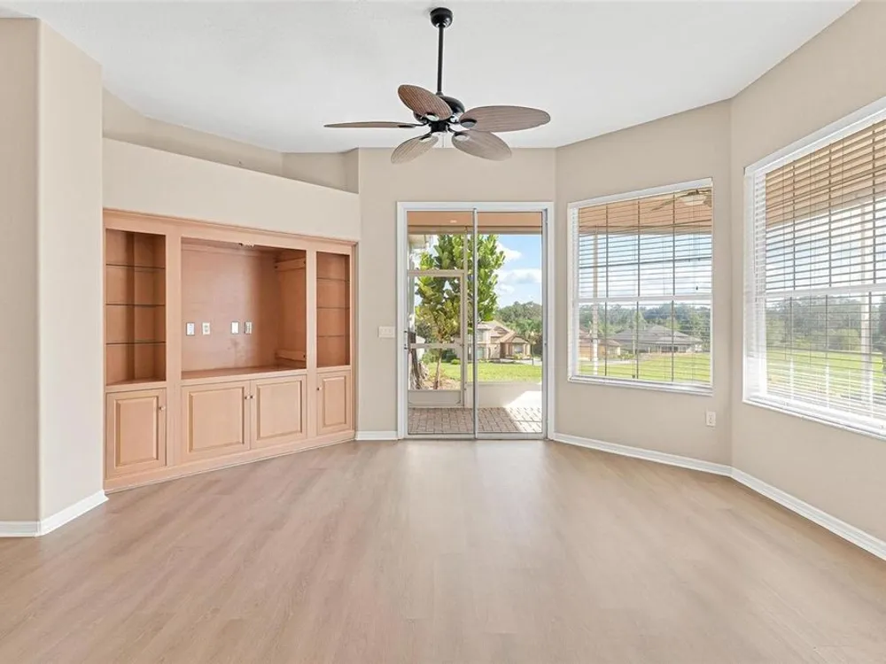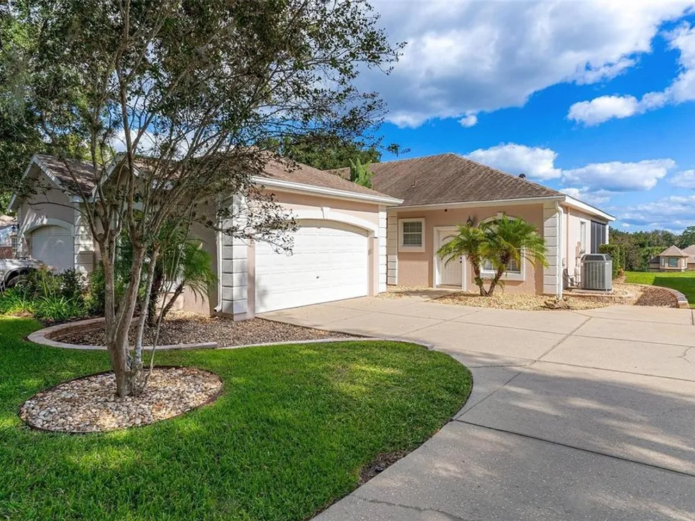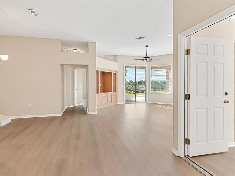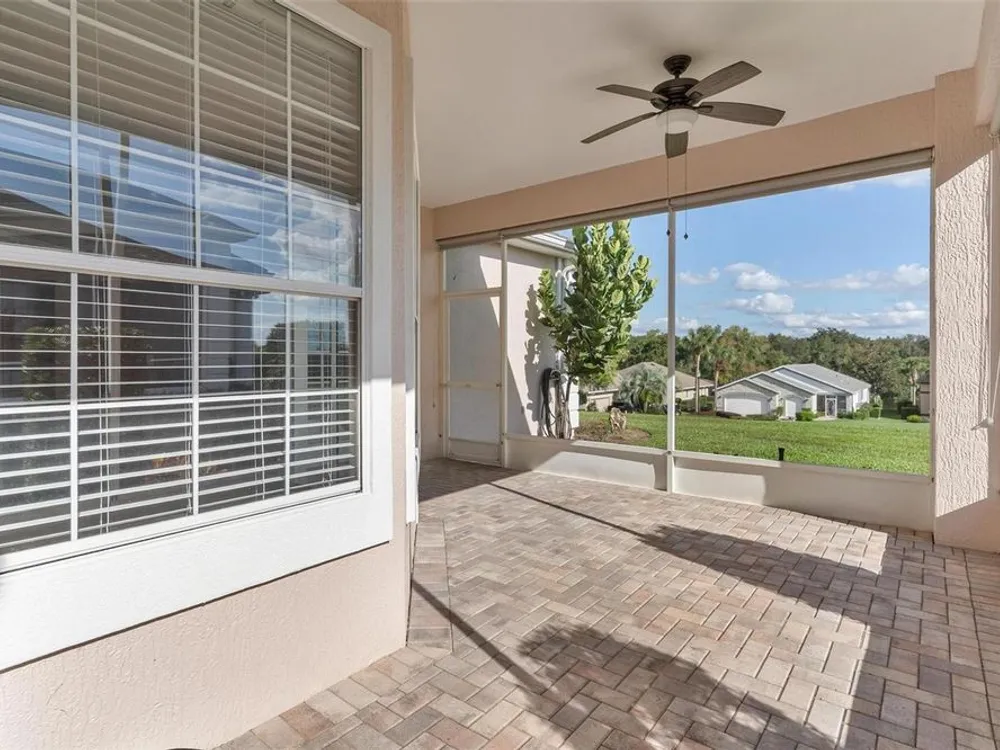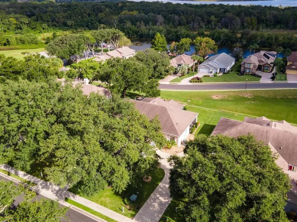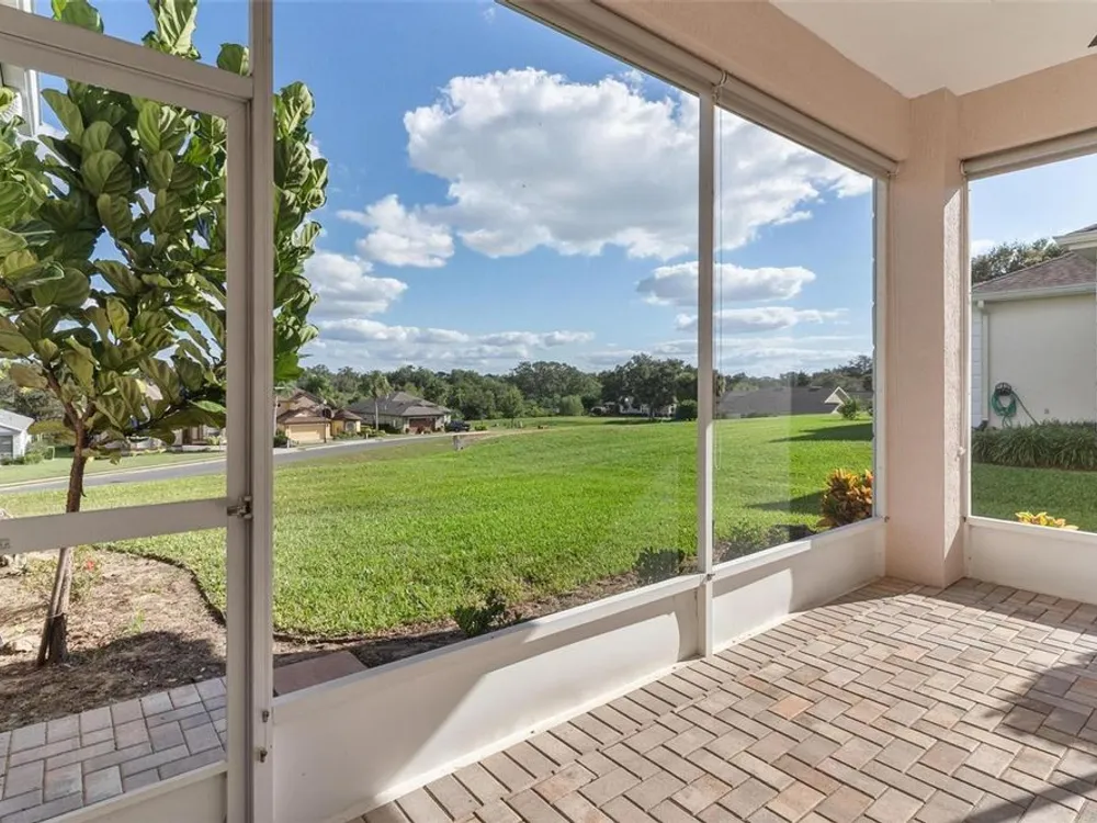 Perched high on a ridge in the gated community of Harbor Hills Country Club, this inviting 2-bedroom, 2-bath home offers comfort, style, and peaceful views of Lake Griffin and beyond. Each bedroom offers private en suite bathrooms. Also, there are two are conditioners to ensure ultimate climate. Step inside to find a neutral color palette and brand-new luxury vinyl plank flooring throughout-making this home move in ready and easy to love. The open living area flows effortlessly to the back screened porch with concrete pavers, where you'll enjoy gorgeous sunrise views over the spacious, open backyard- the perfect spot for morning coffee or quit reflection, or enjoy your favorite show as it is TV ready. The back porch also boasts roll down shades for privacy. Located in one of Central Florida's most sought-after golf and country club communities, this home offers the perfect blend of relaxation, recreation, and refined living. The two car garage features well maintained epoxy flooring. Come see why life feels brighter in Harbor Hills.